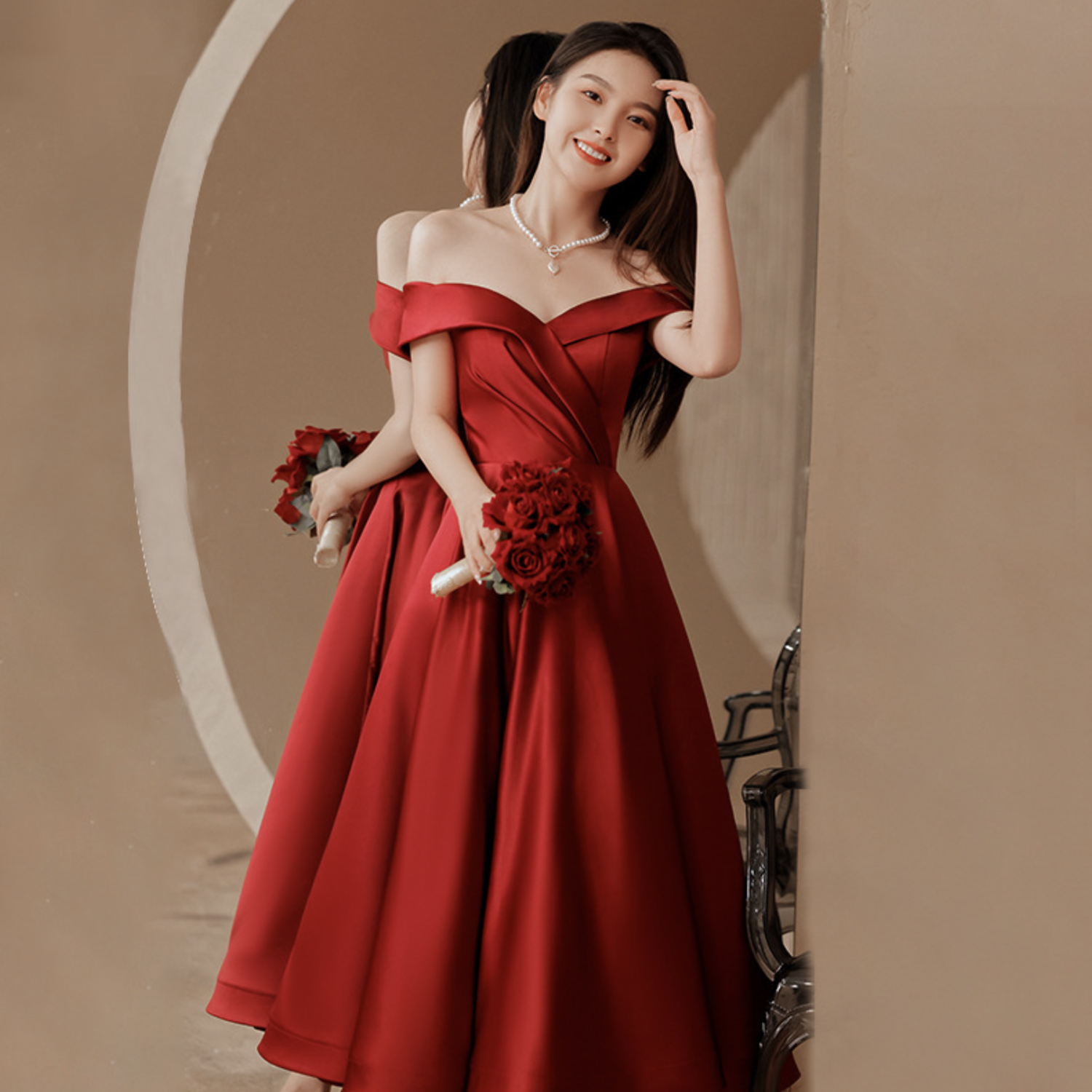 - Burgundy satin short prom dress homecoming dress -