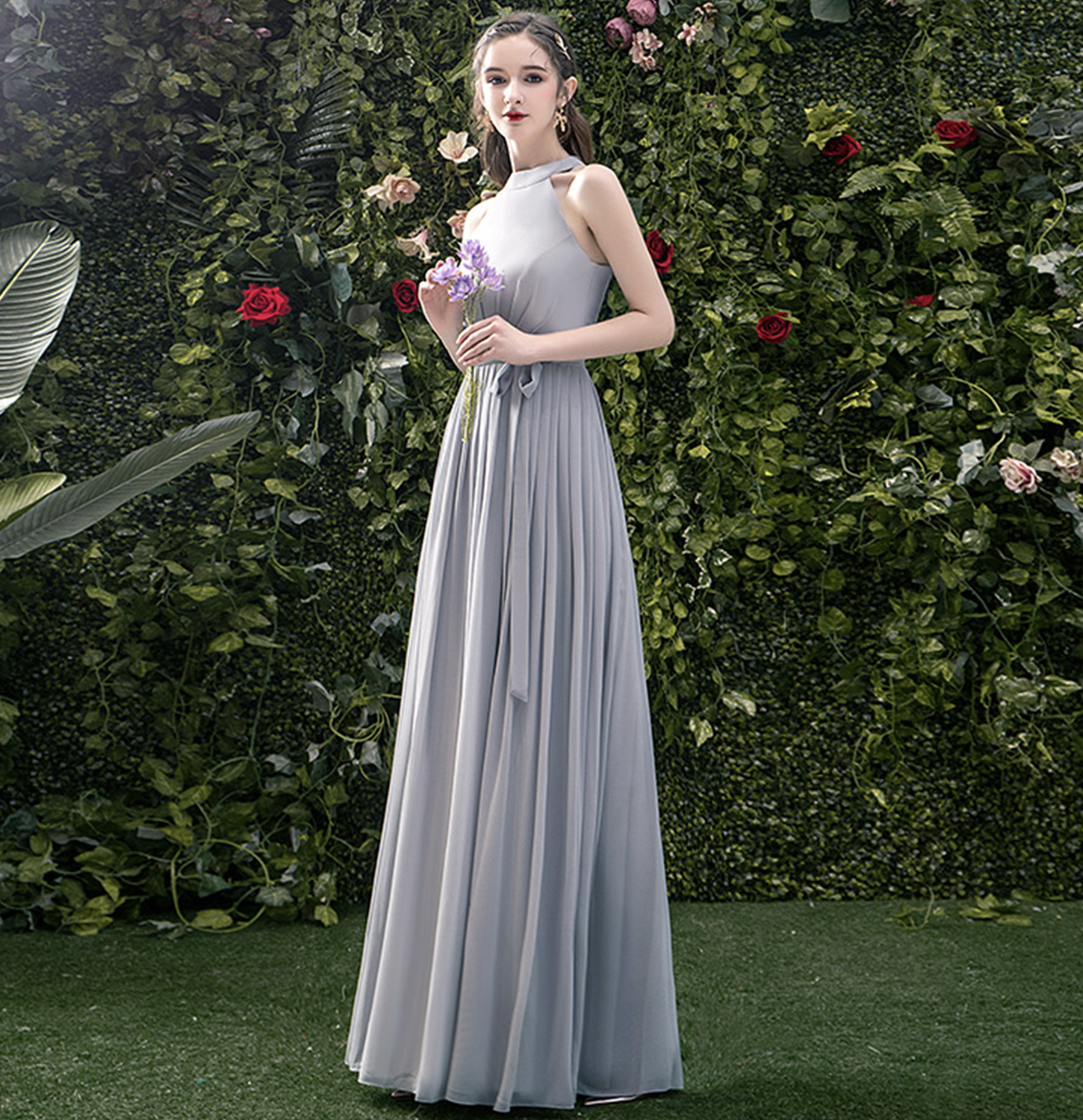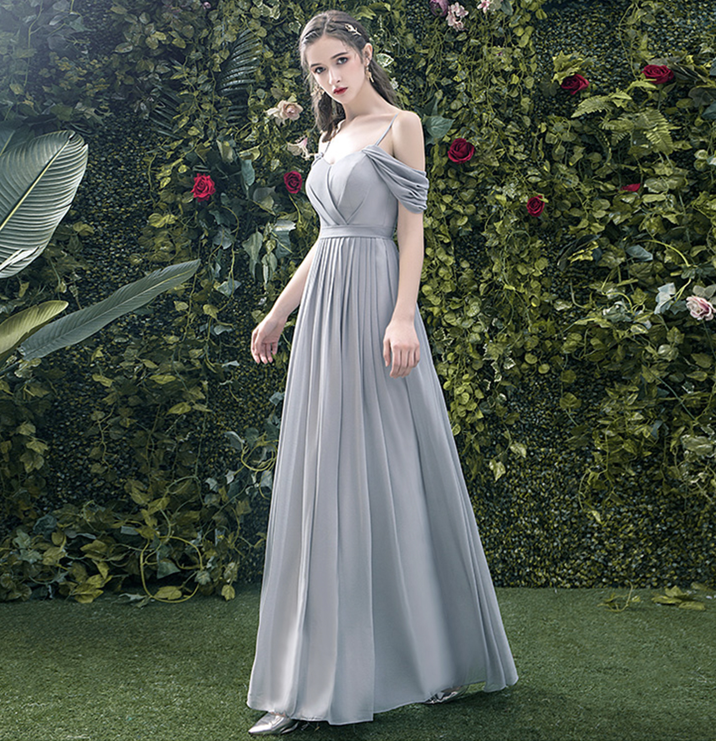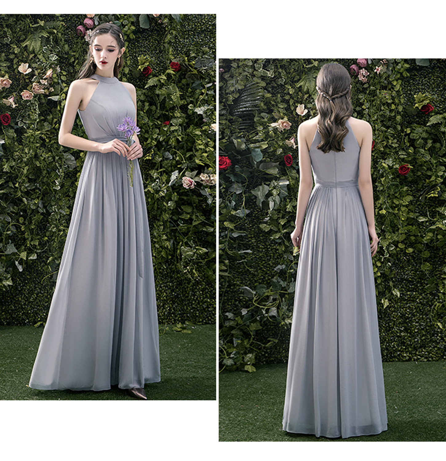 - Gray chiffon long A line prom dress bridesmaid dress -