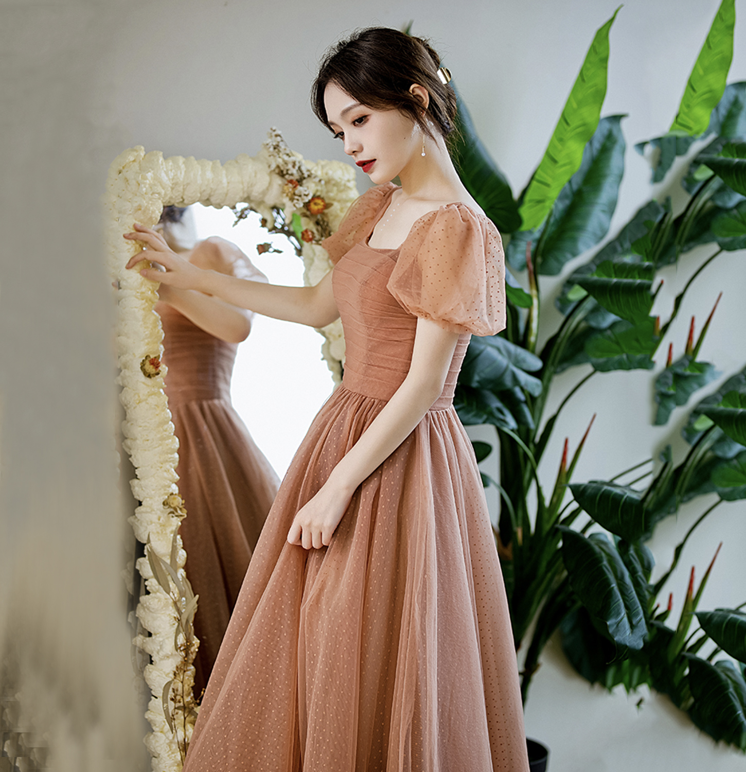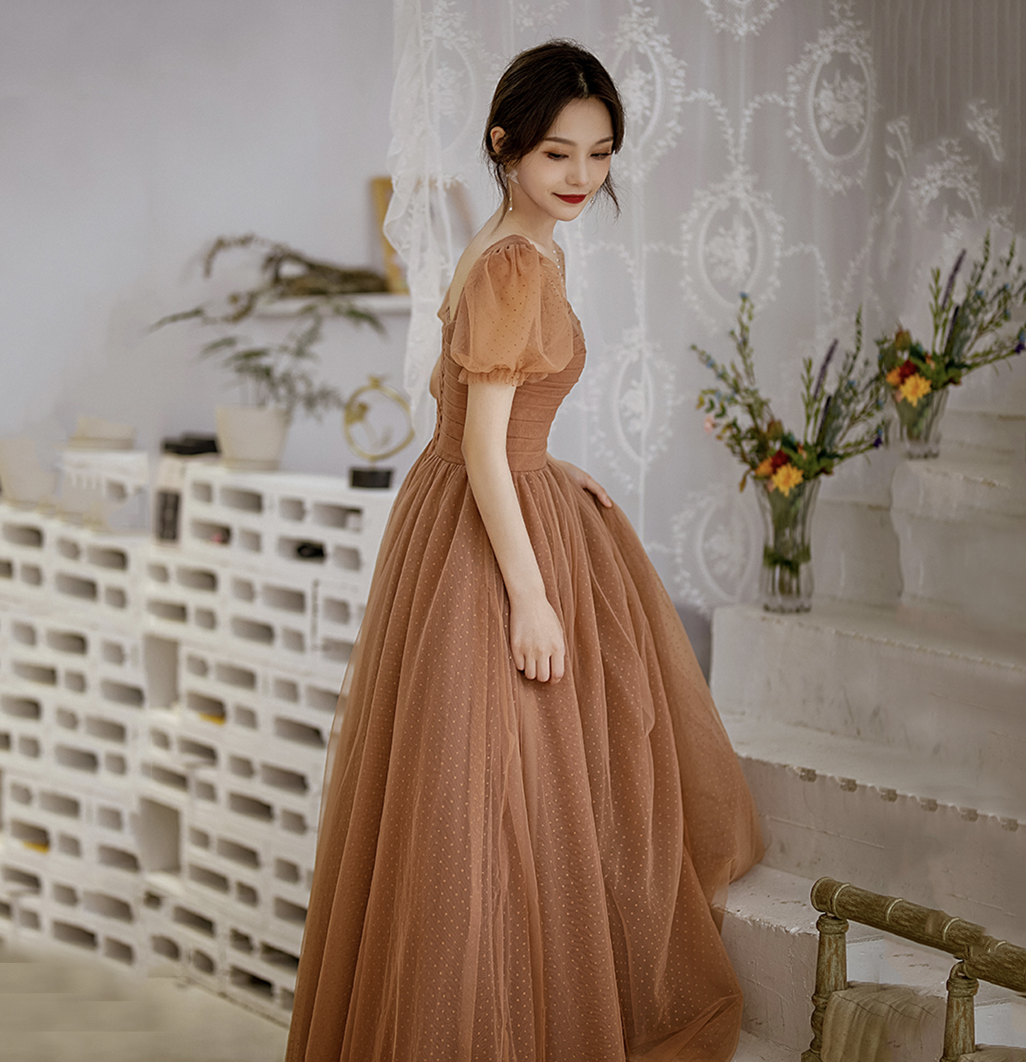 Cute tulle long prom dress A line evening gown