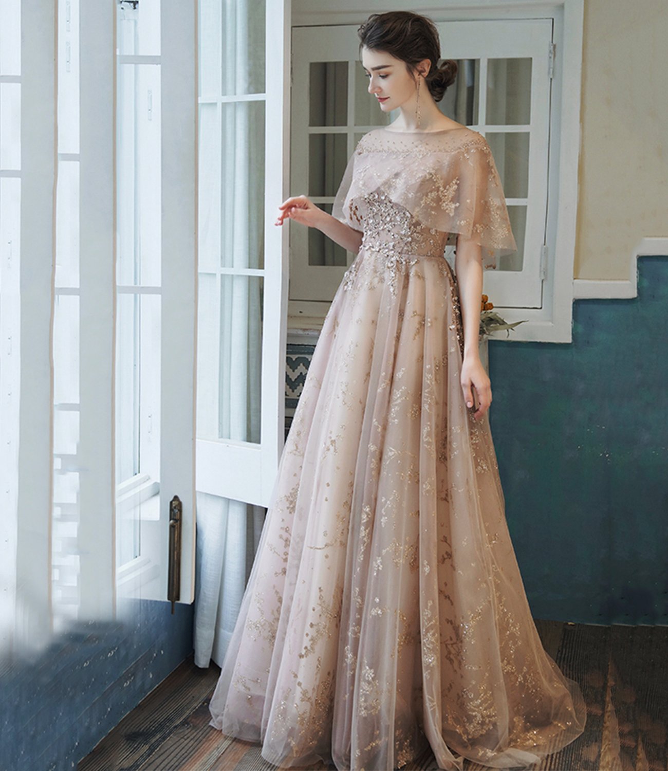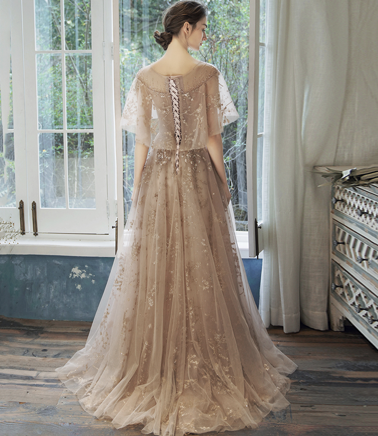 Shiny tulle sequins long prom dress A line evening gown · Little Cute · Online Store Powered by Storenvy