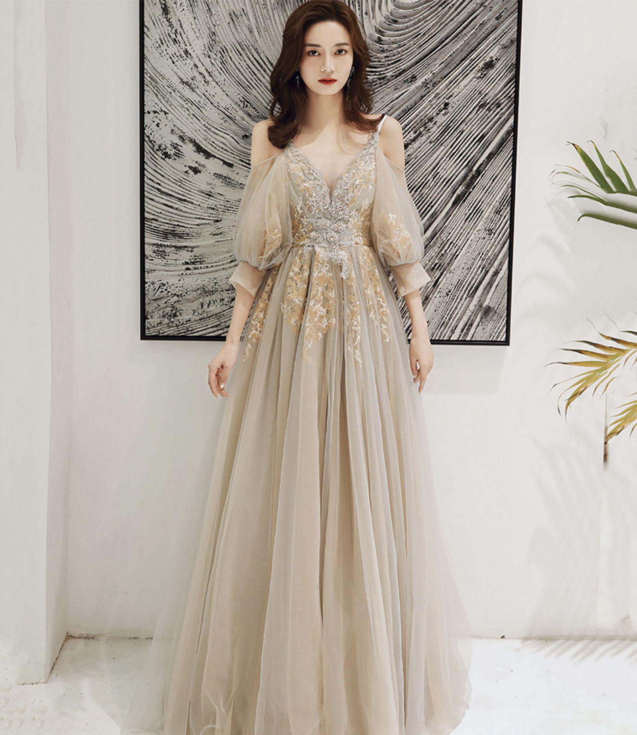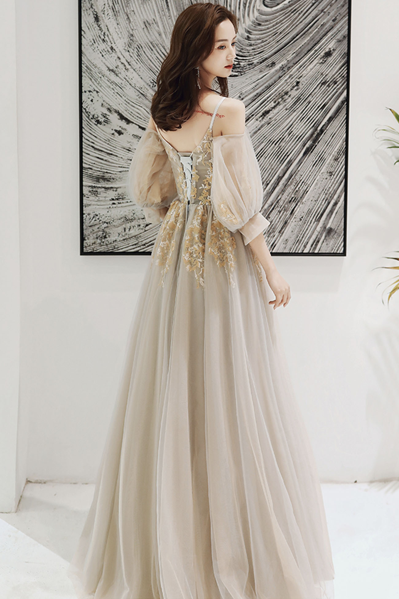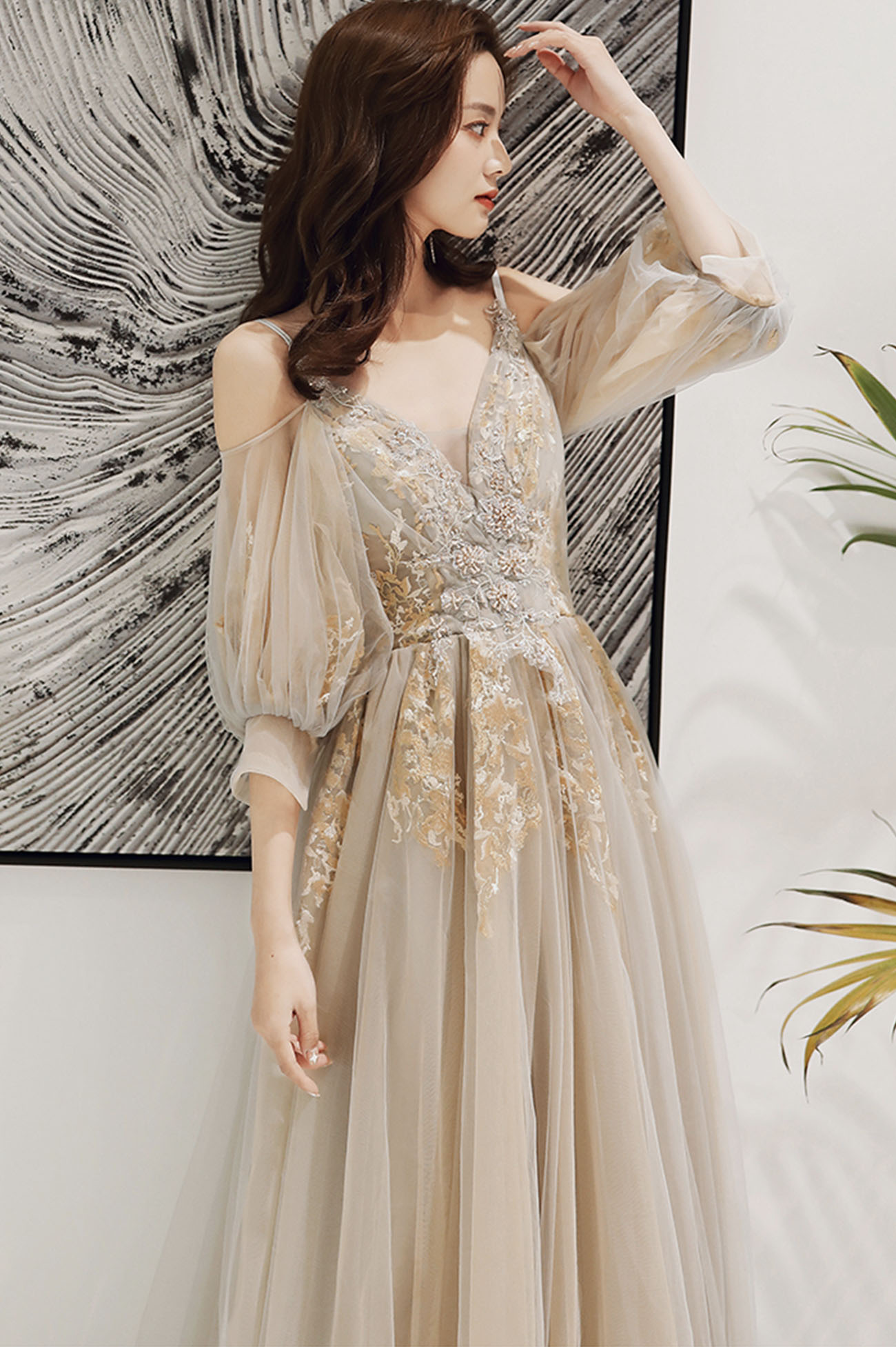 - Elegant tulle lace long prom dress evening dress -