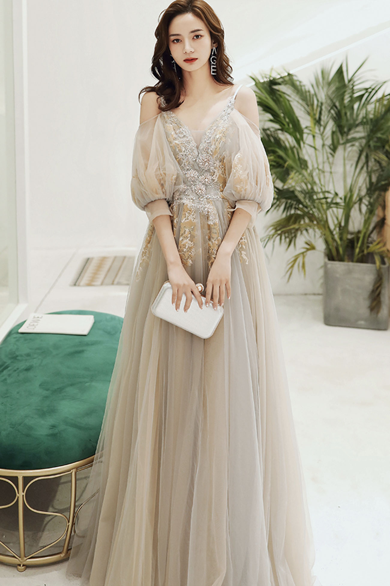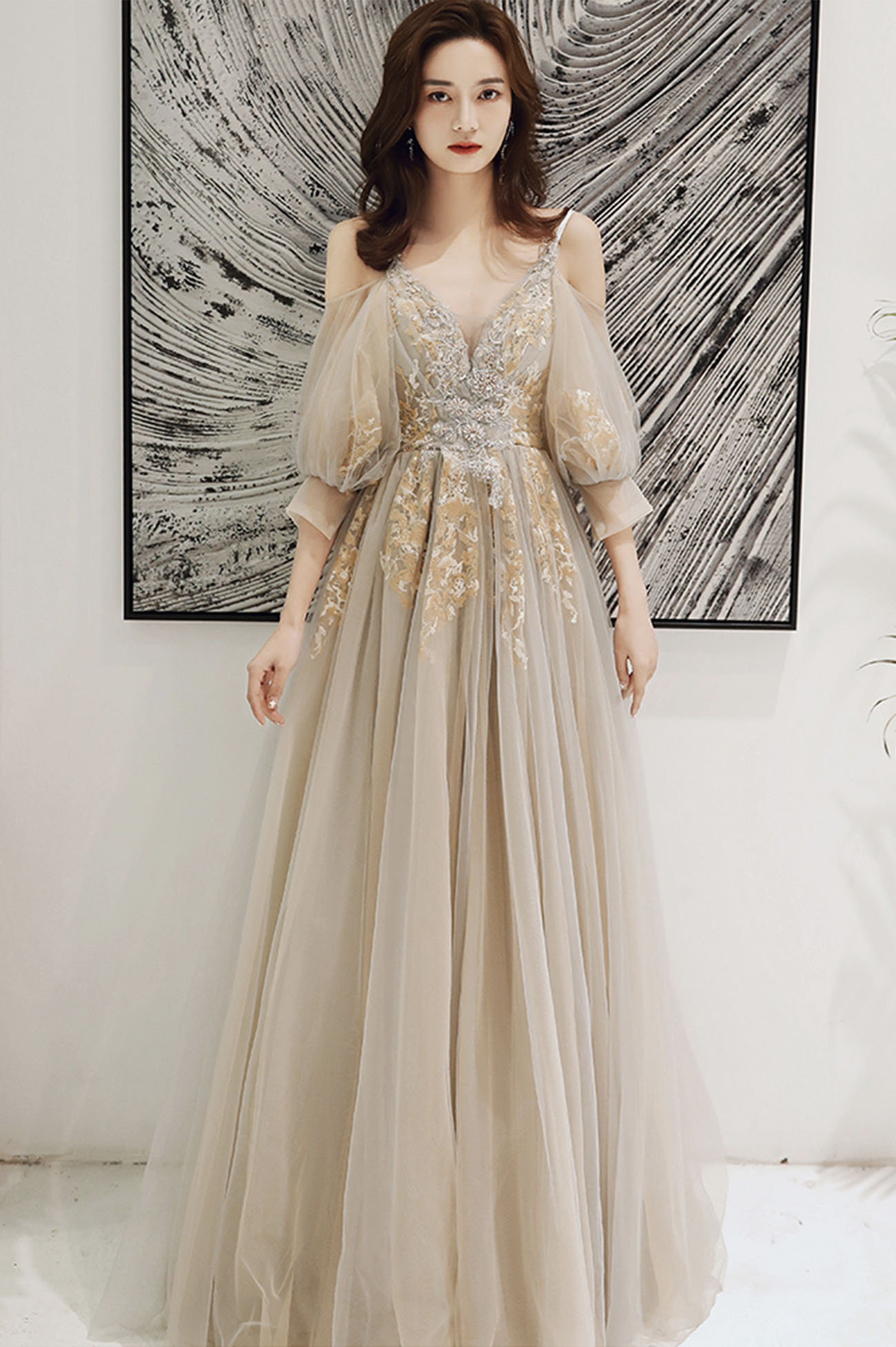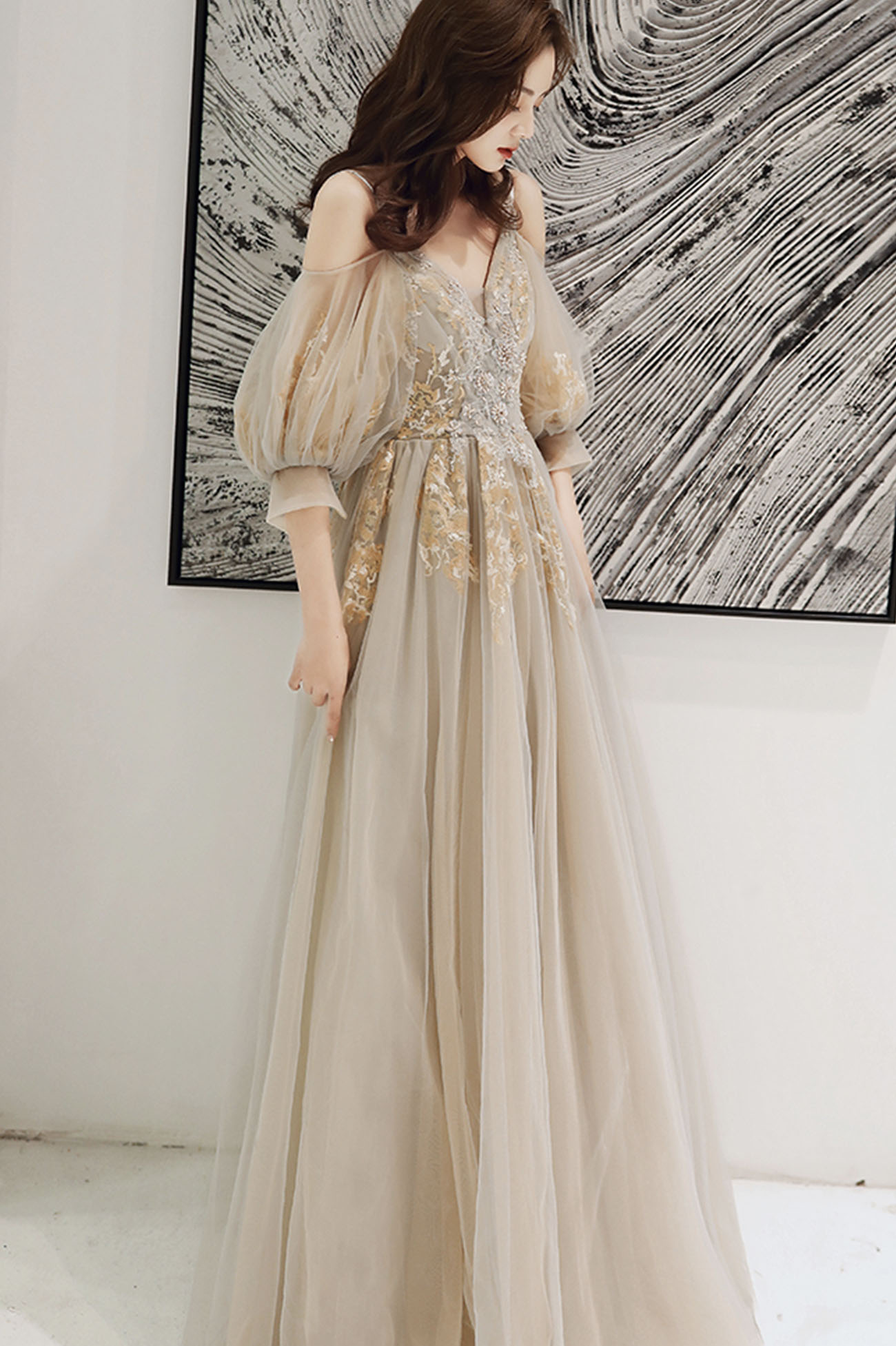 - Elegant tulle lace long prom dress evening dress -