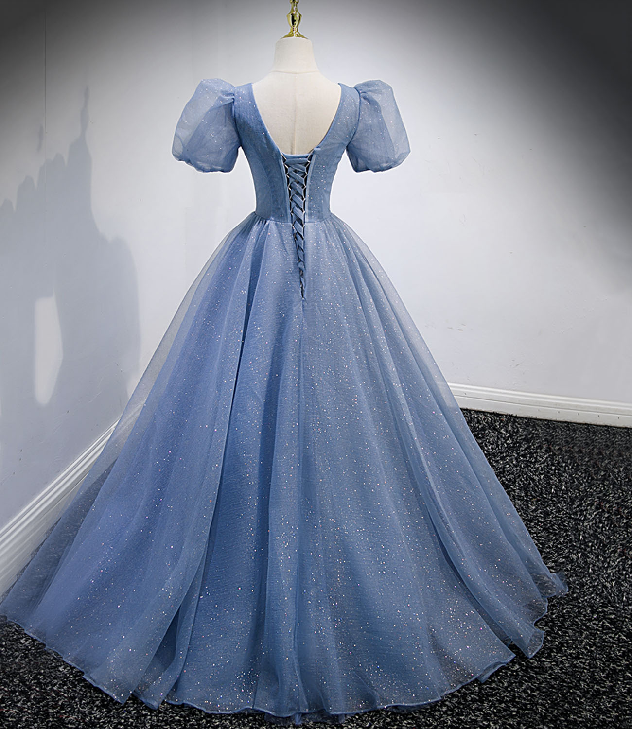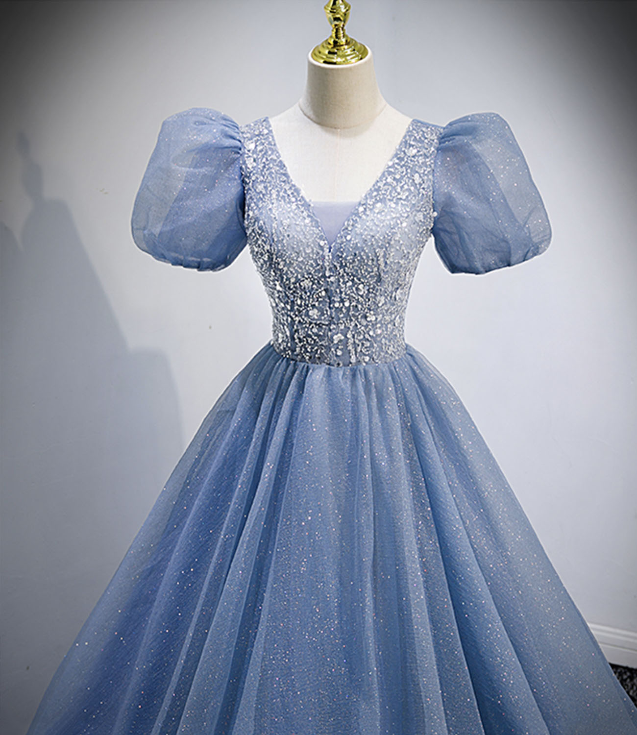 - Blue tulle sequins long prom dress blue evening dress -