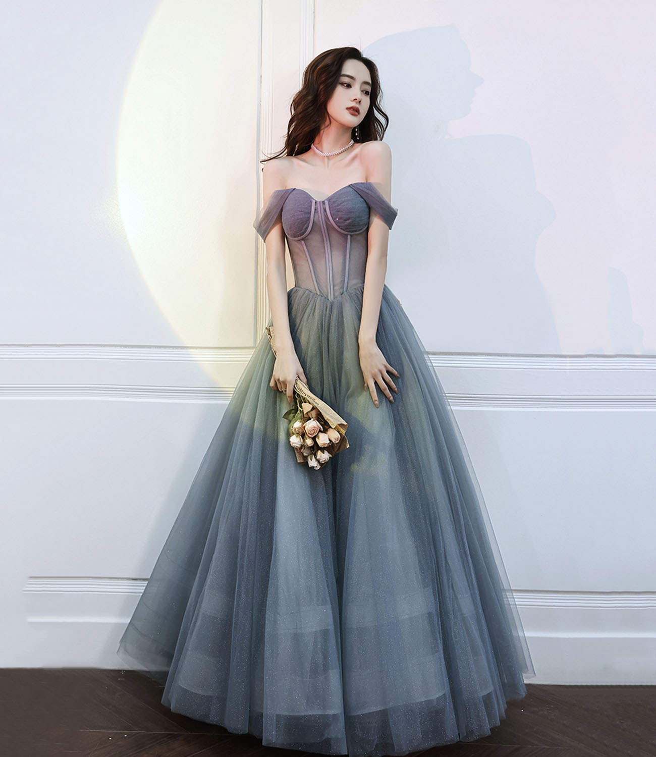 - Gray Tulle Long A Line Ball Gown Gray Evening Gown -