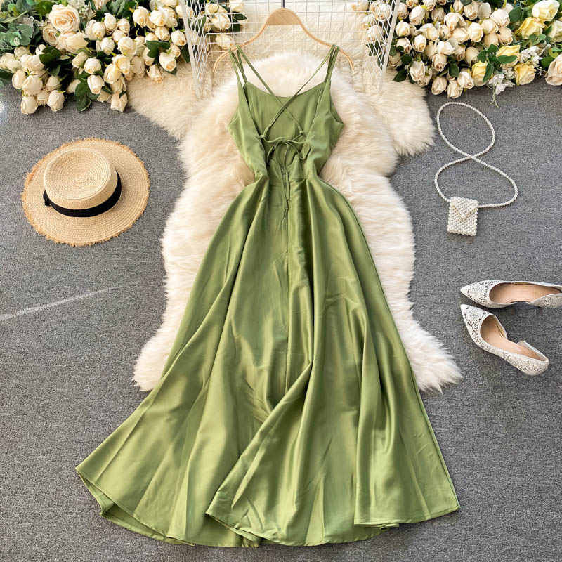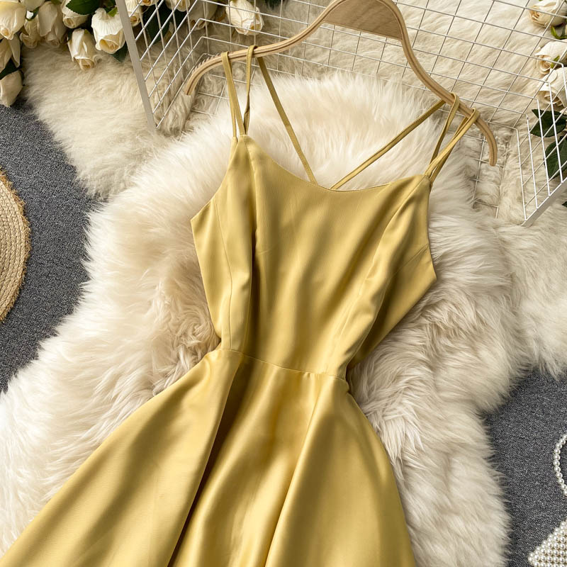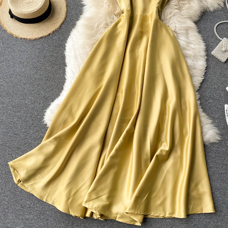 - Simple satin A line dress fashion dress party dress -
