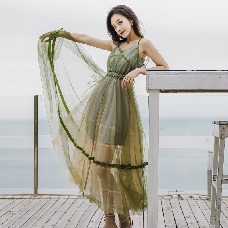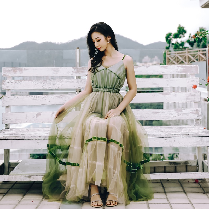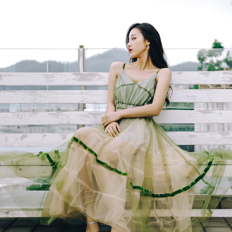 - Green v neck short A line dress fashion dress -