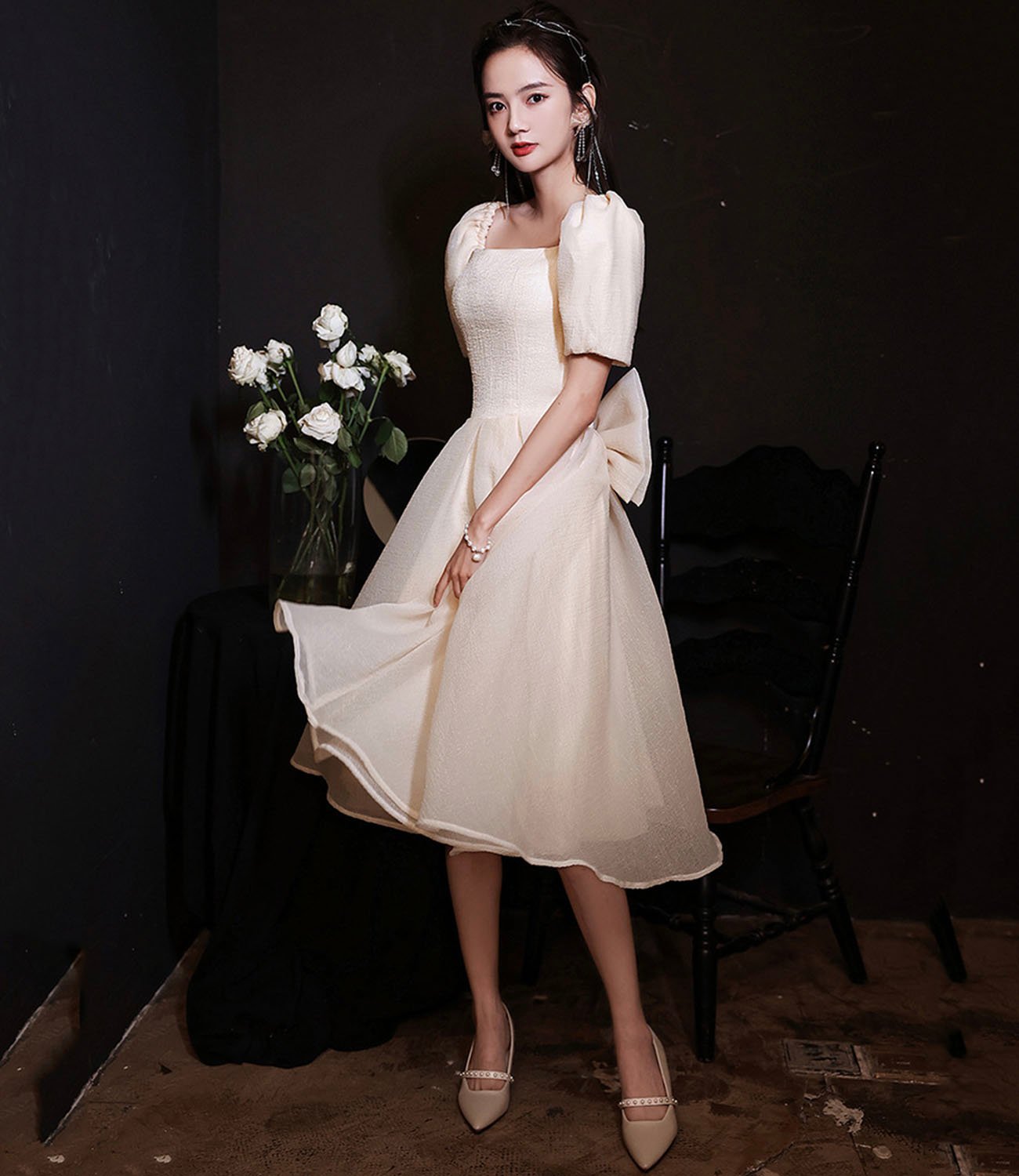 Cute soft chiffon short prom dress with bow fashion girl dress