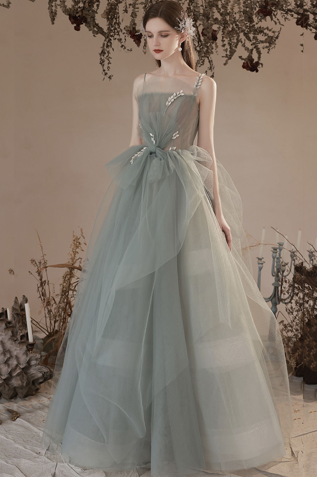 - Cute tulle long A line prom dress evening dress -