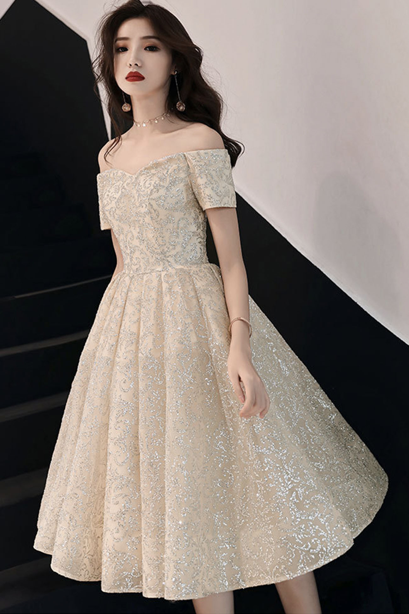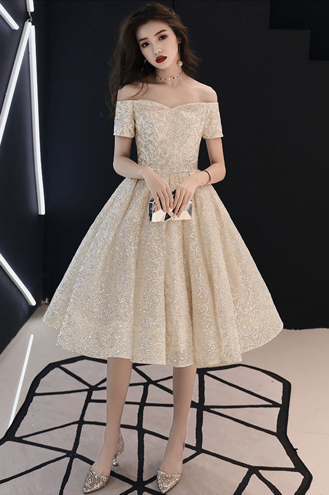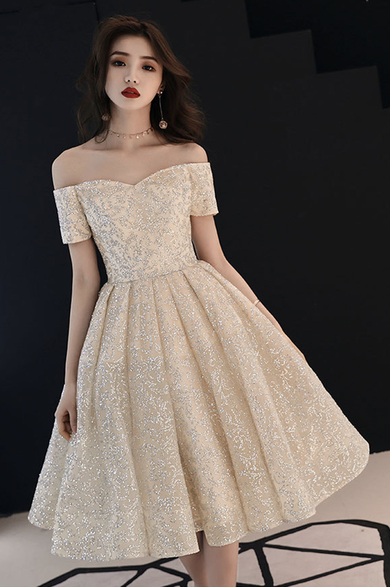 - Cute tulle sequins short prom dress homecoming dress -