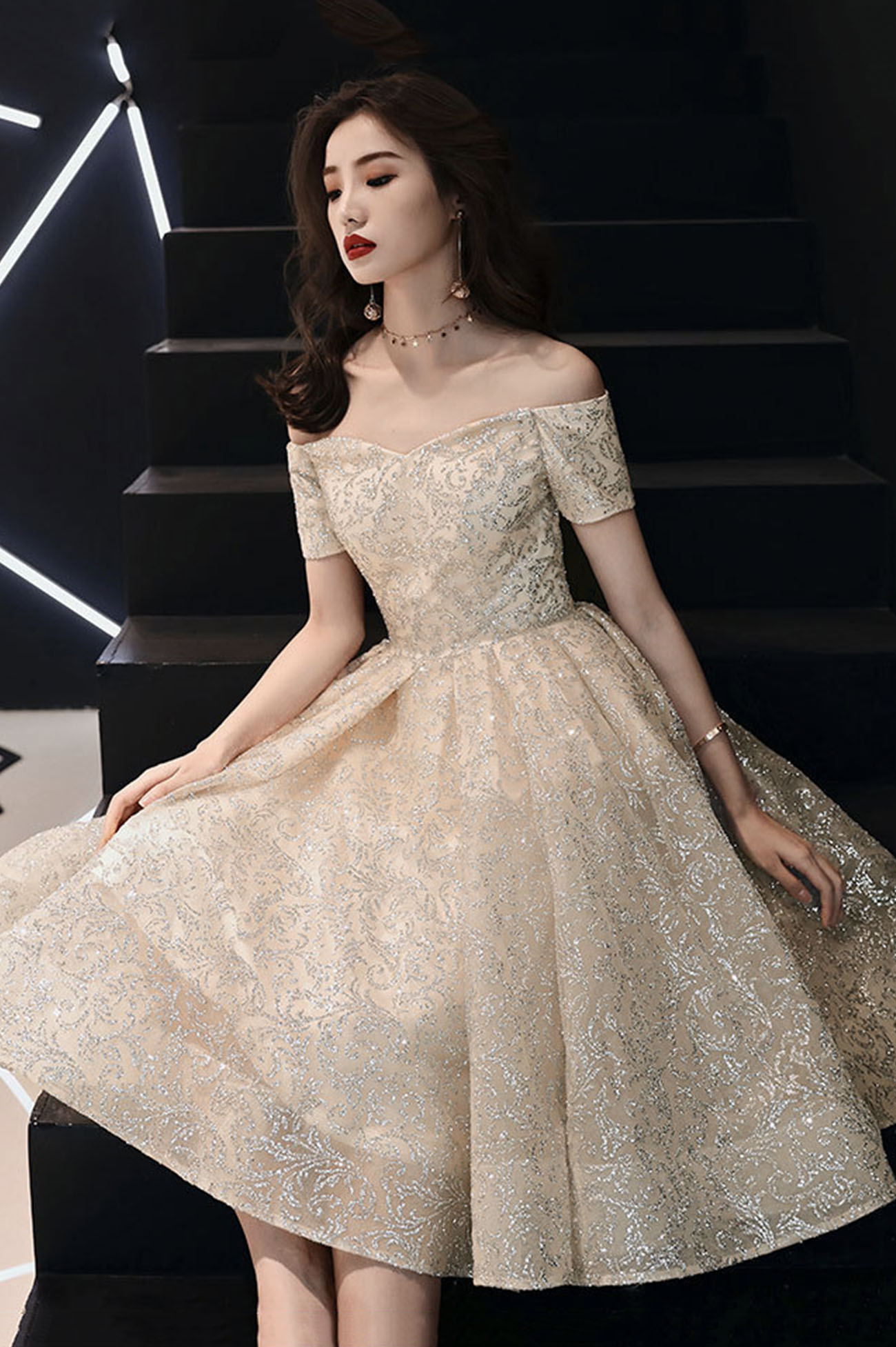 Cute tulle sequins short prom dress homecoming dress