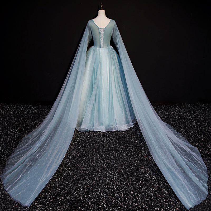 - Blue Tulle Lace Long Prom Dress Blue Evening Dress -
