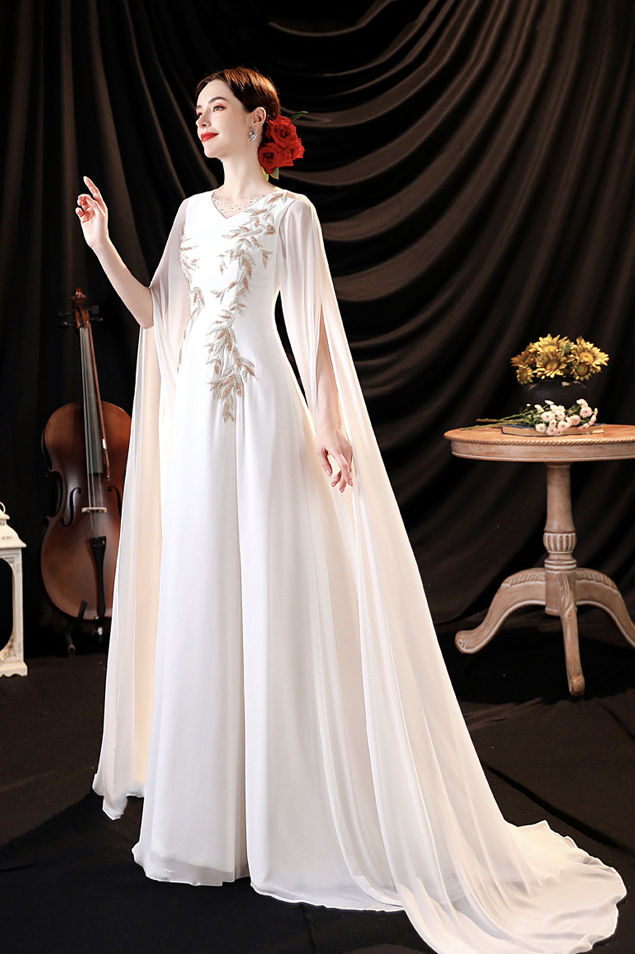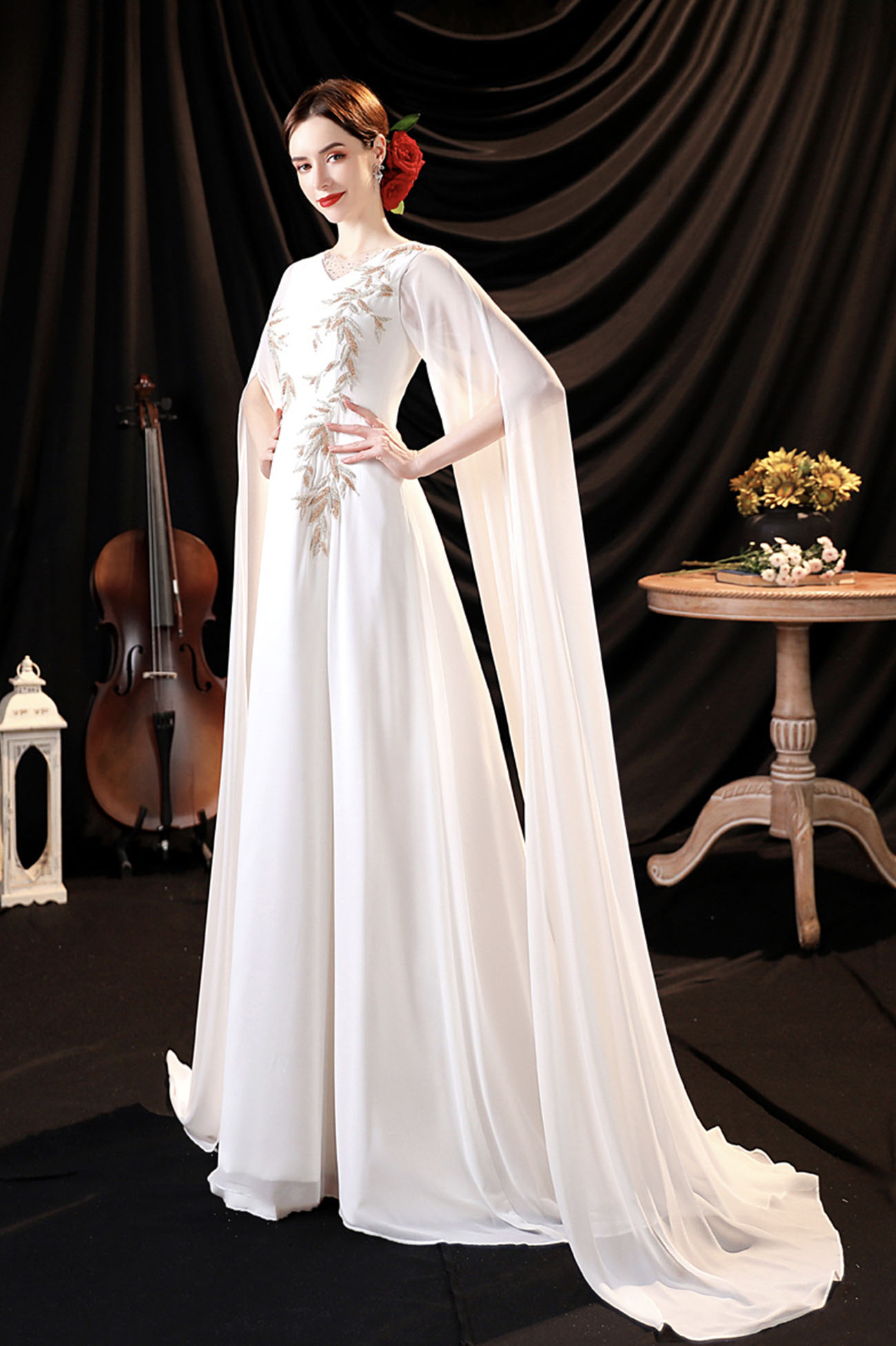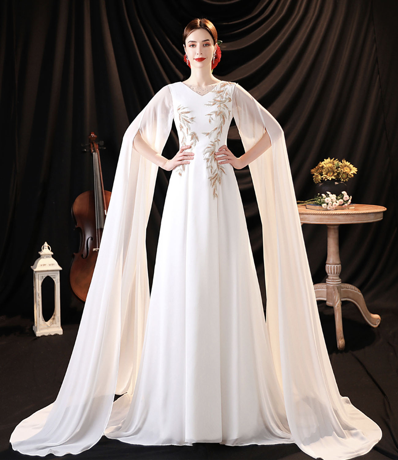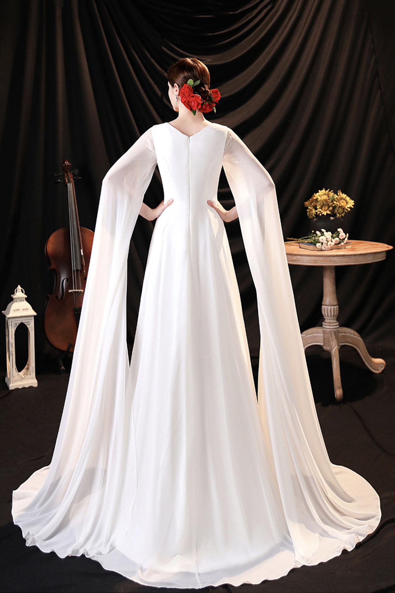 - White chiffon long sleeve prom dress white evening dress -