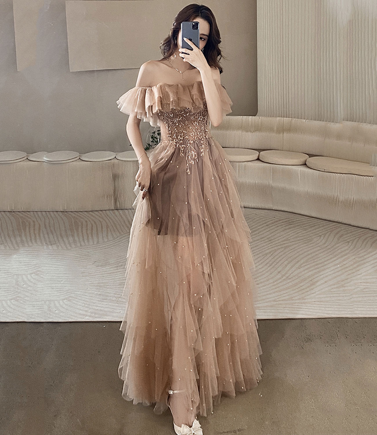 - Stylish Irregular Mesh Long Prom Dress Eevening Dress -