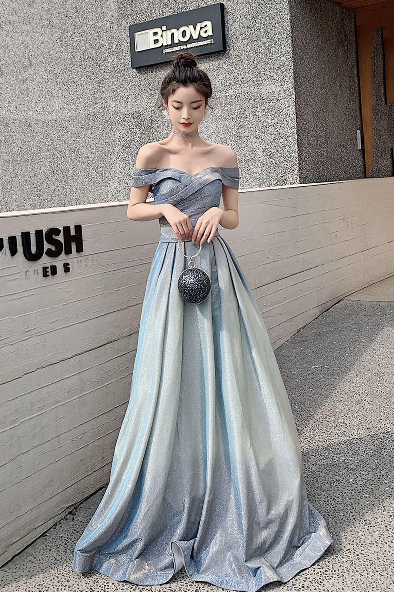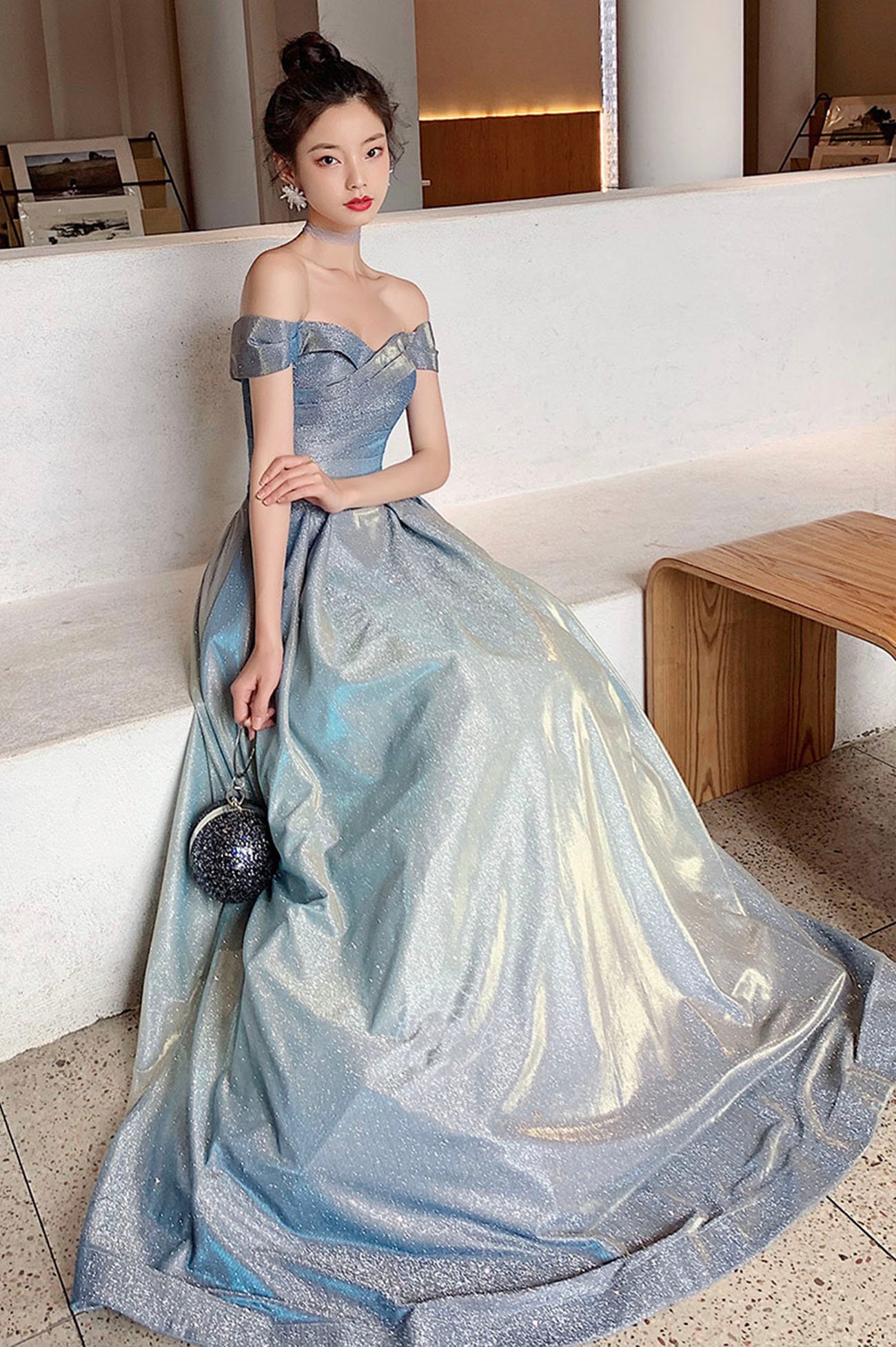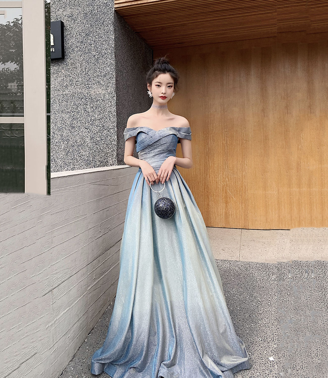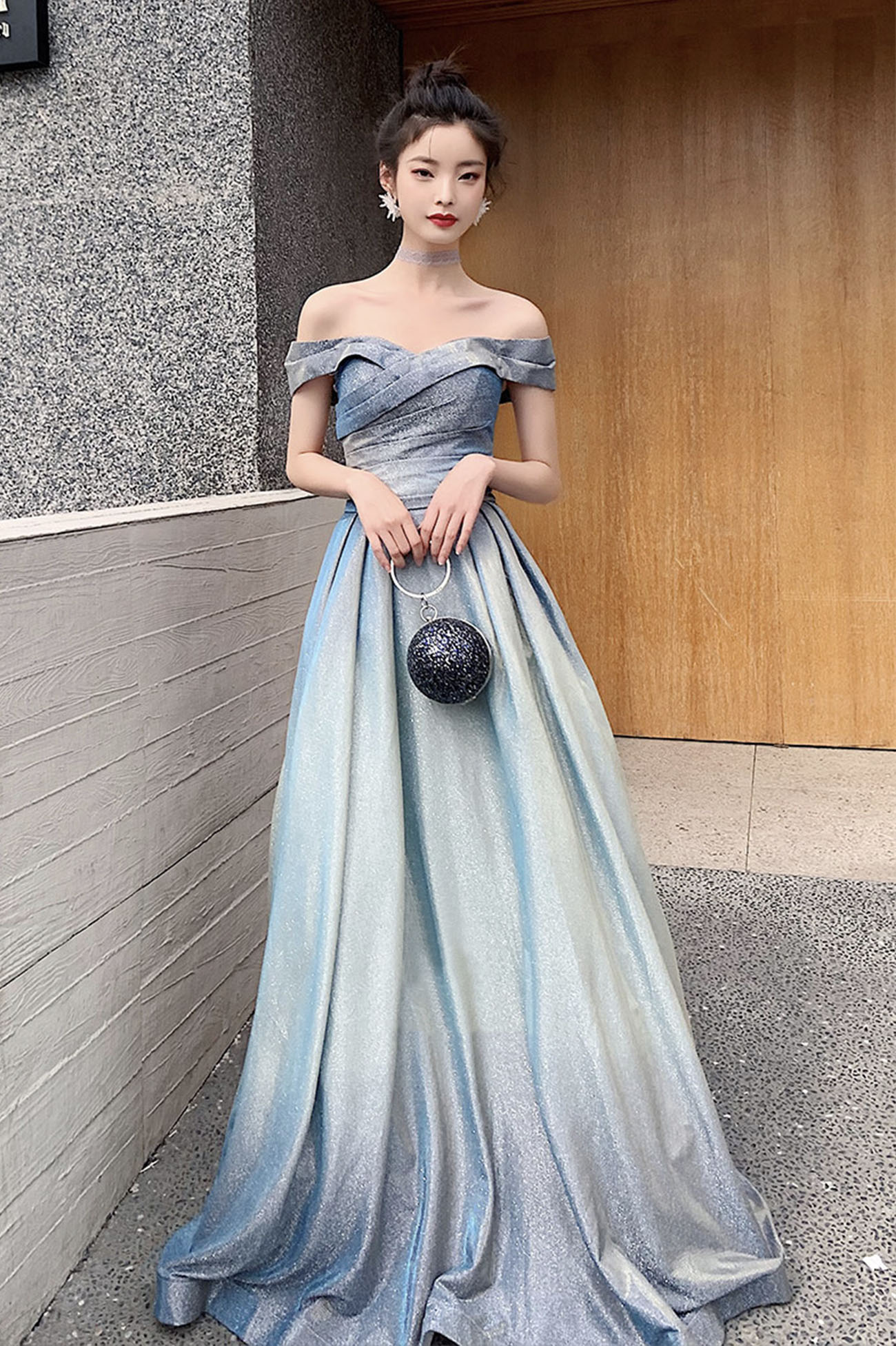 - Shiny gradient satin long prom dress A line evening dress -