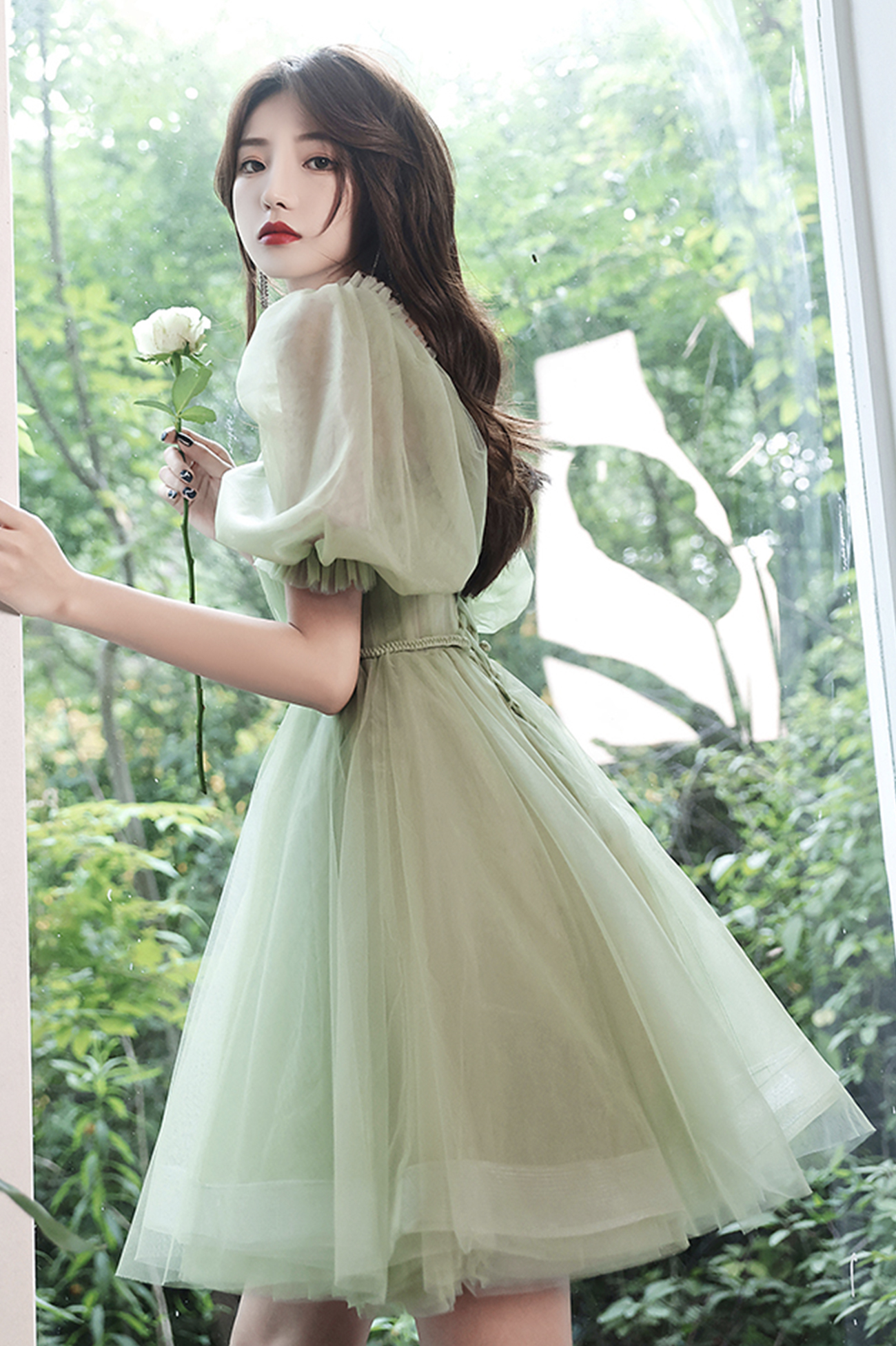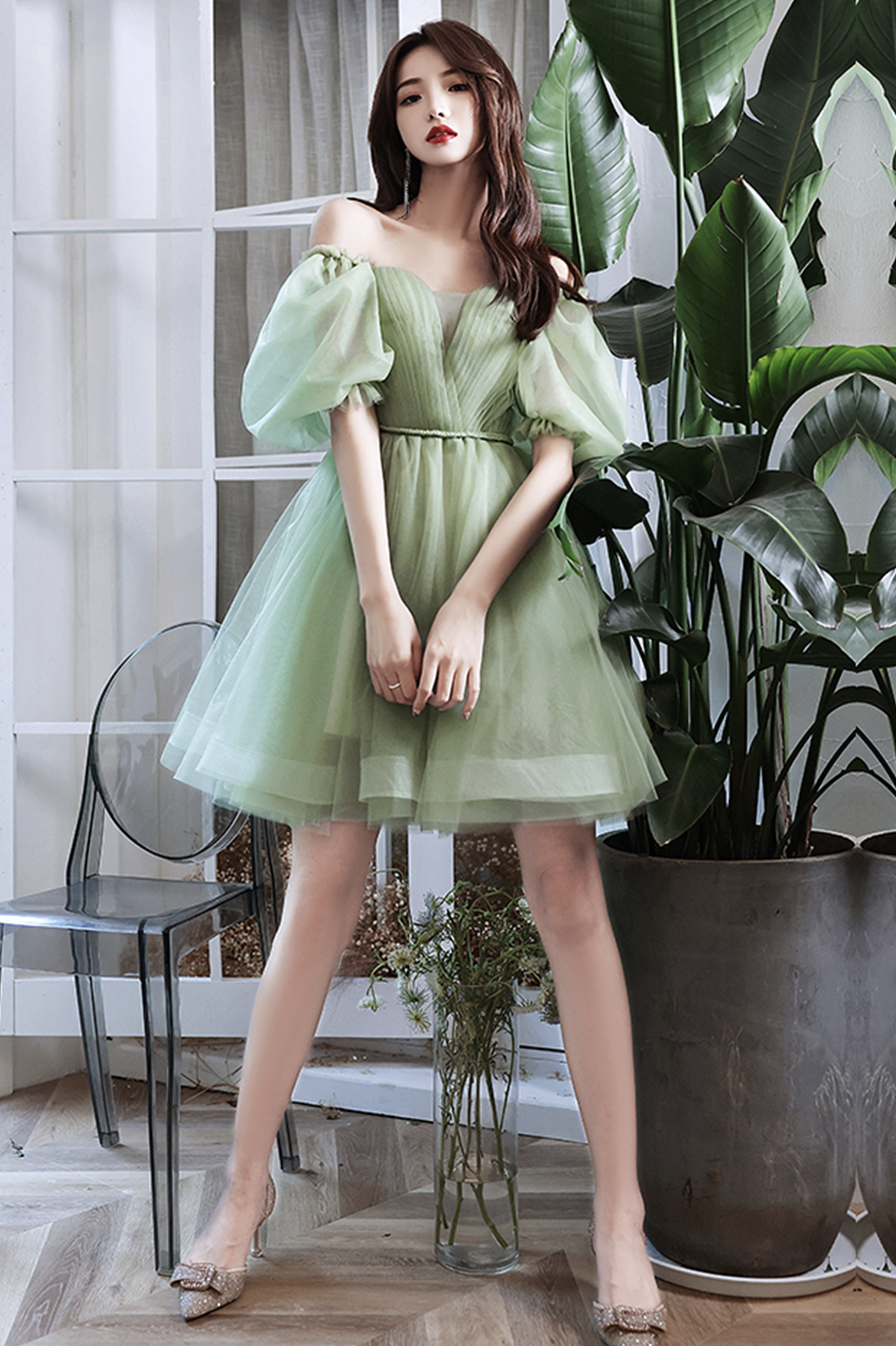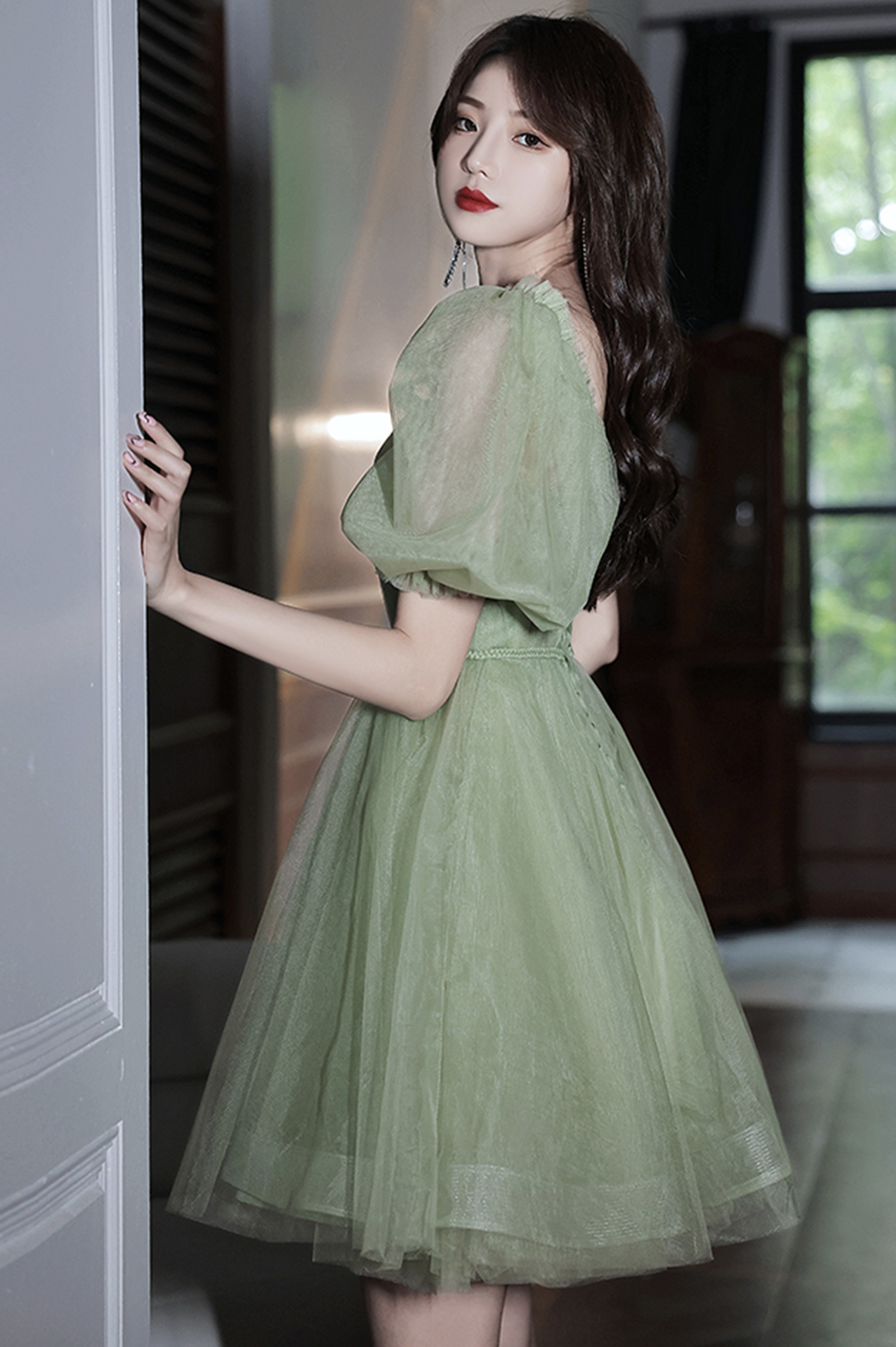 - Green Tulle Short Prom Dress A Line Homecoming Dress -