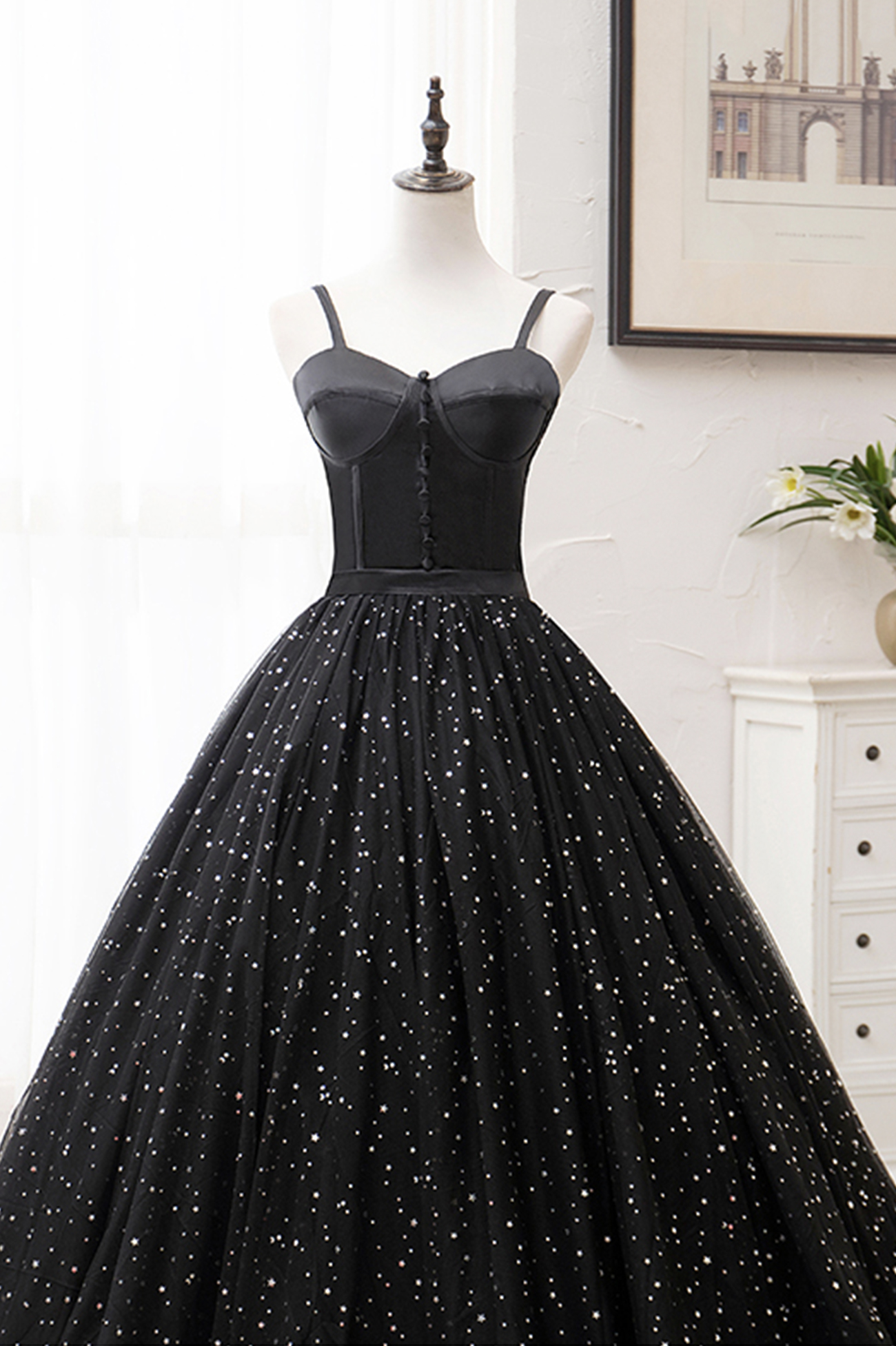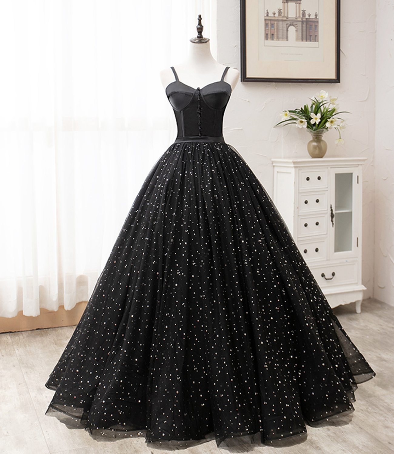 - Black tulle long ball gown dress black formal dress -