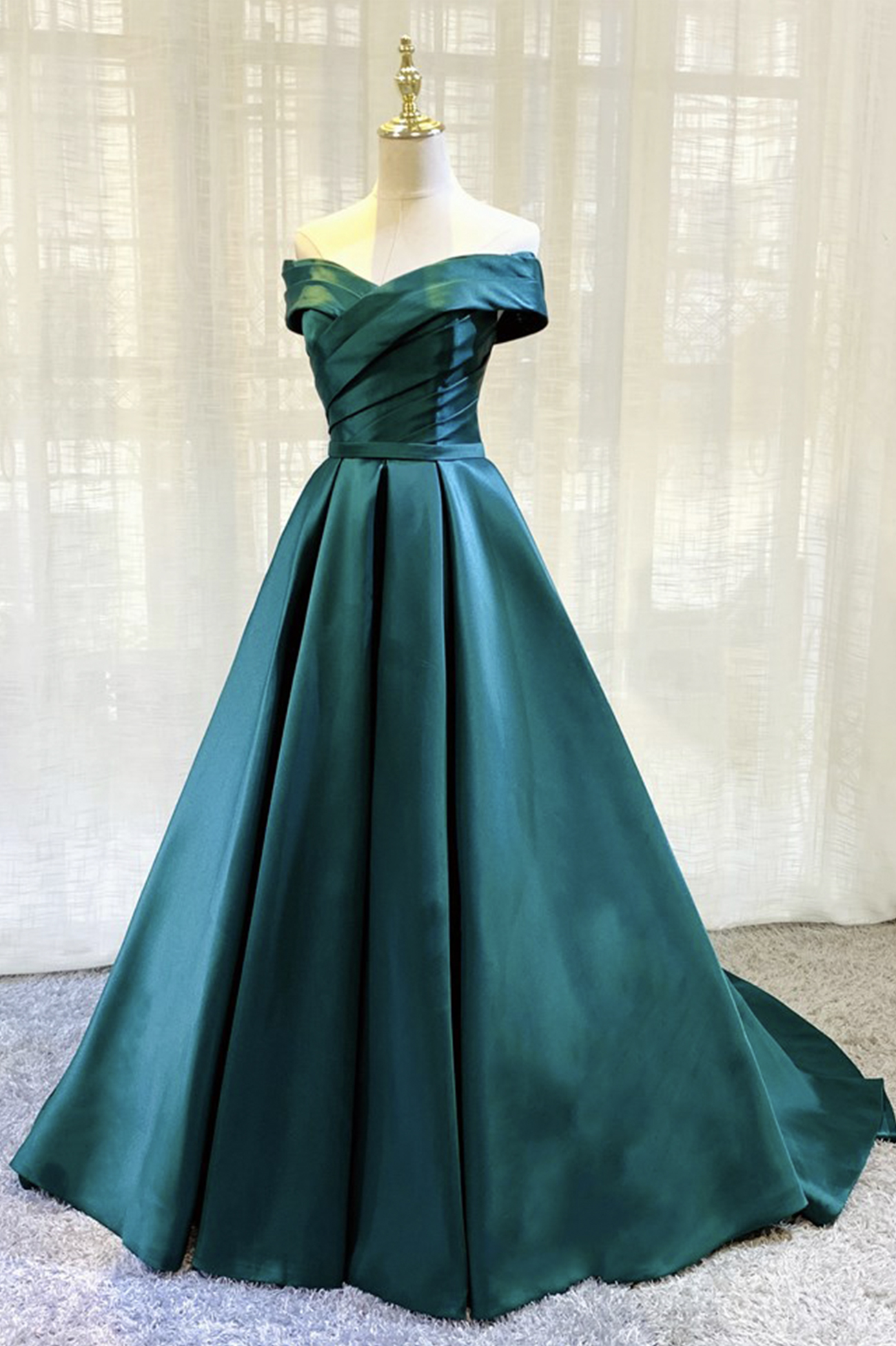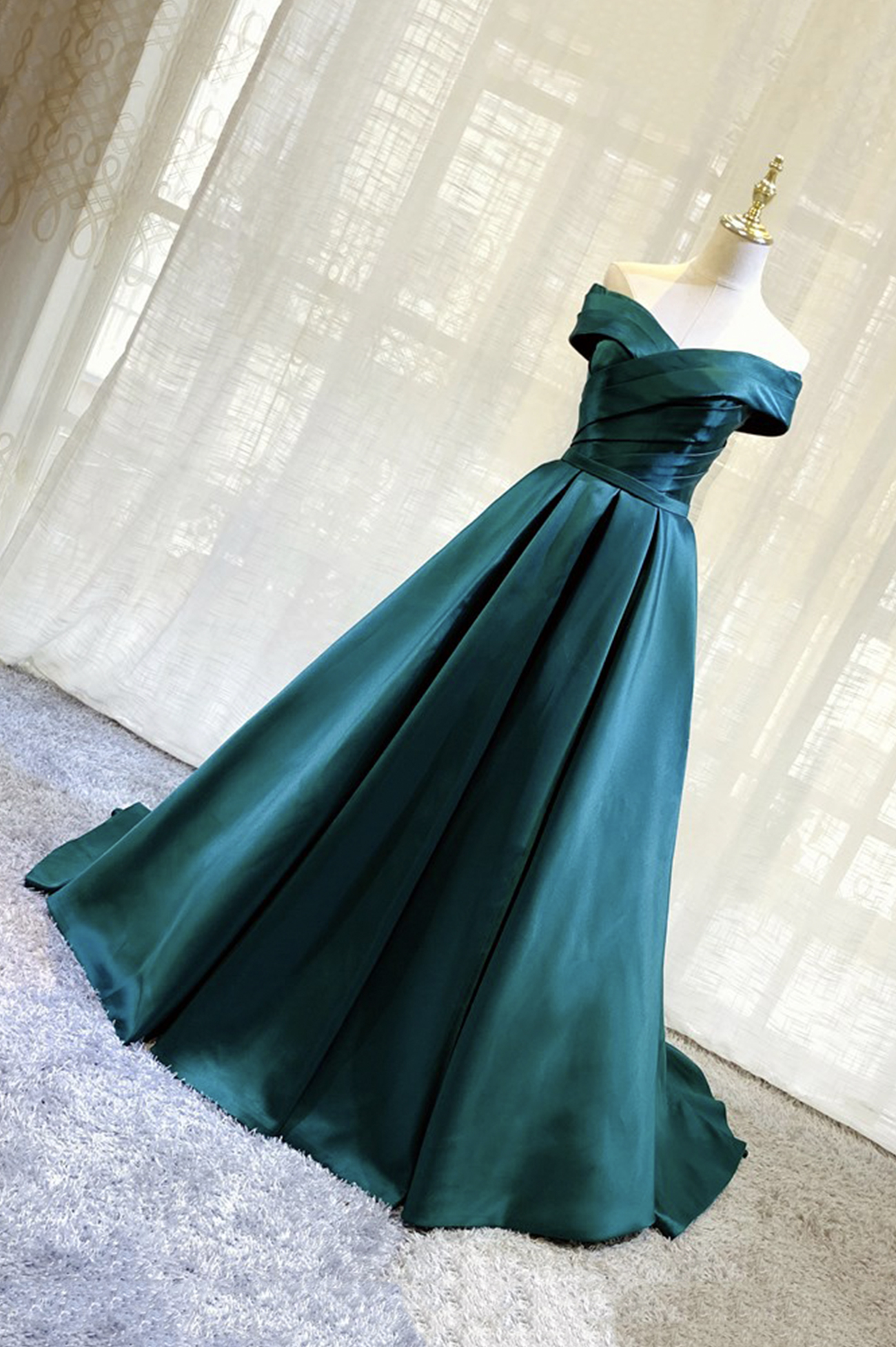 - Green satin long prom dress green evening dress -