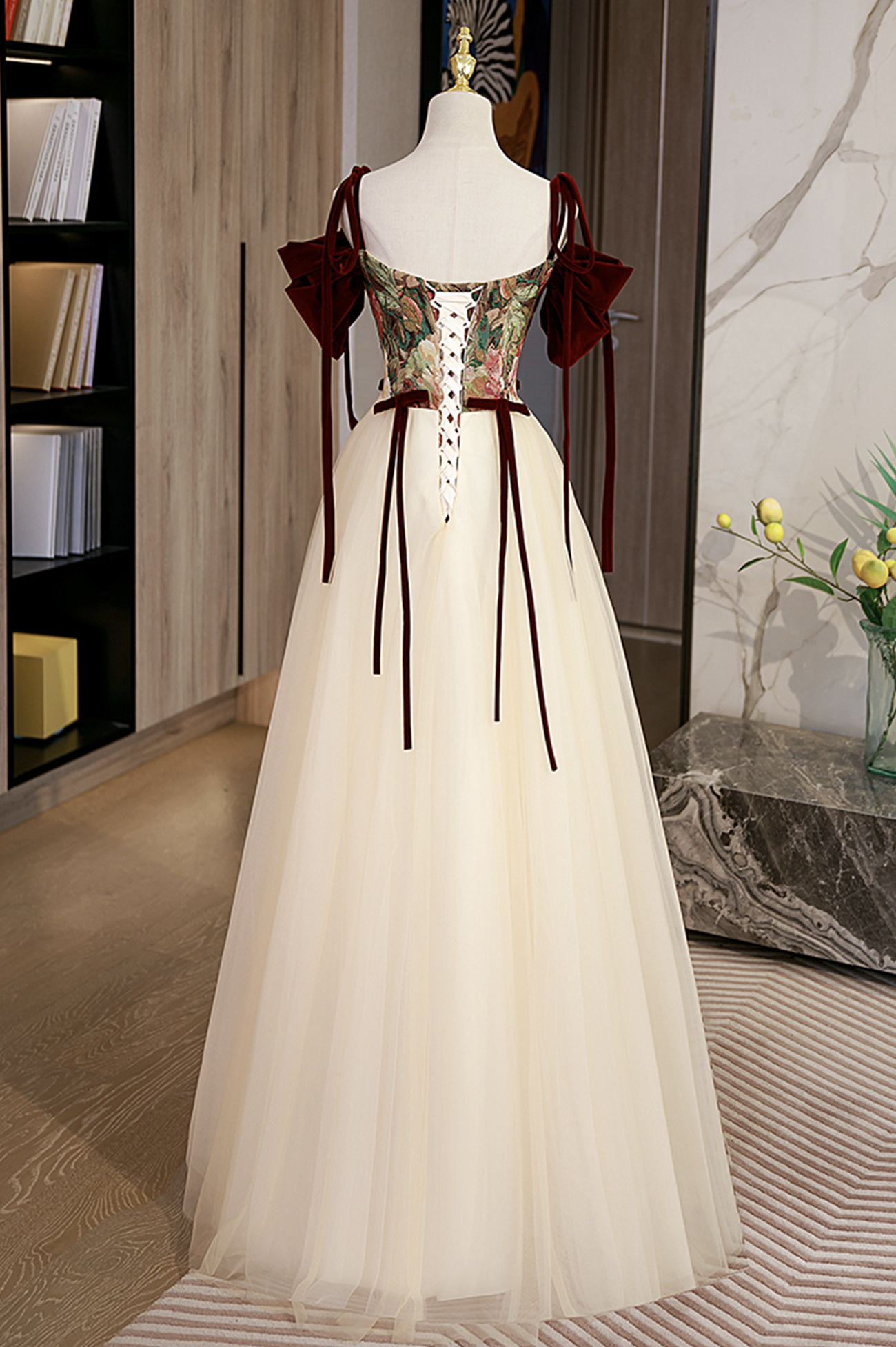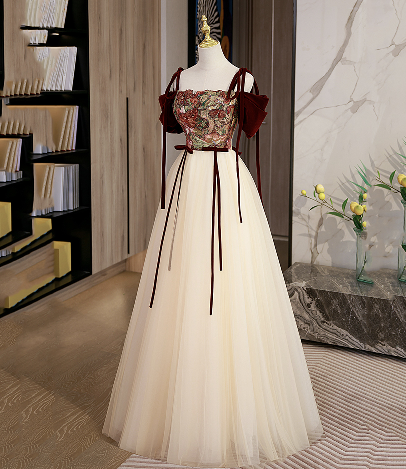 - Elegant tulle embroidery long prom dress A line evening dress -