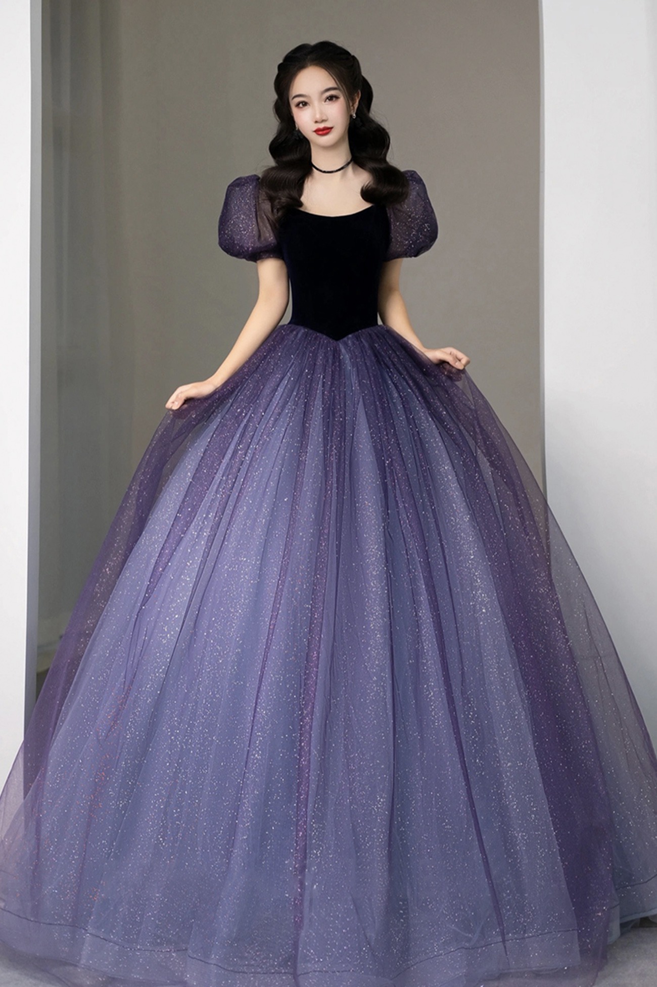 - Purple Tulle Sequin Long Princess Dress Evening Gown -