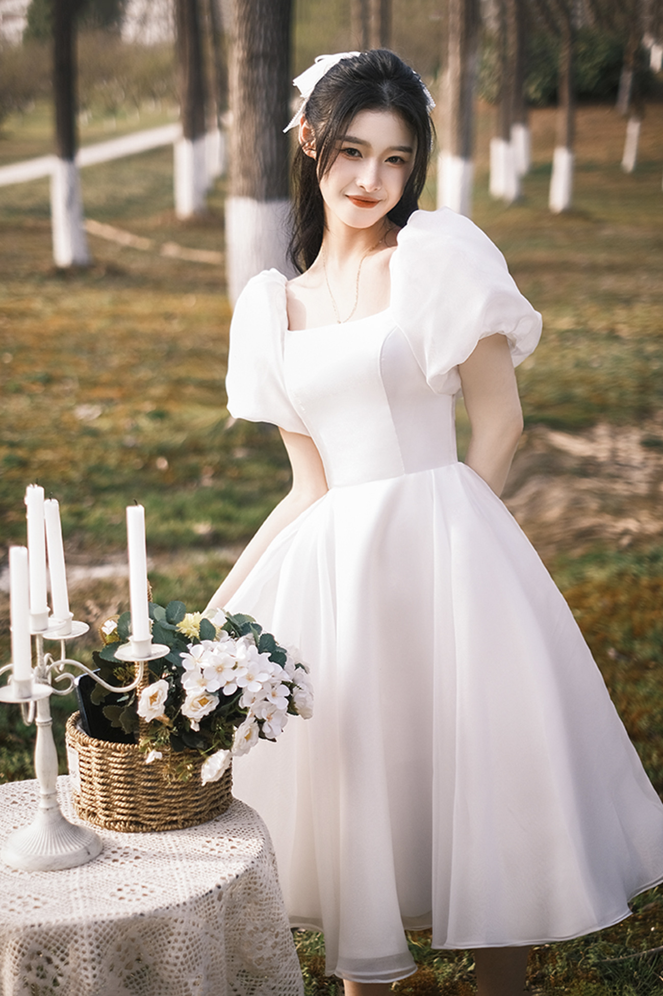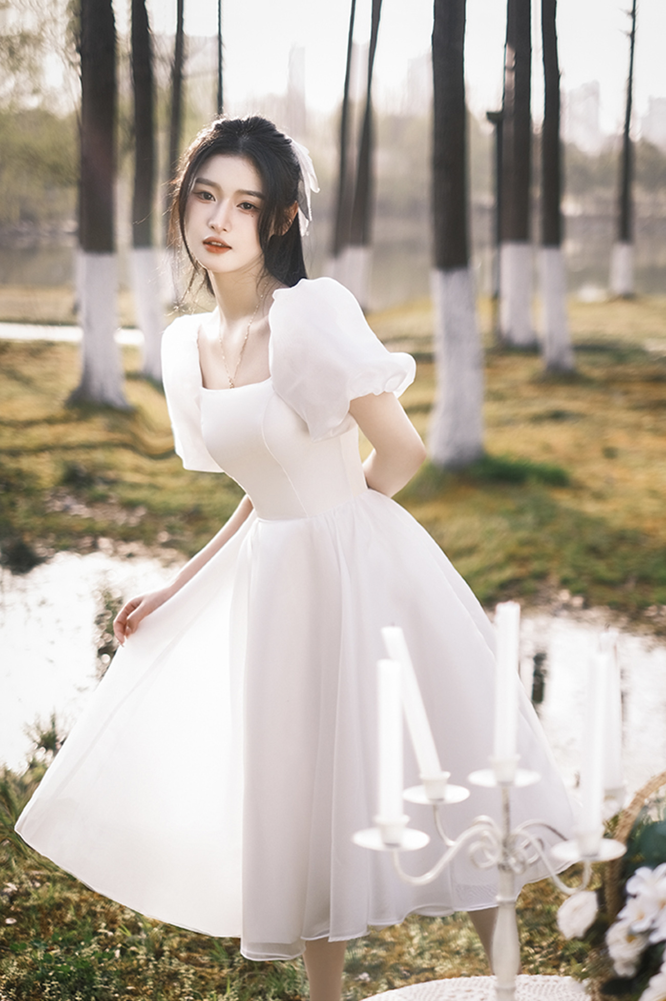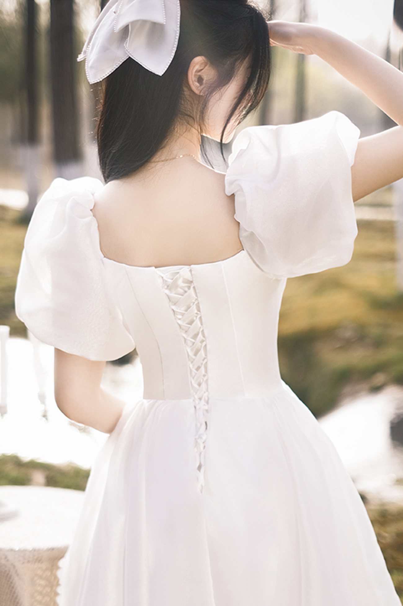 White tulle short A line prom dress homecoming dress