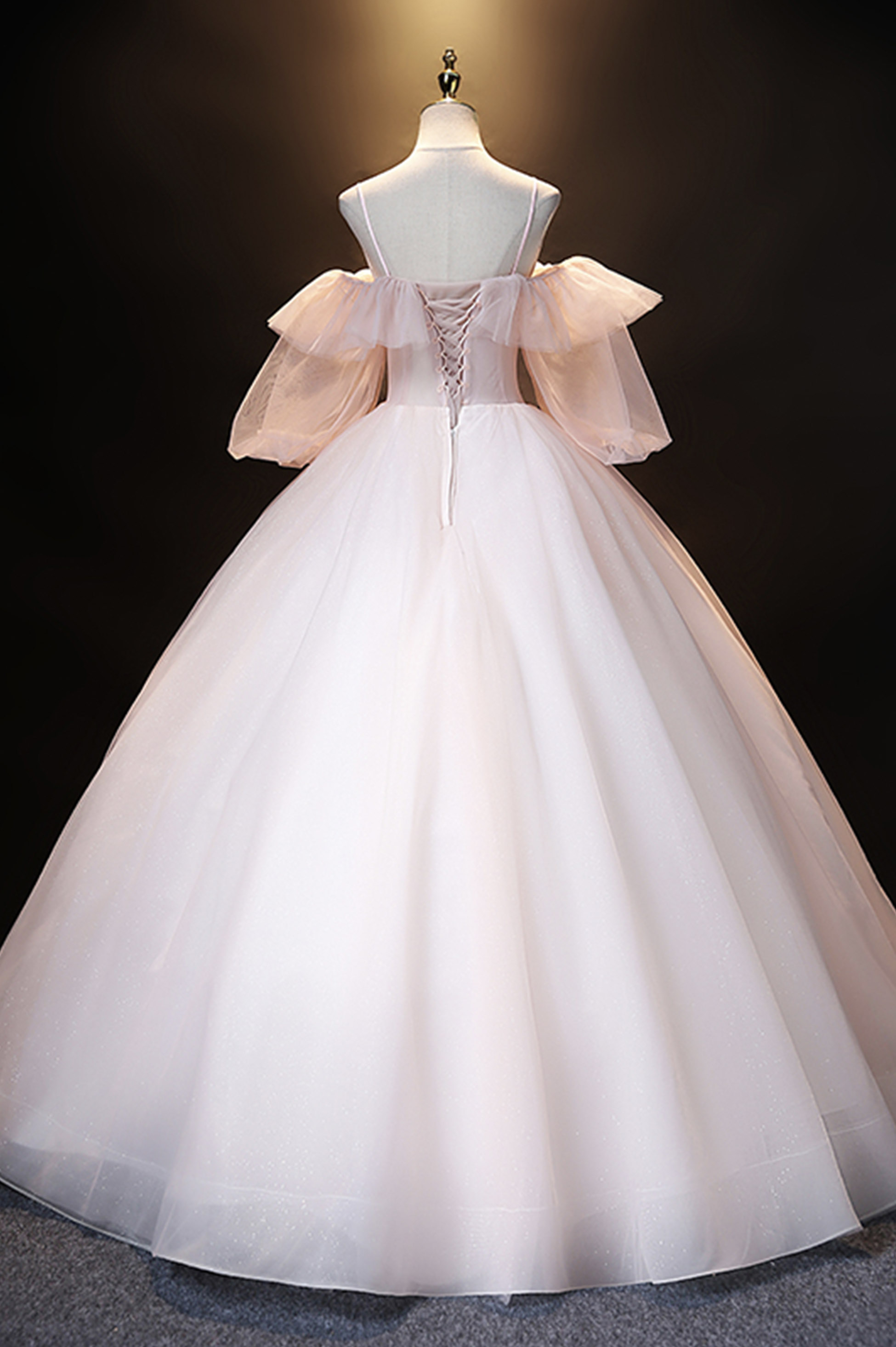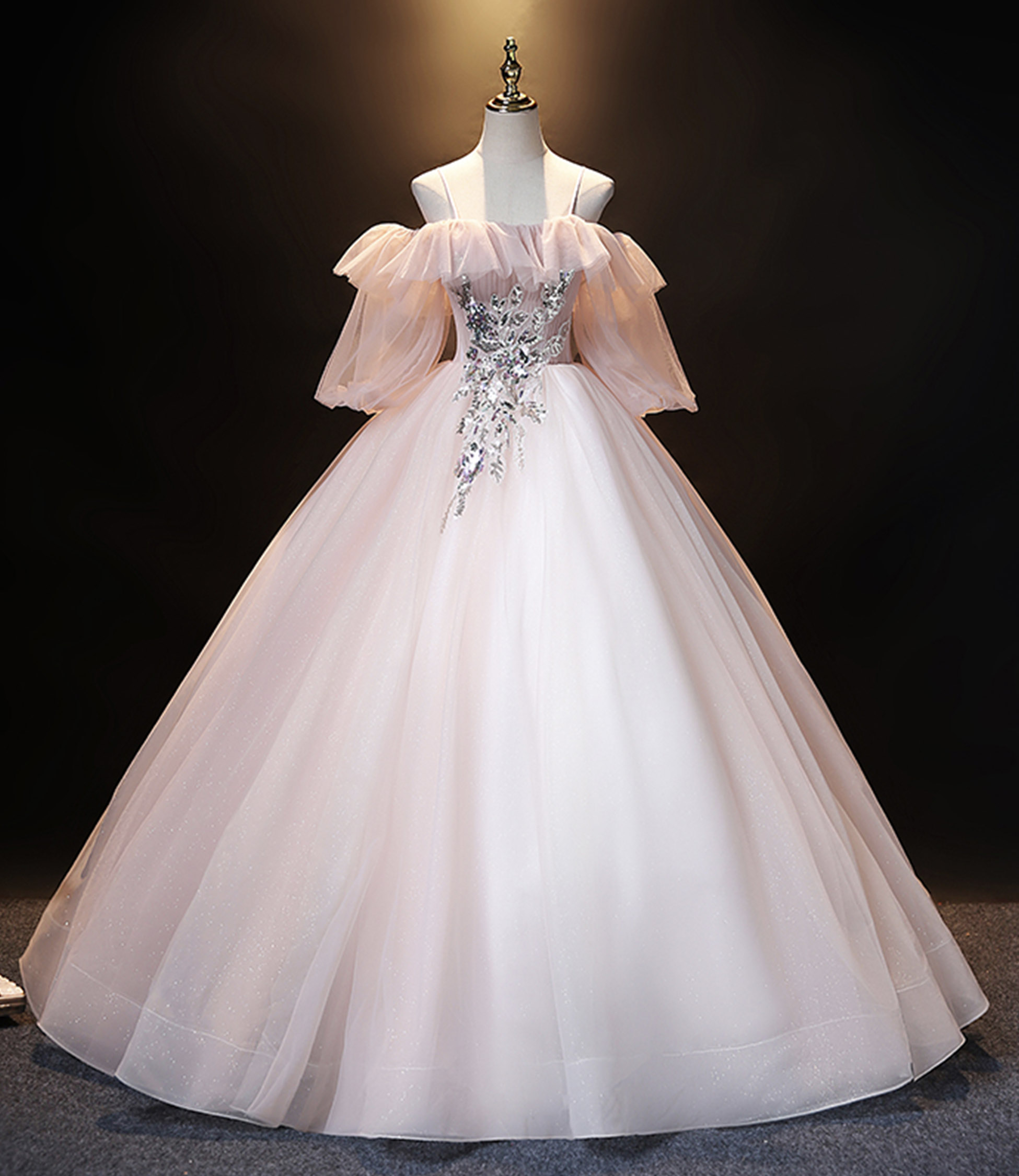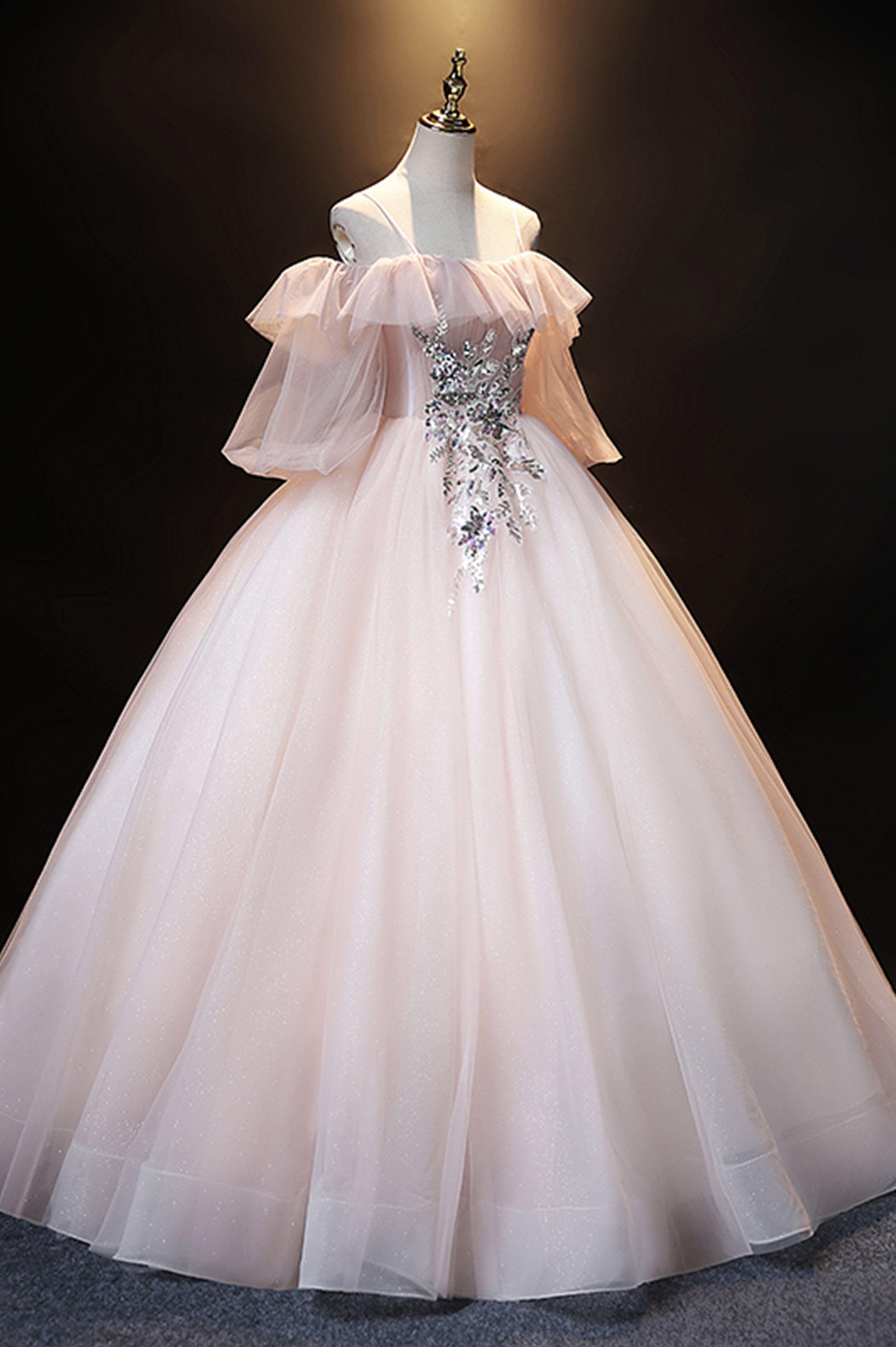 A-Line Pink Spaghetti Straps Long Ball Gown Dress