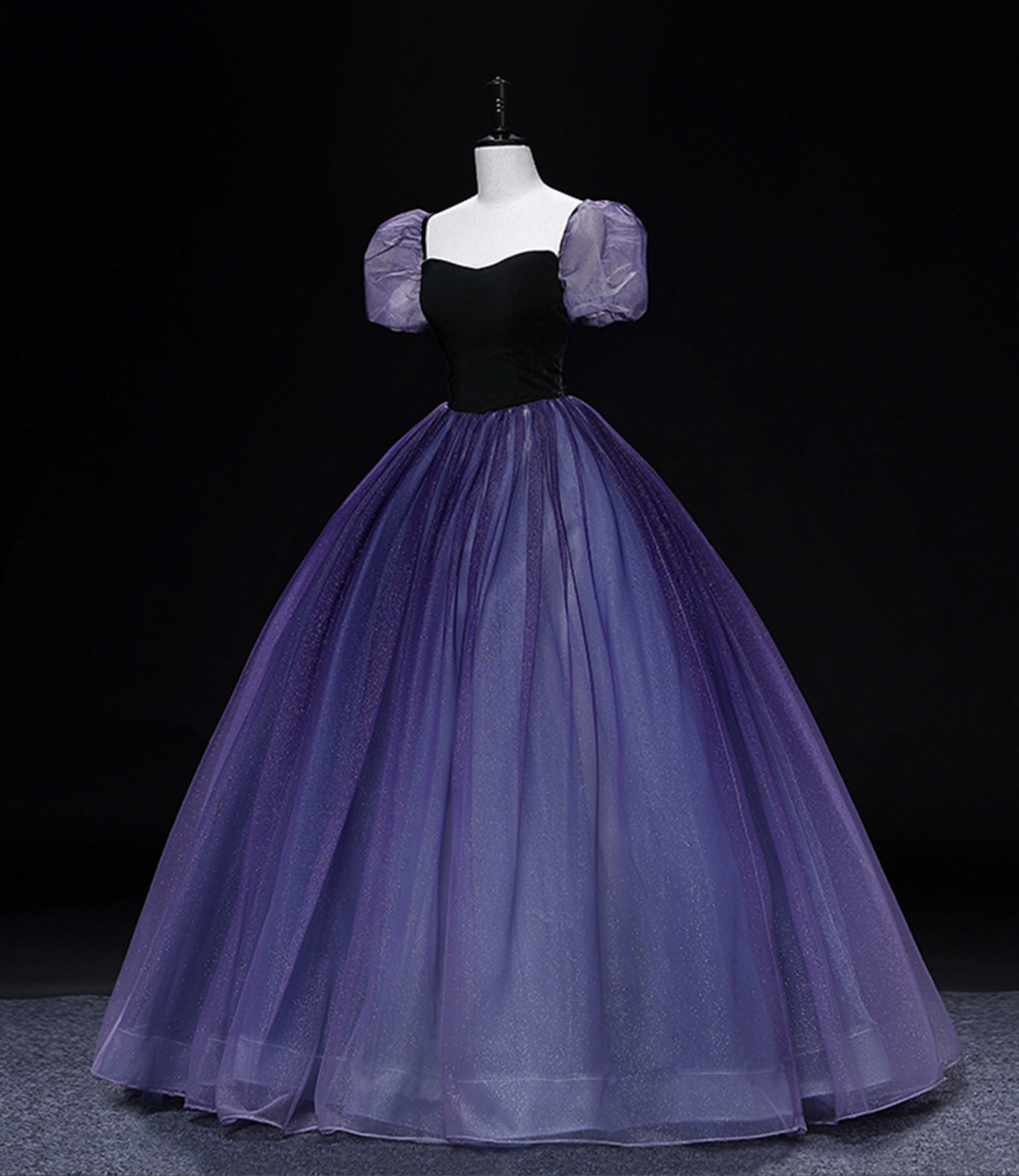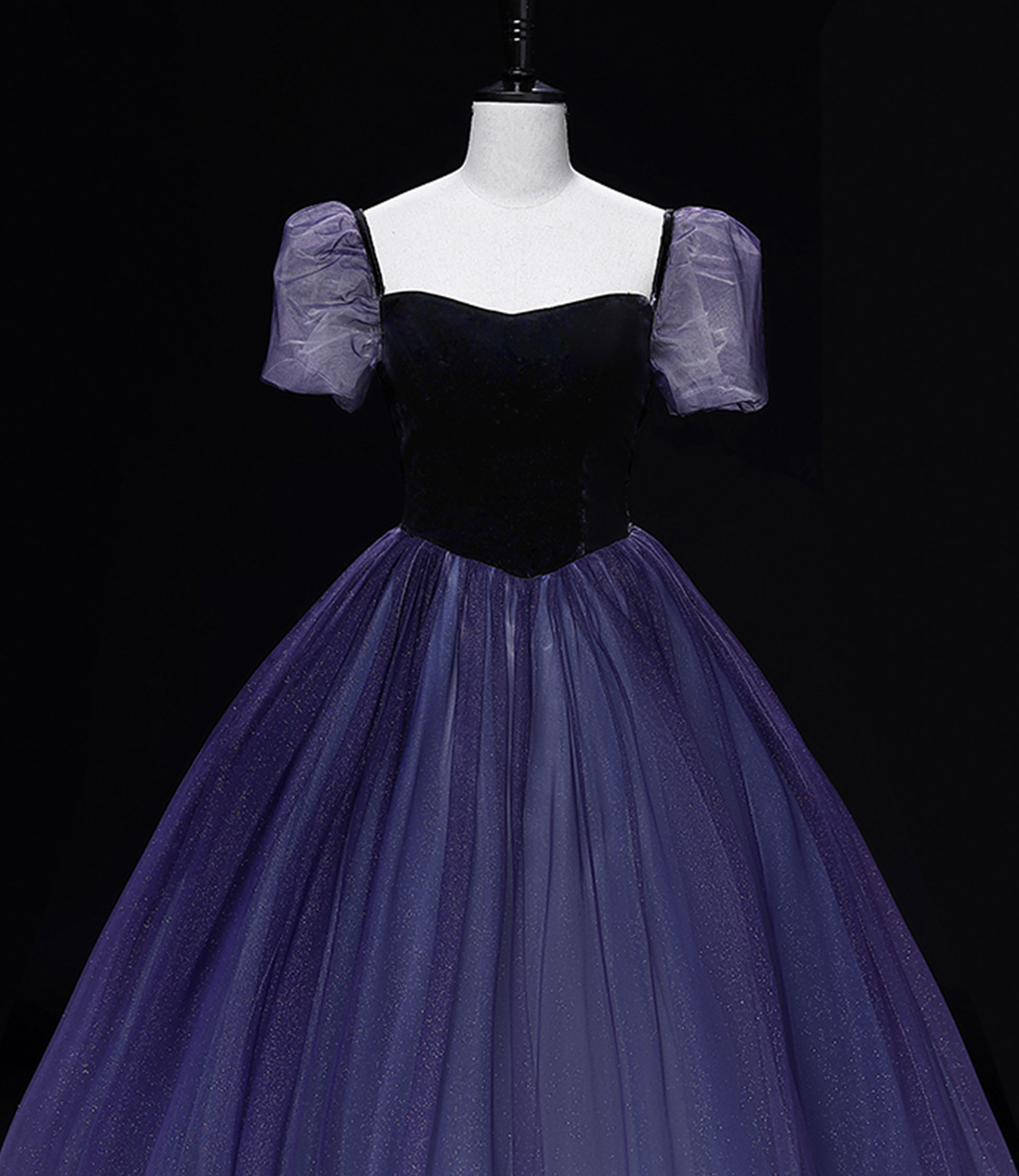 - Purple A-line Sparkly Tulle Long Prom Dress -