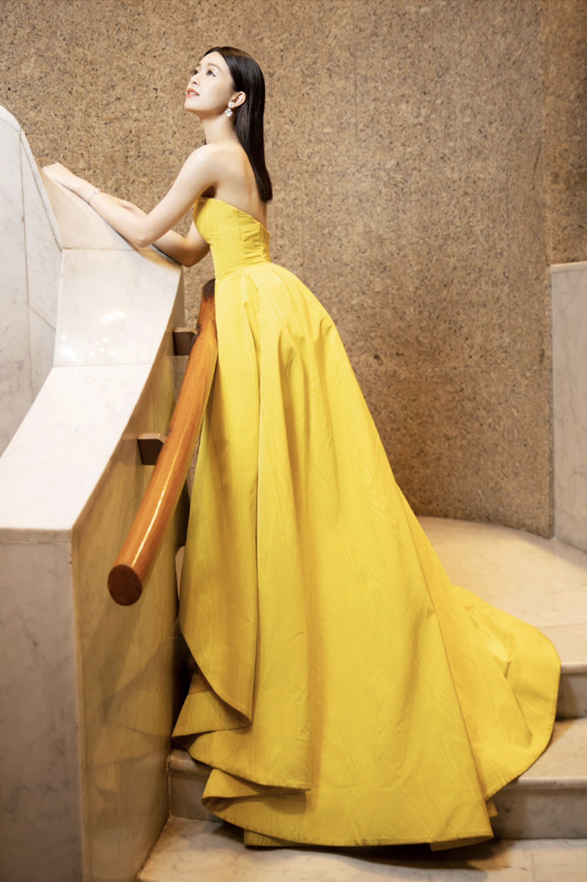 - Yellow Shoulderless High Low Prom Dress Evening Dress -