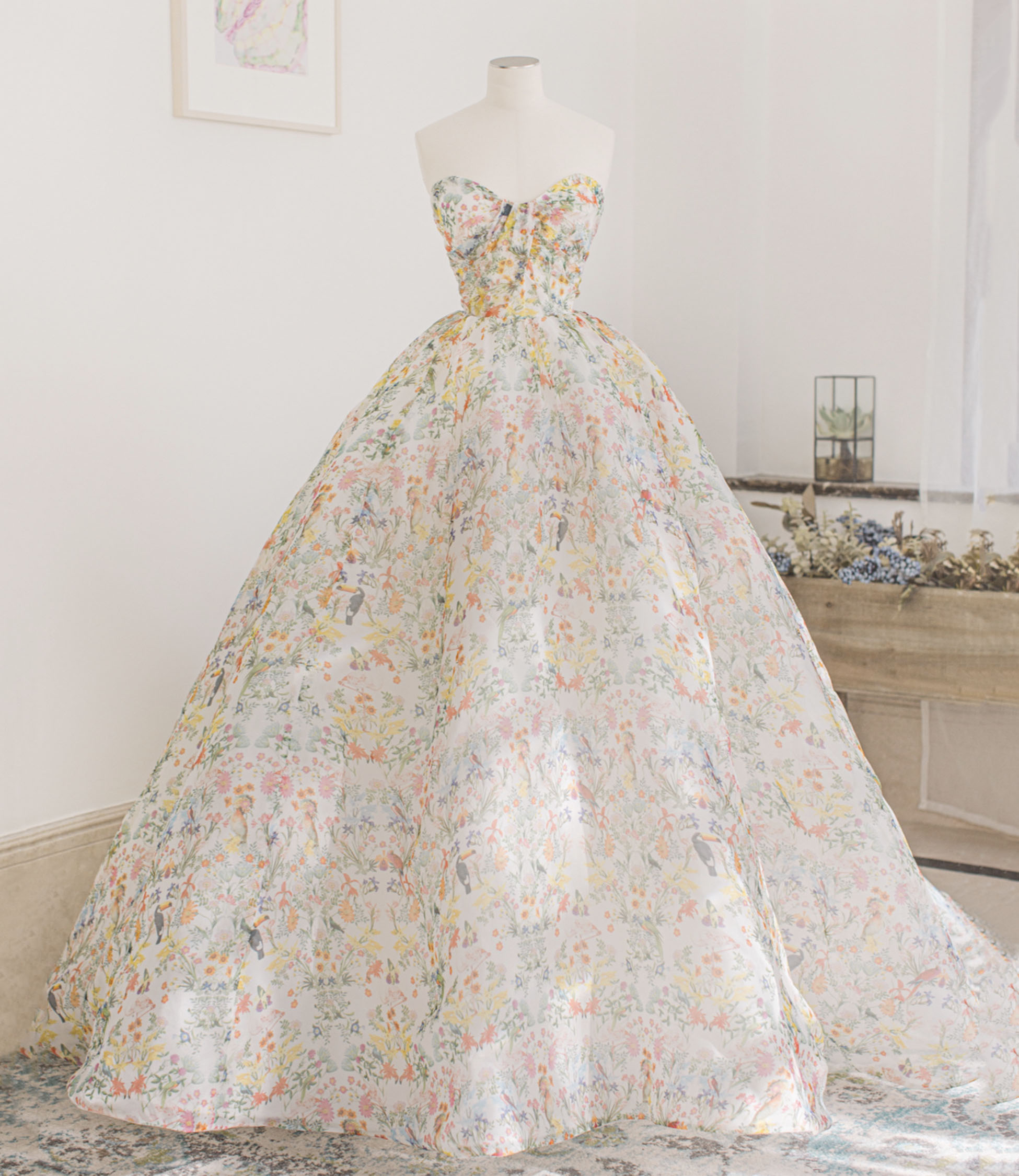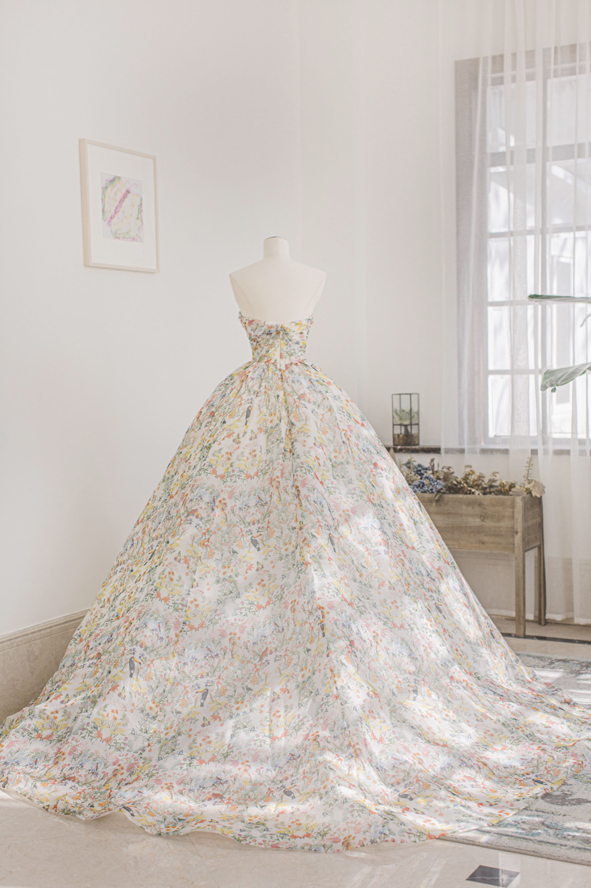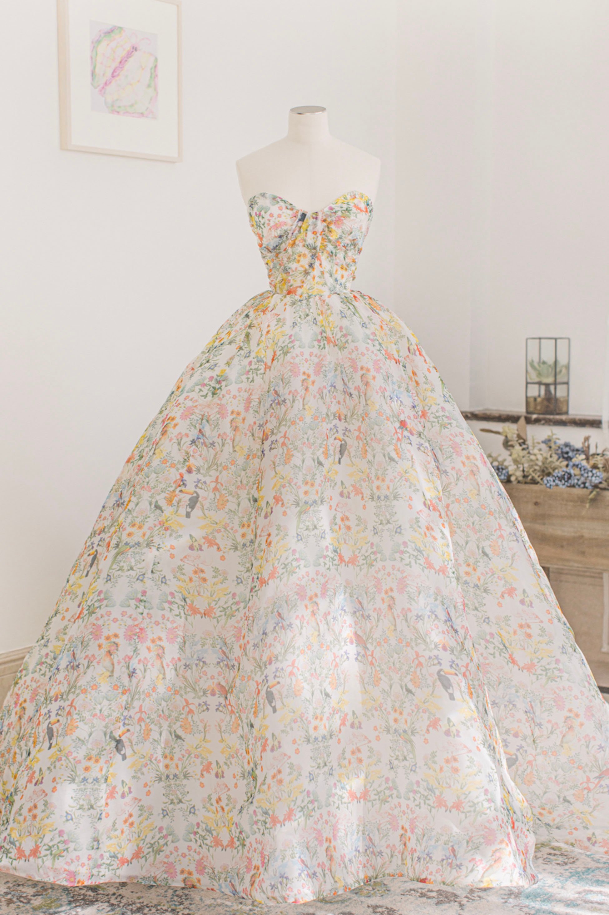 - Cute floral long A-line prom dress evening dress -