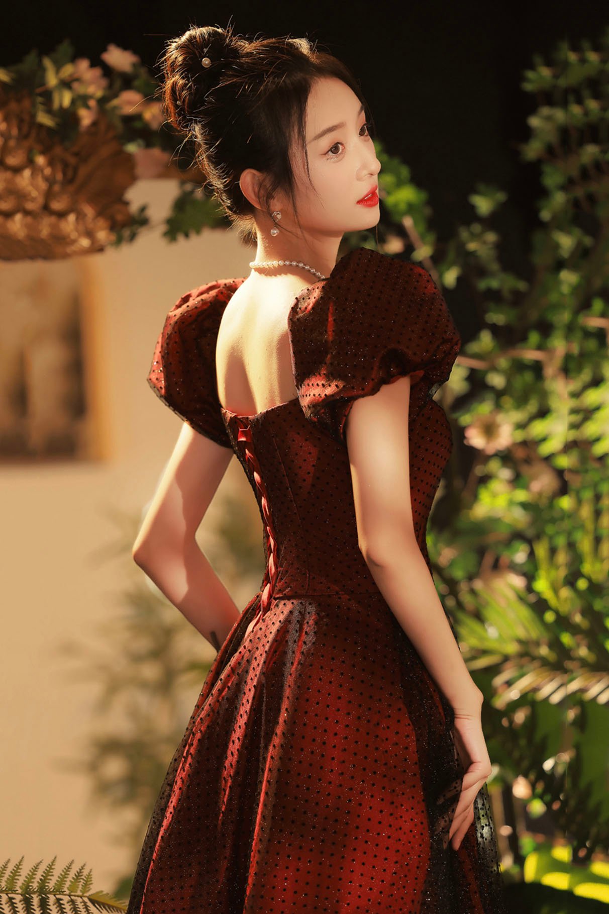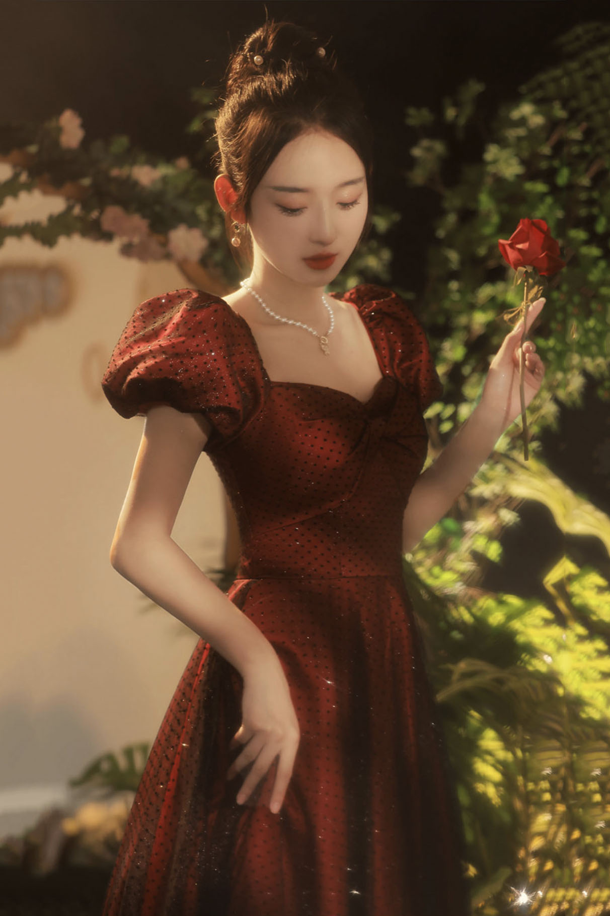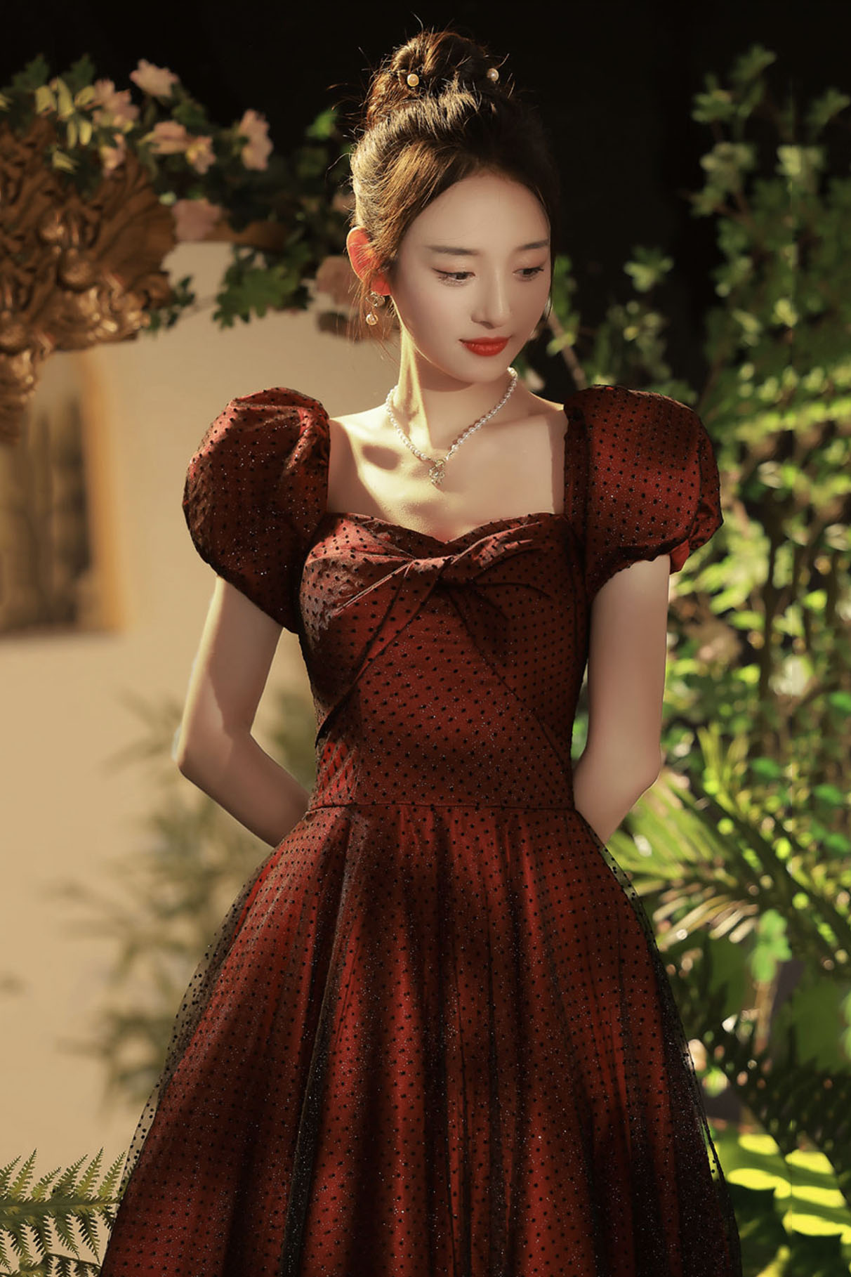 - Burgundy tulle long prom dress A-line evening dress -
