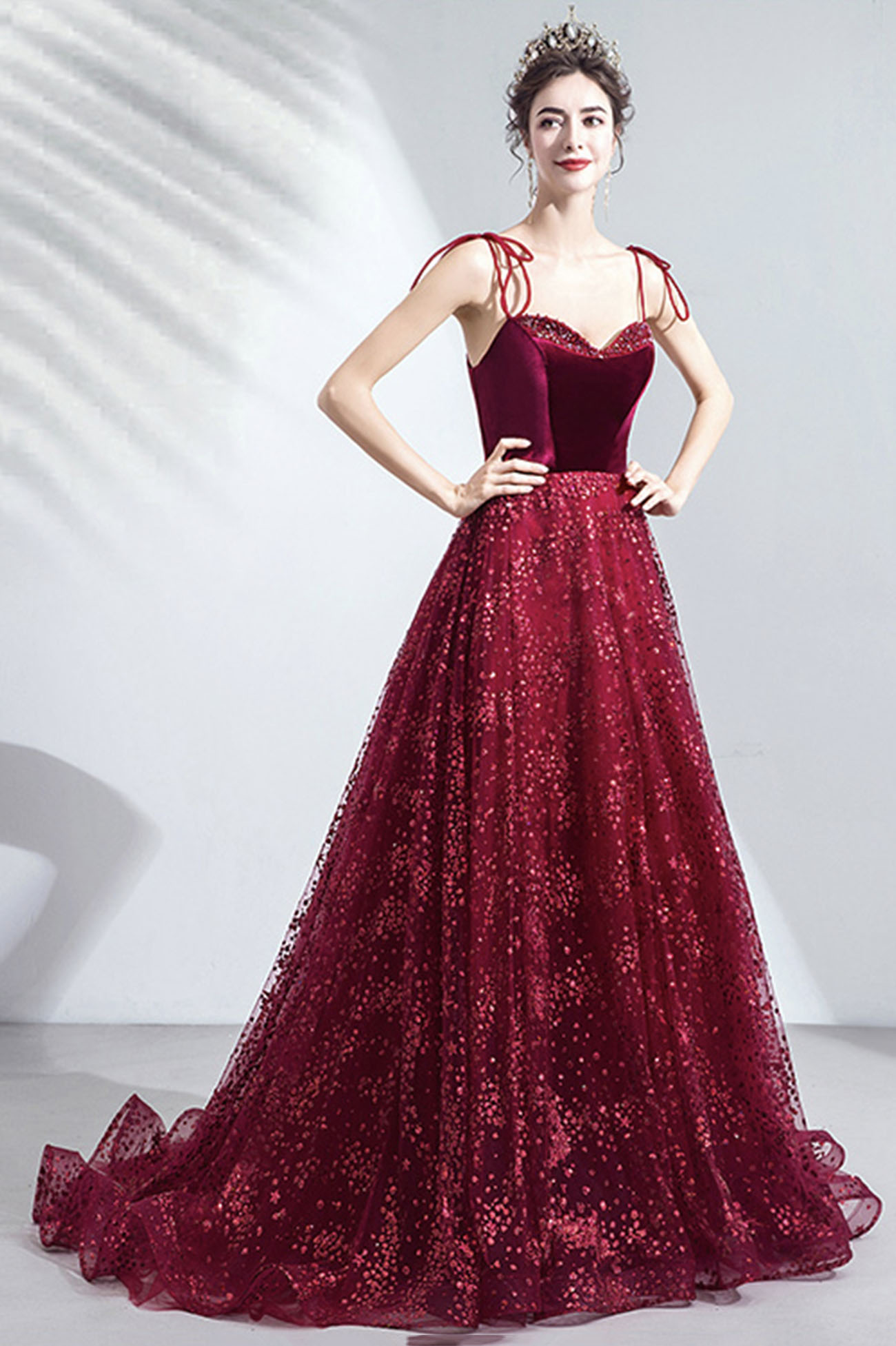 Material: velvet, tulle, sequins