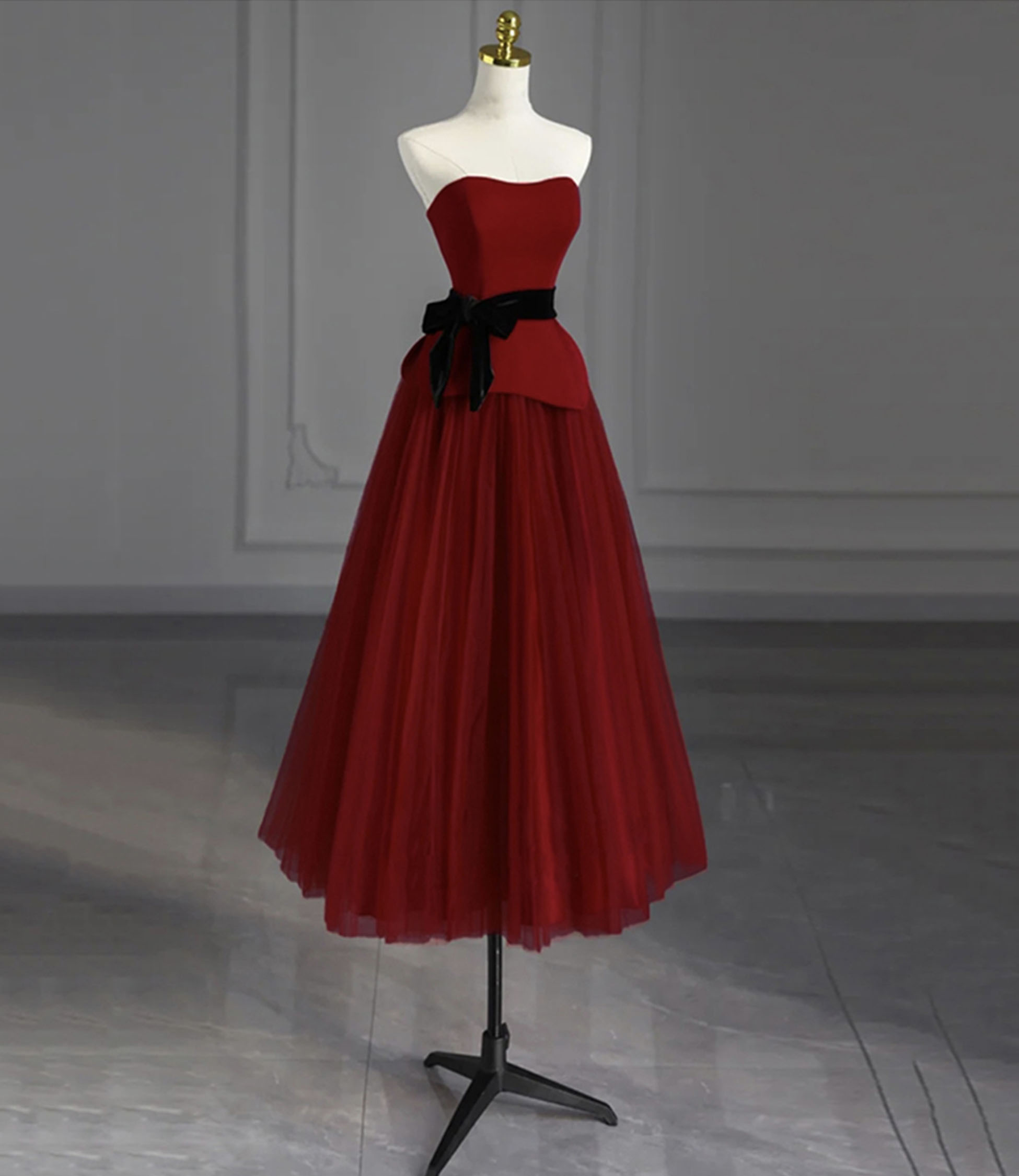 - Burgundy velvet tulle short prom dress homecoming dress -