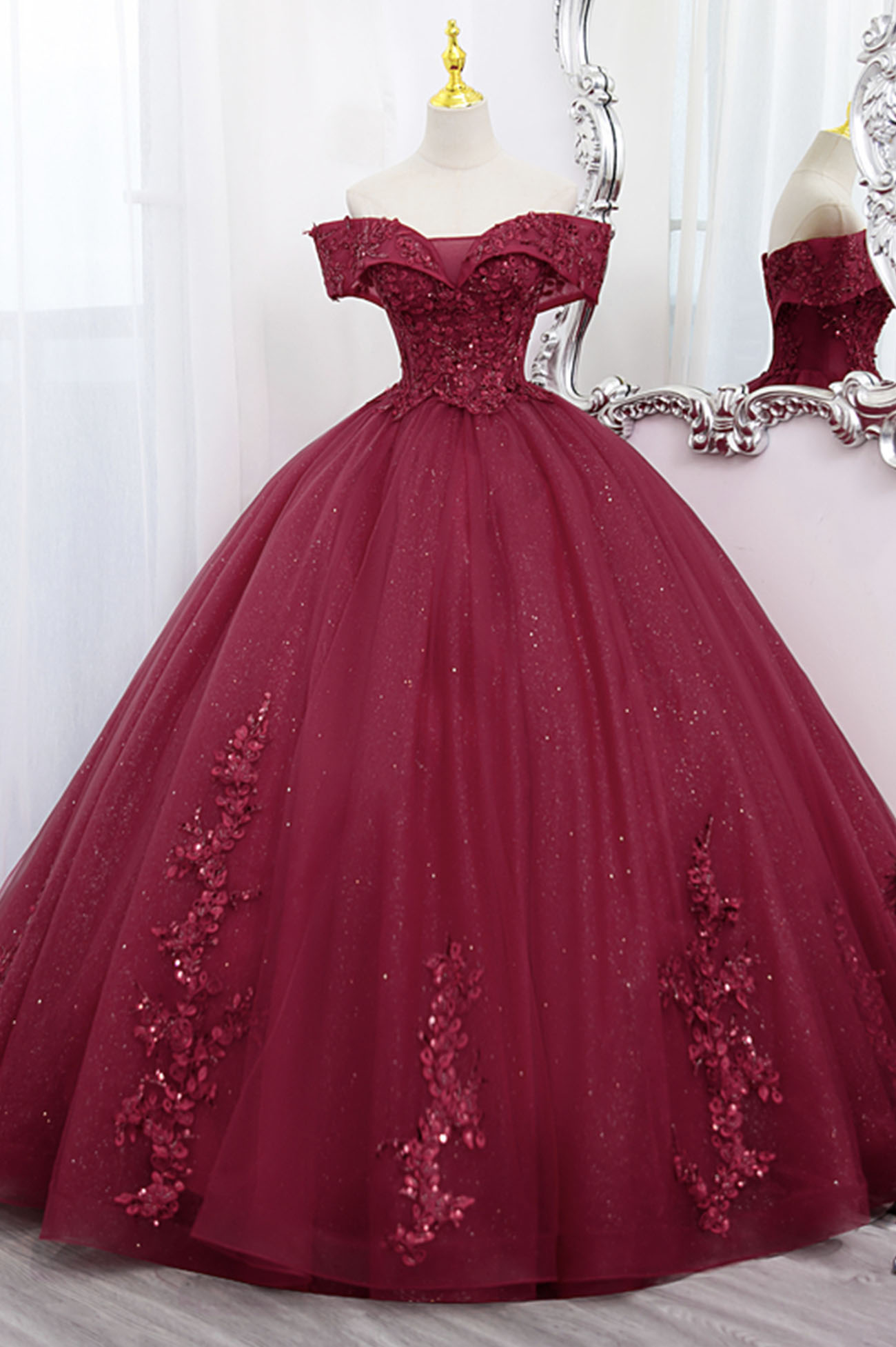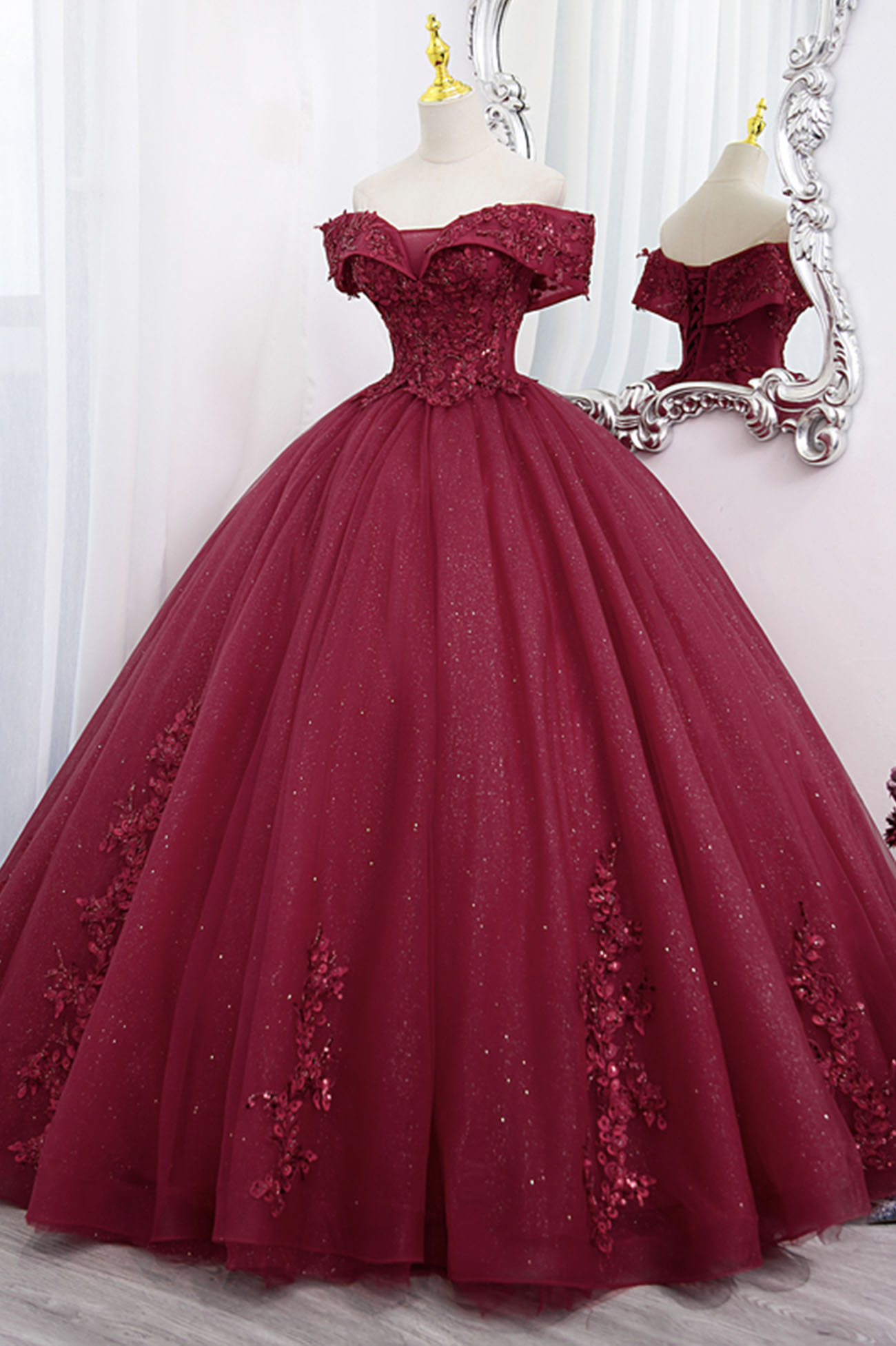 - Burgundy lace long ball gown dress formal dress -