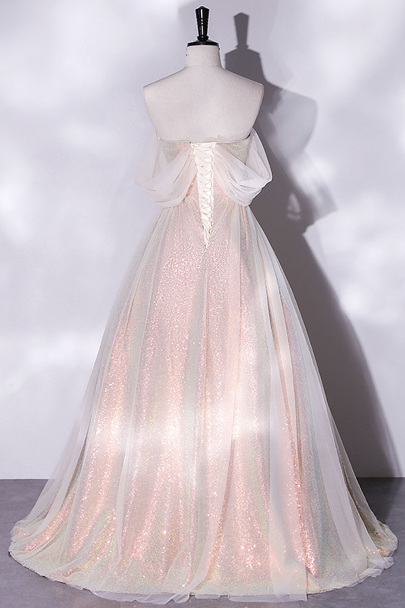 - Shiny tulle sequins long prom dress A-line evening dress -