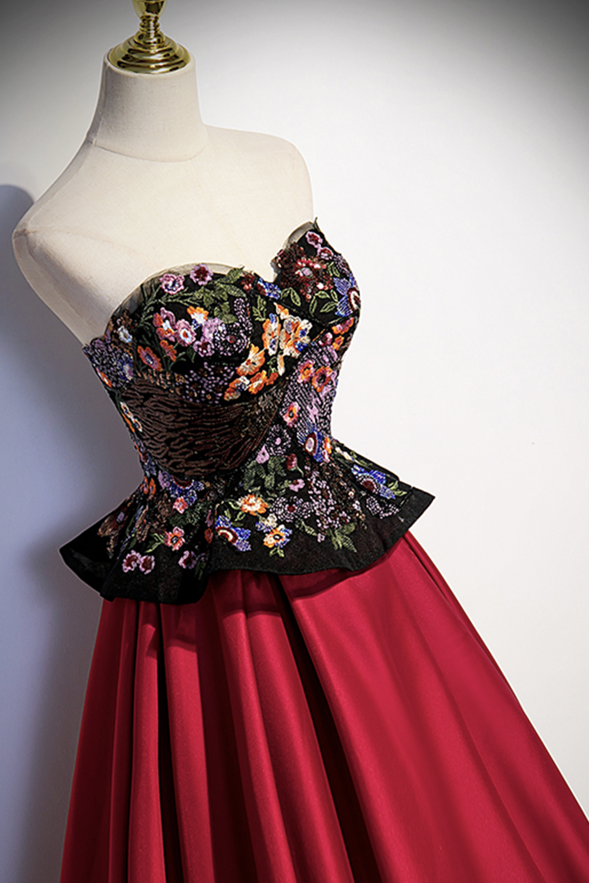 - Burgundy Strapless Long Prom Dress Evening Dress -