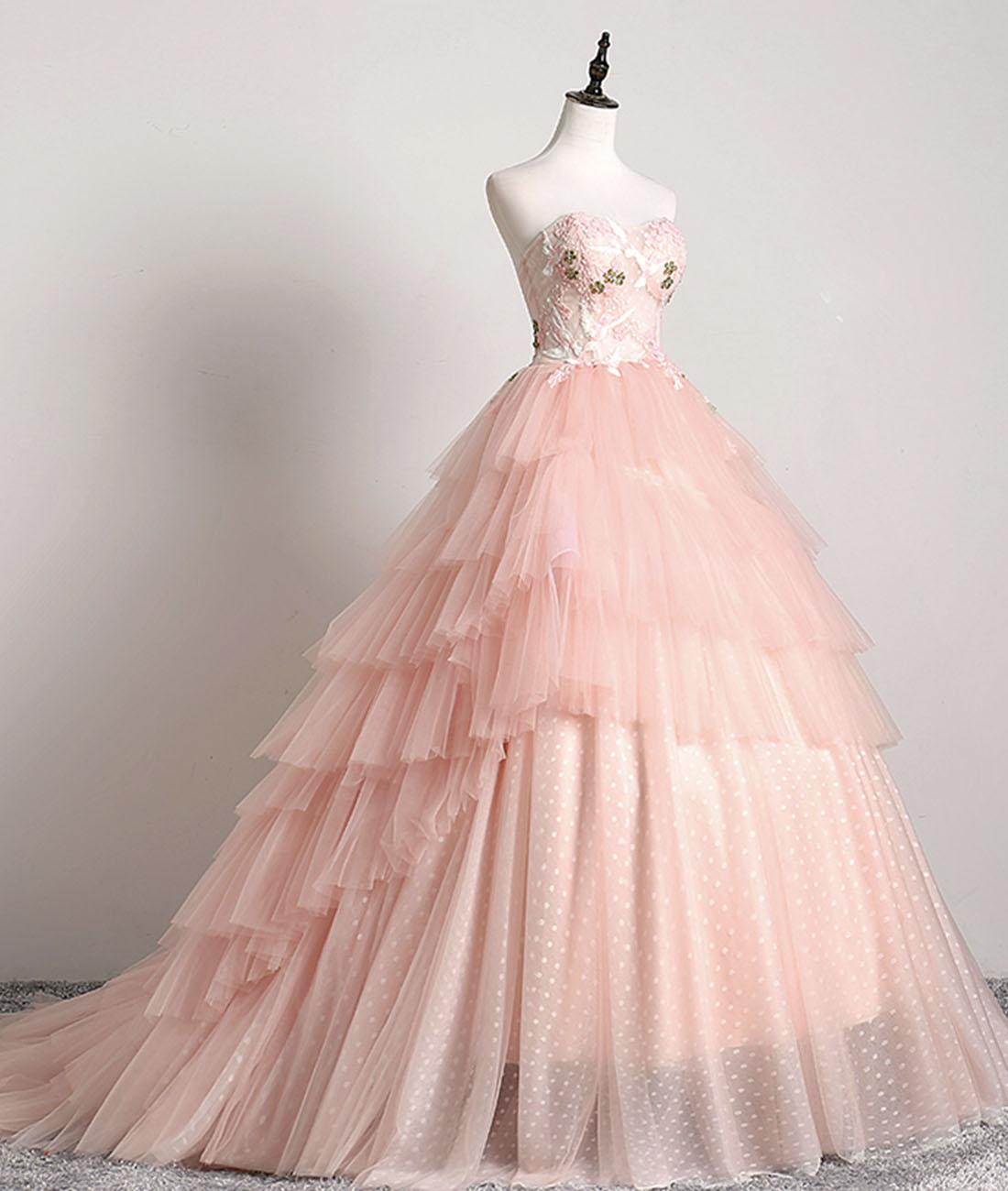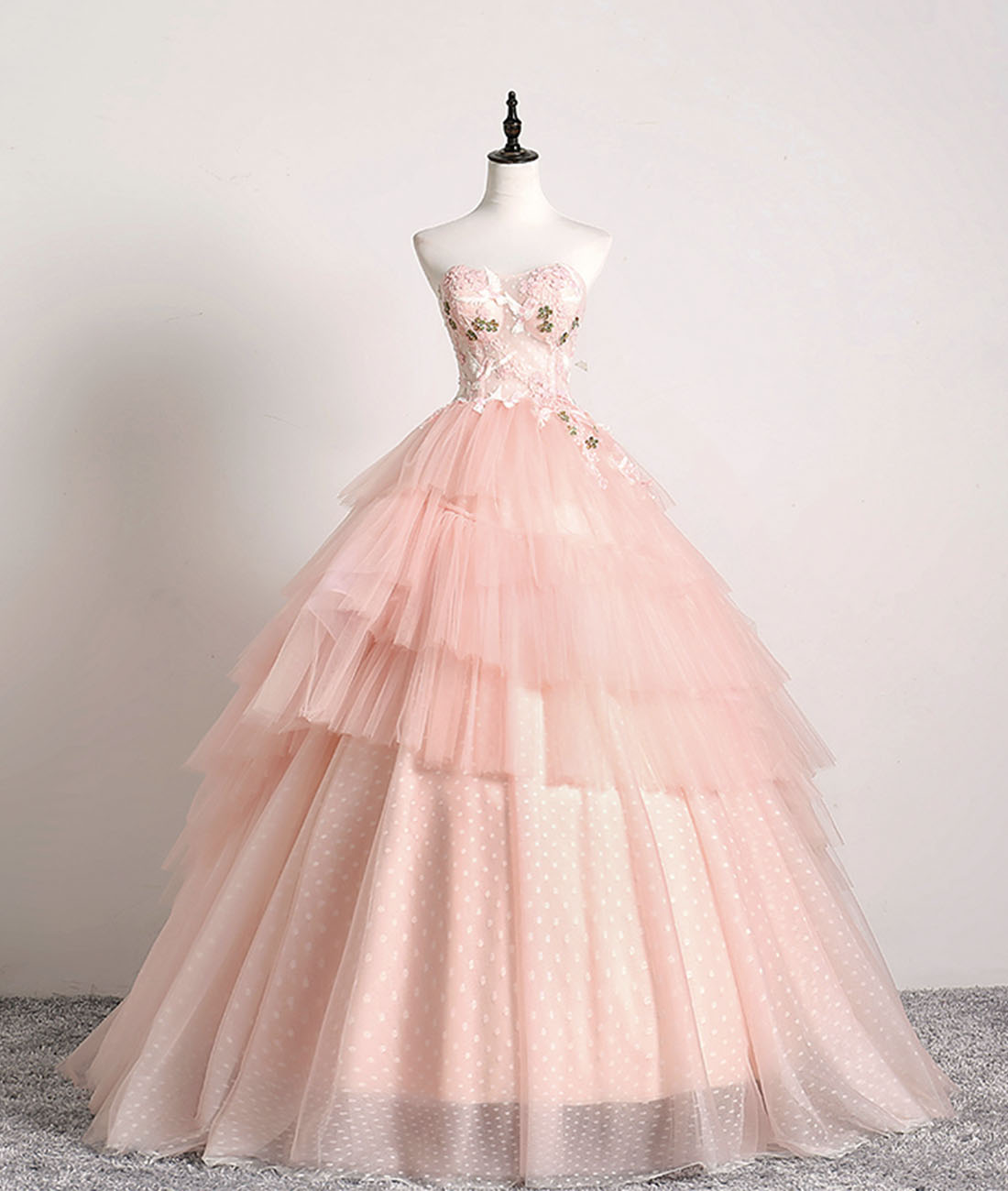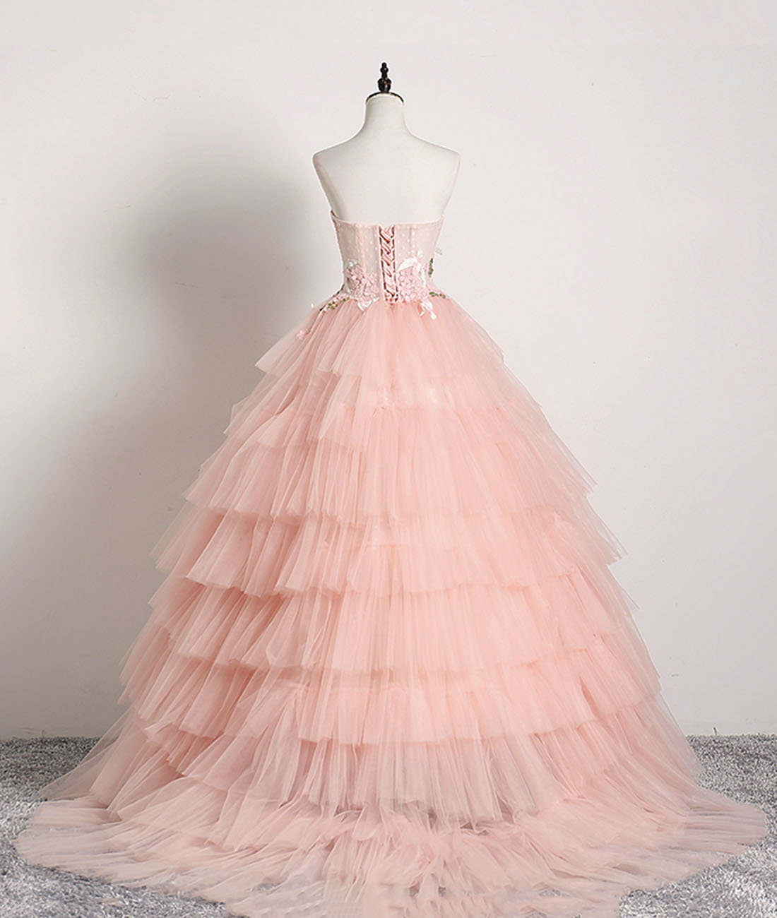 - Pink Ball Gown Tulle with Lace Sweet 16 Dresses, Long Quinceanera Dresses -