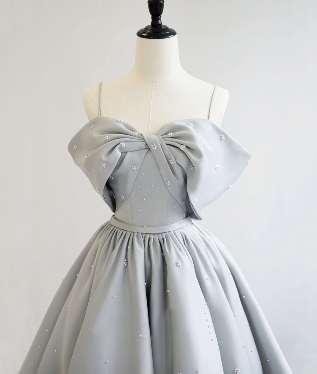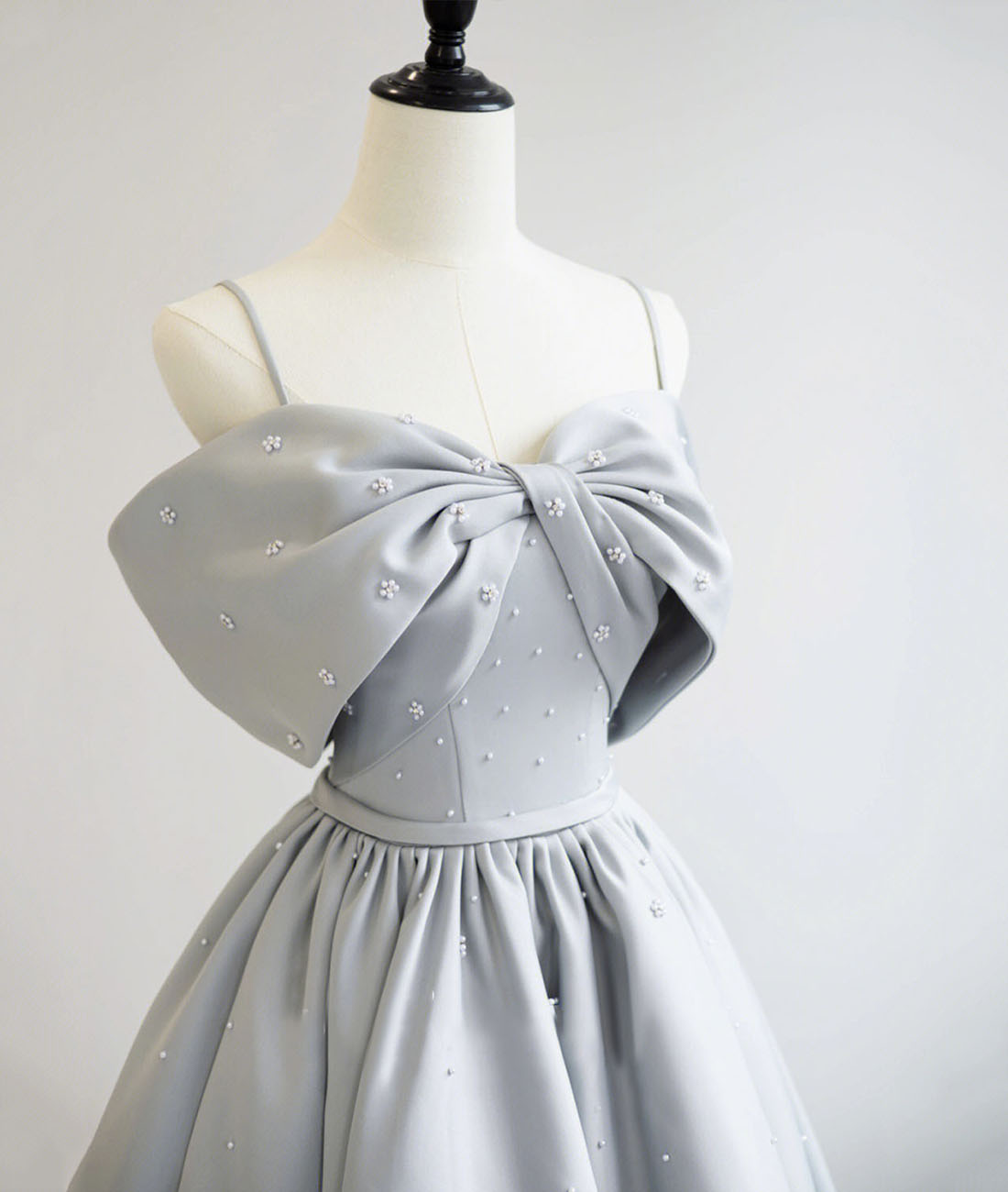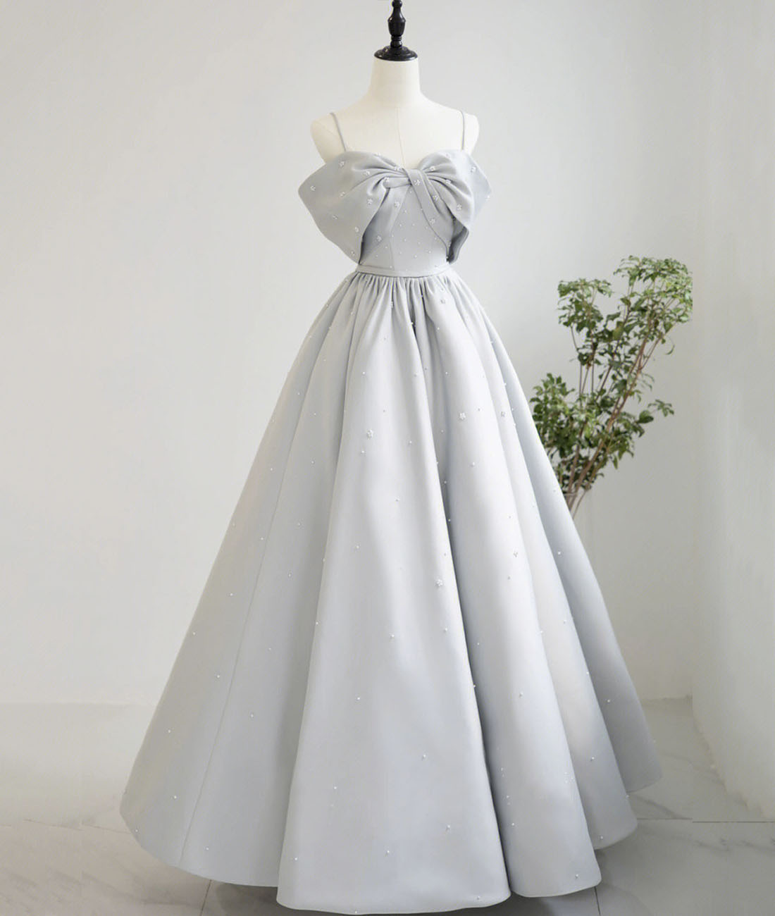 - Lovely Satin Pearls Floor Length Prom Dress, A-Line Evening Party Dress -