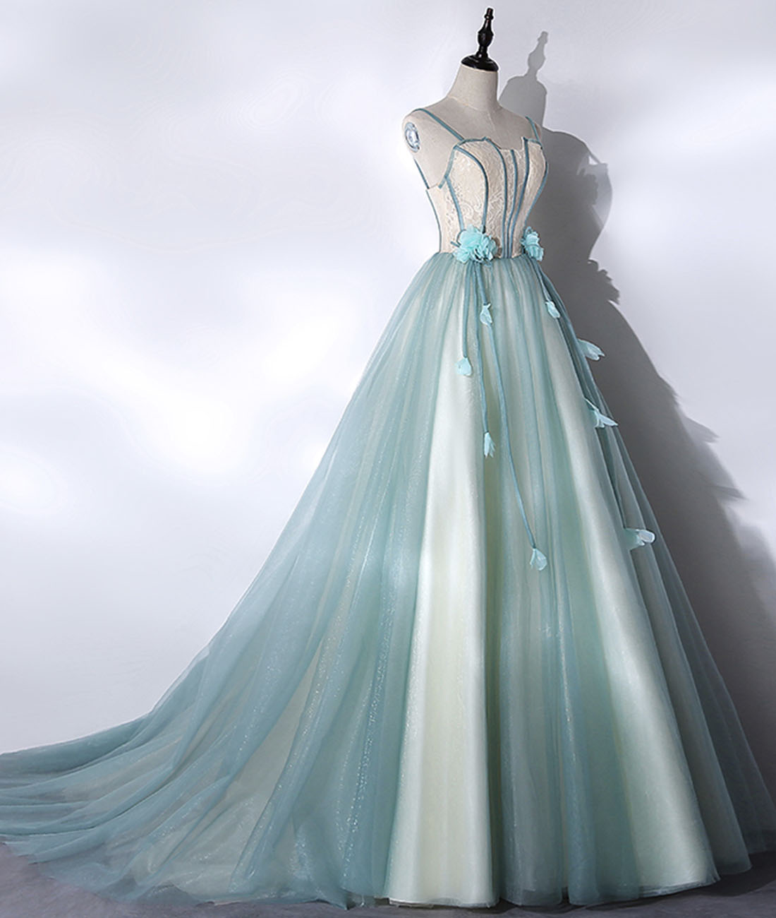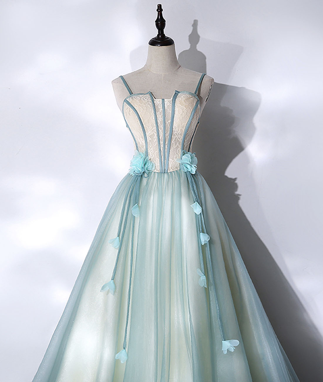 - Green Spaghetti Lace Long Prom Dress, A-Line Evening Party Dress -