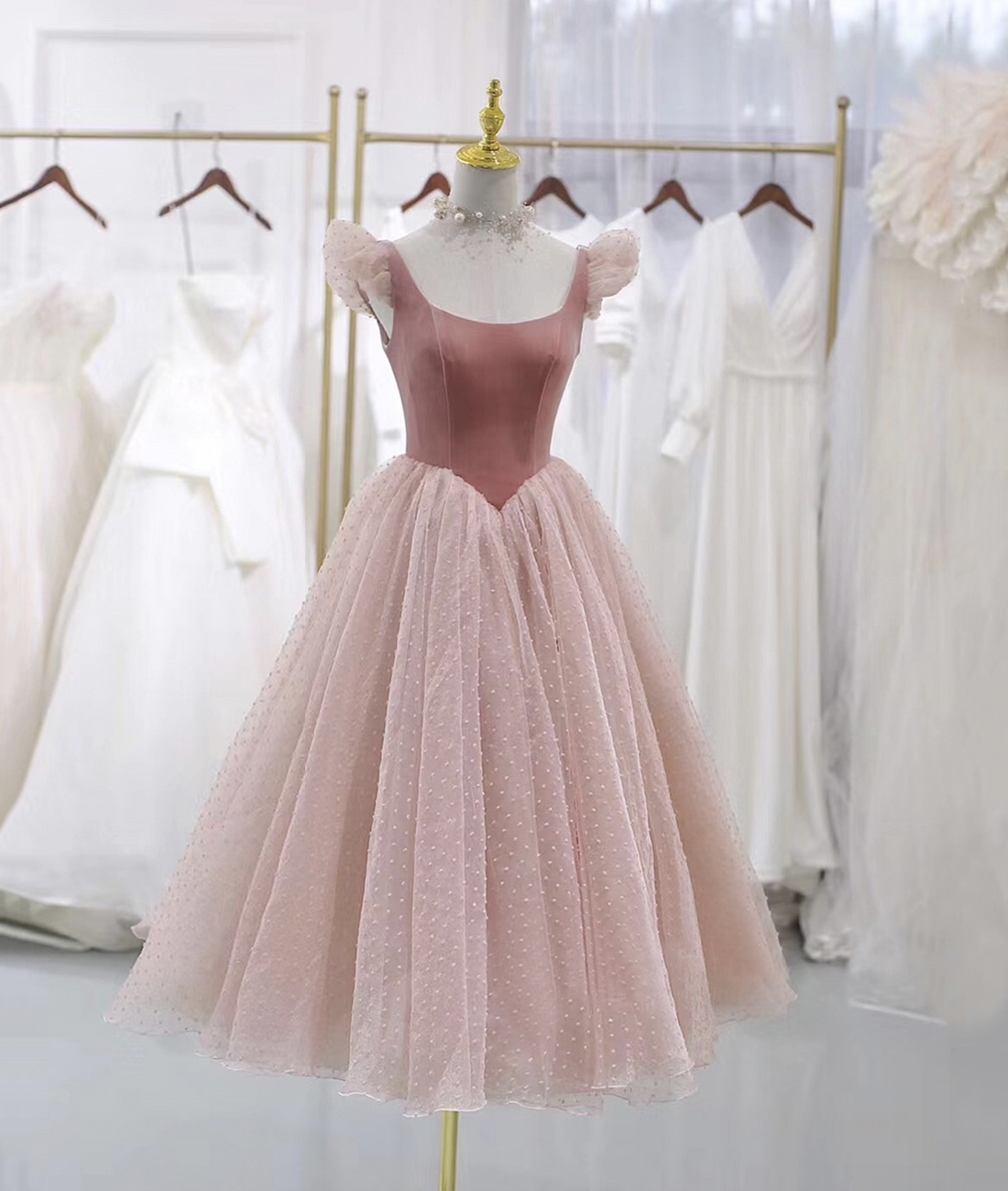 - Pink Velvet Tulle Short Prom Dress, Cute A-Line Homecoming Dress -