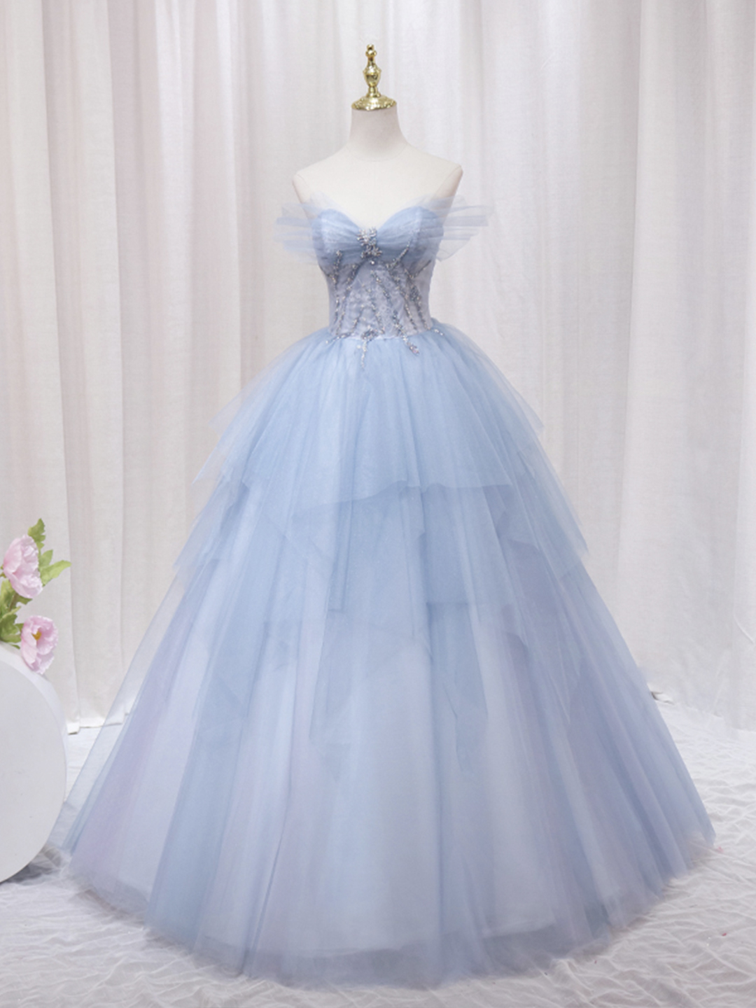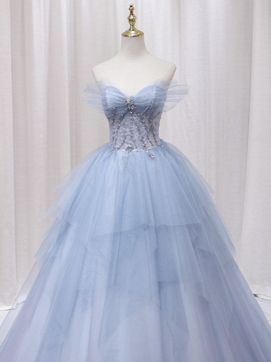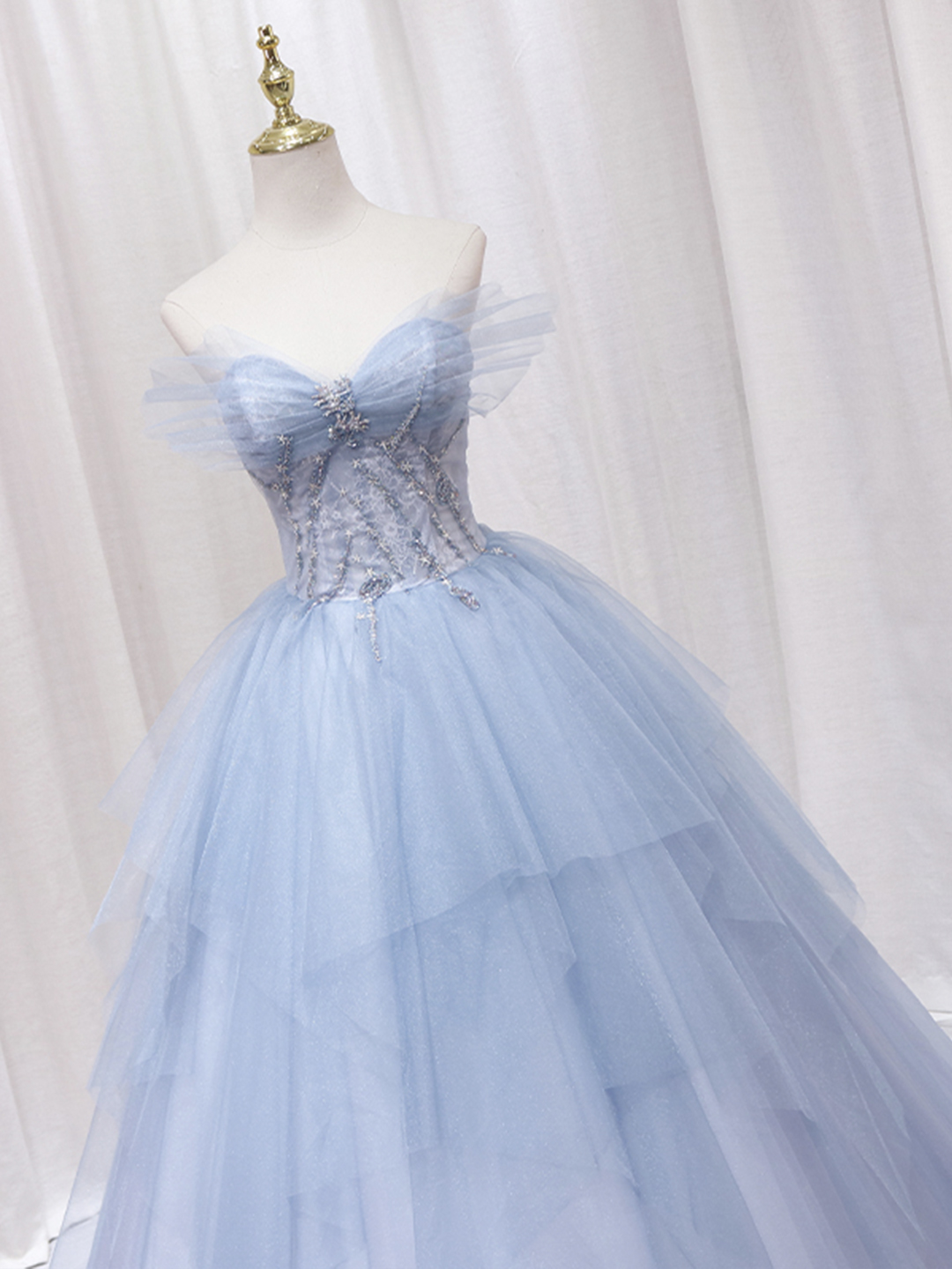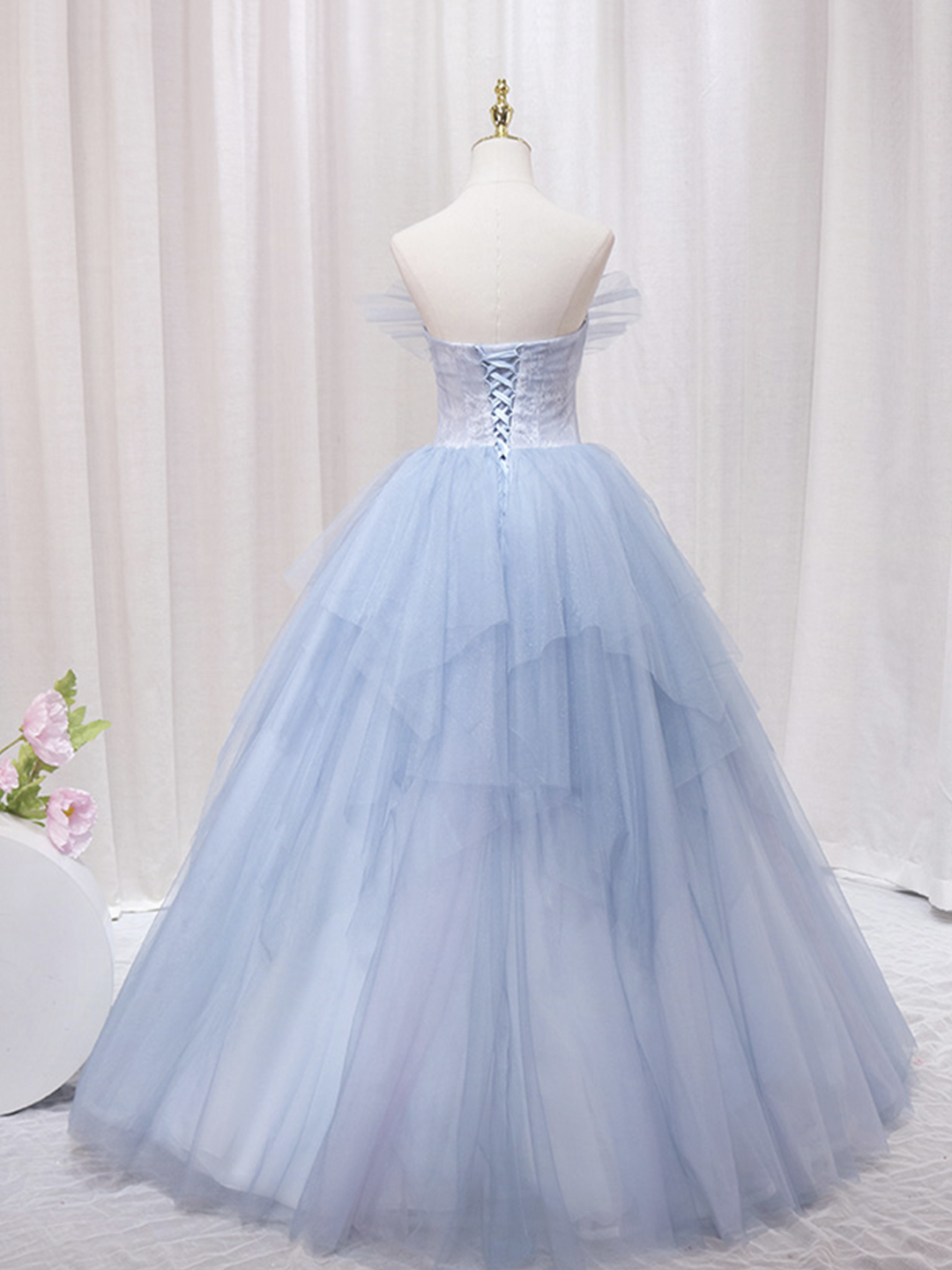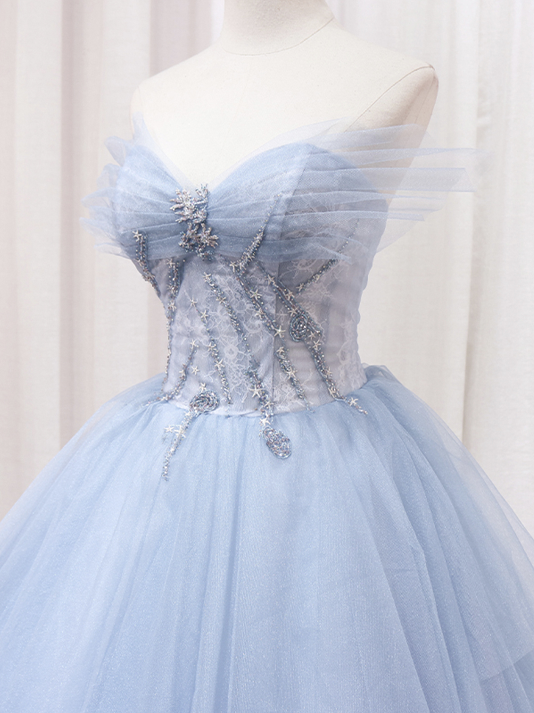 - Blue Tulle Lace Long Prom Gown, A-Line Evening Formal Dress -