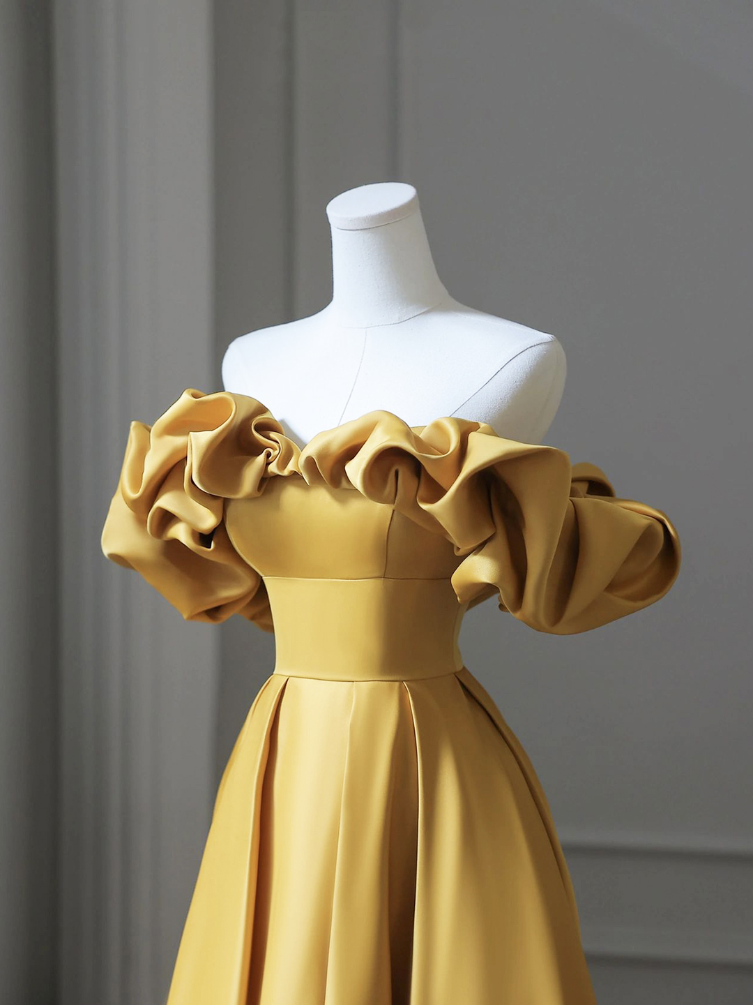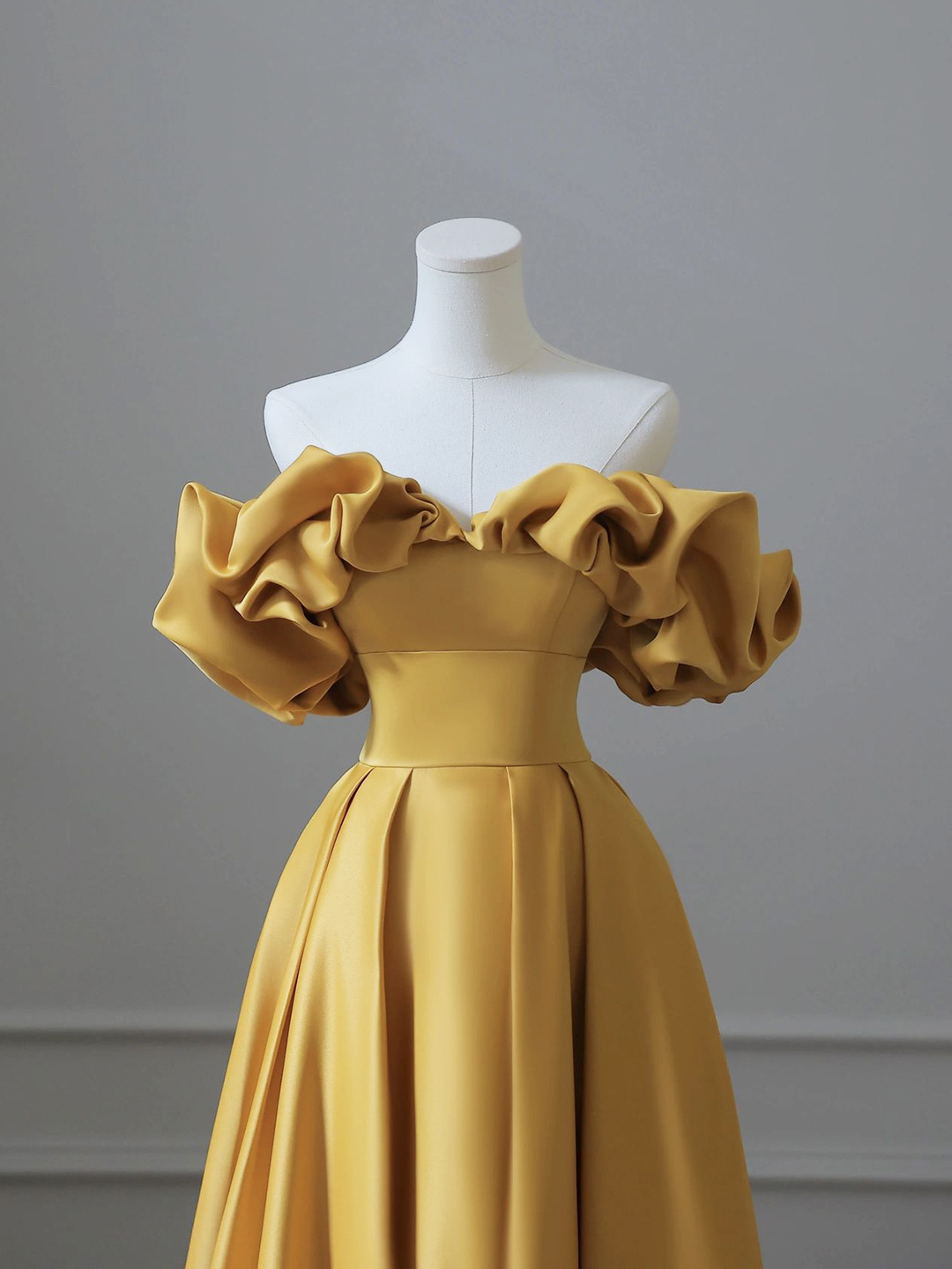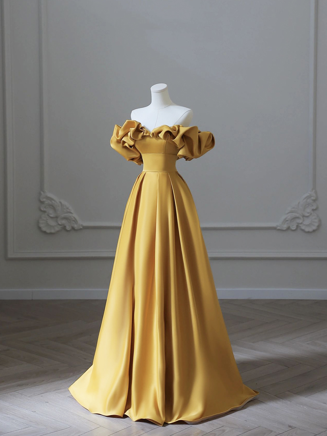 - Yellow Saitn Long Prom Dress, Off Shoulder Evening Party Dress -