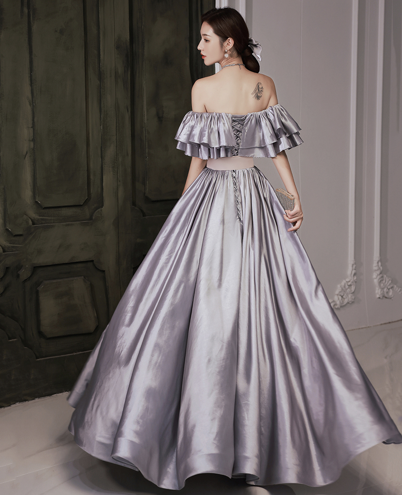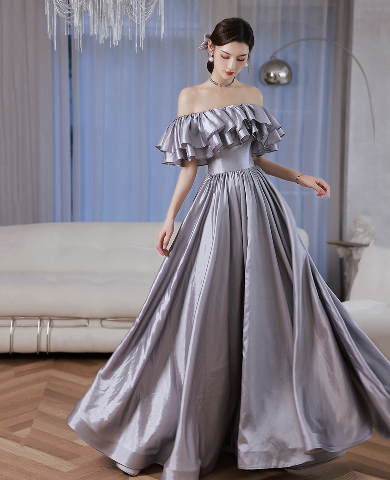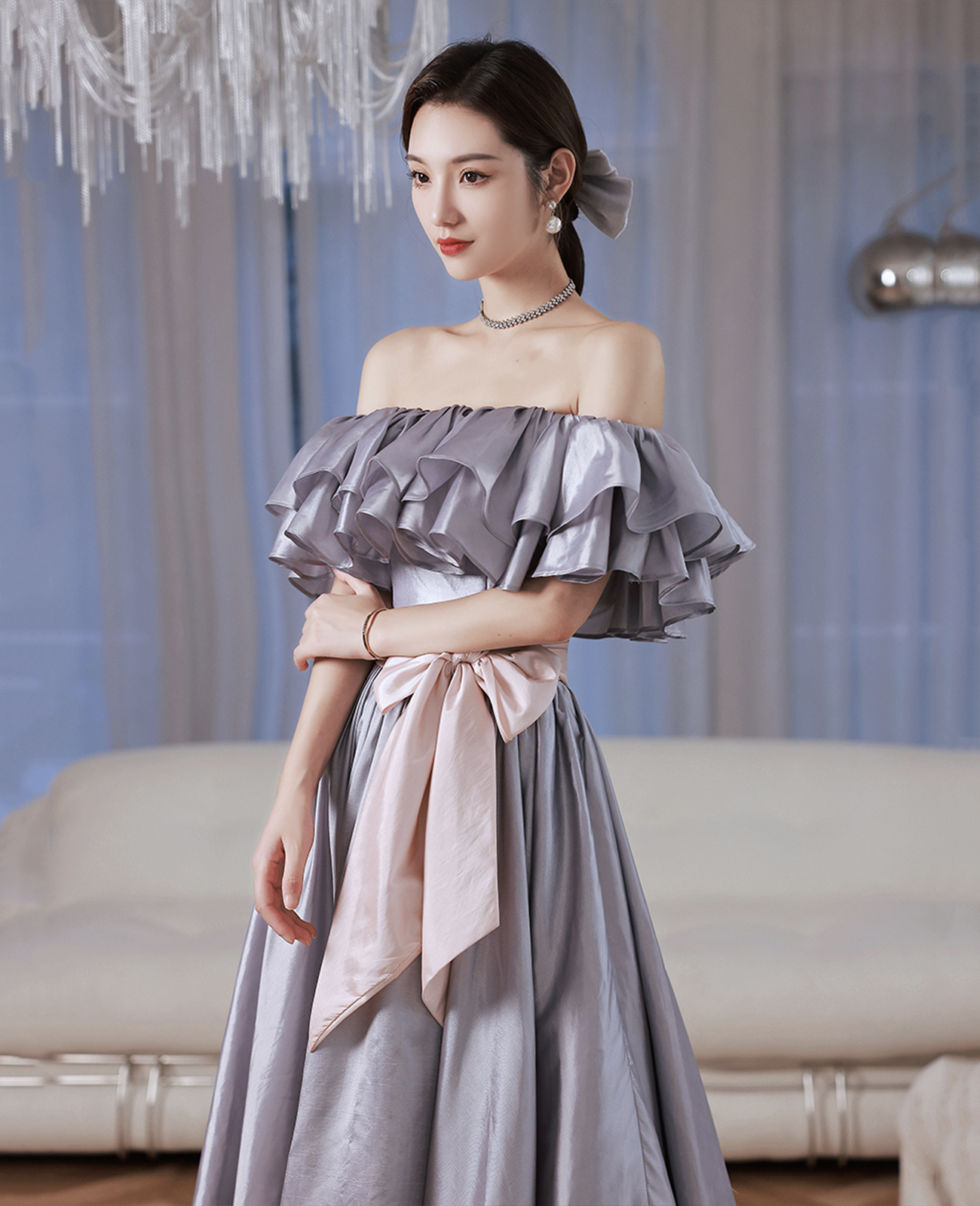 - Lovely Satin Floor Length Prom Dress, Off Shoulder Evening Dress with Bow -