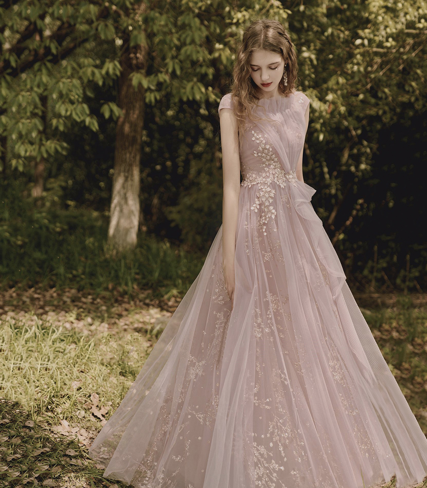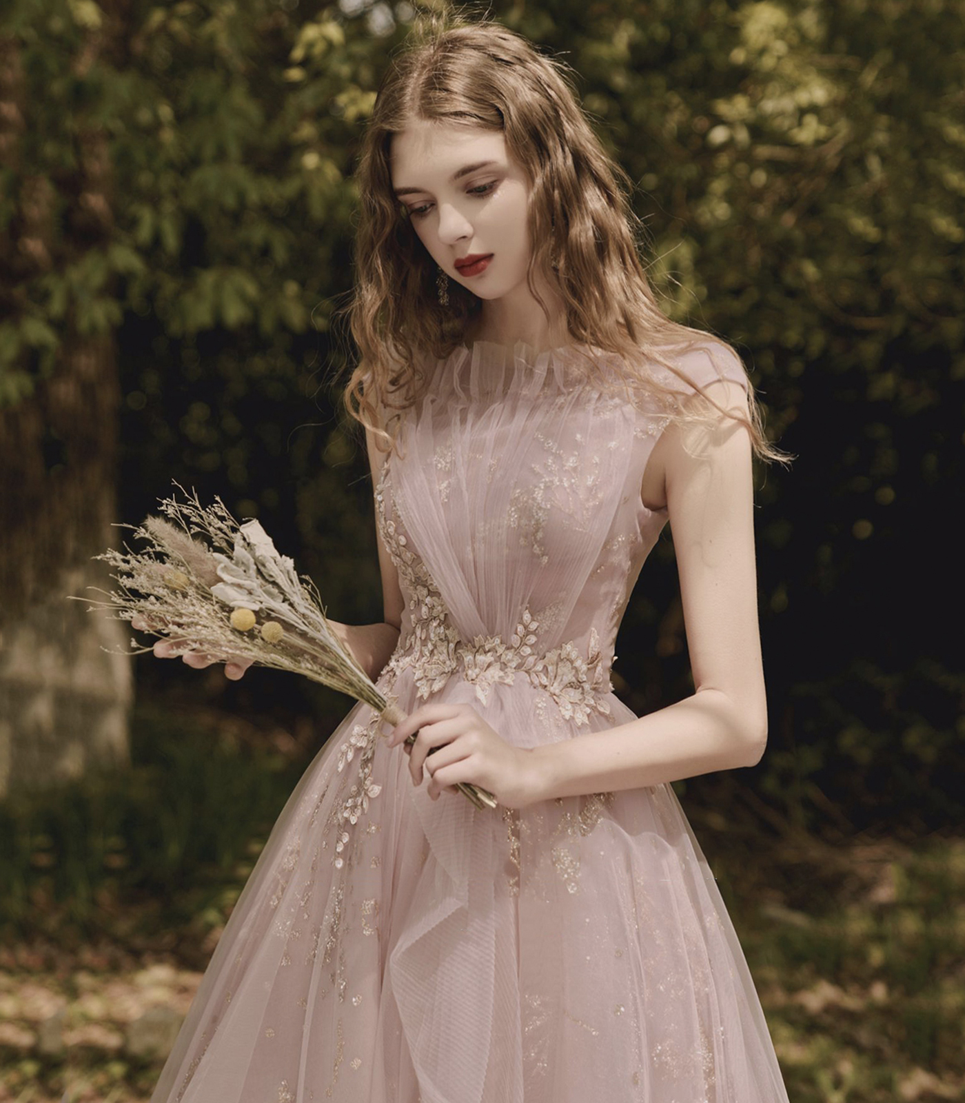 - Pink Tulle Lace Long Prom Dress, Beautiful A-Line Evening Party Dress -