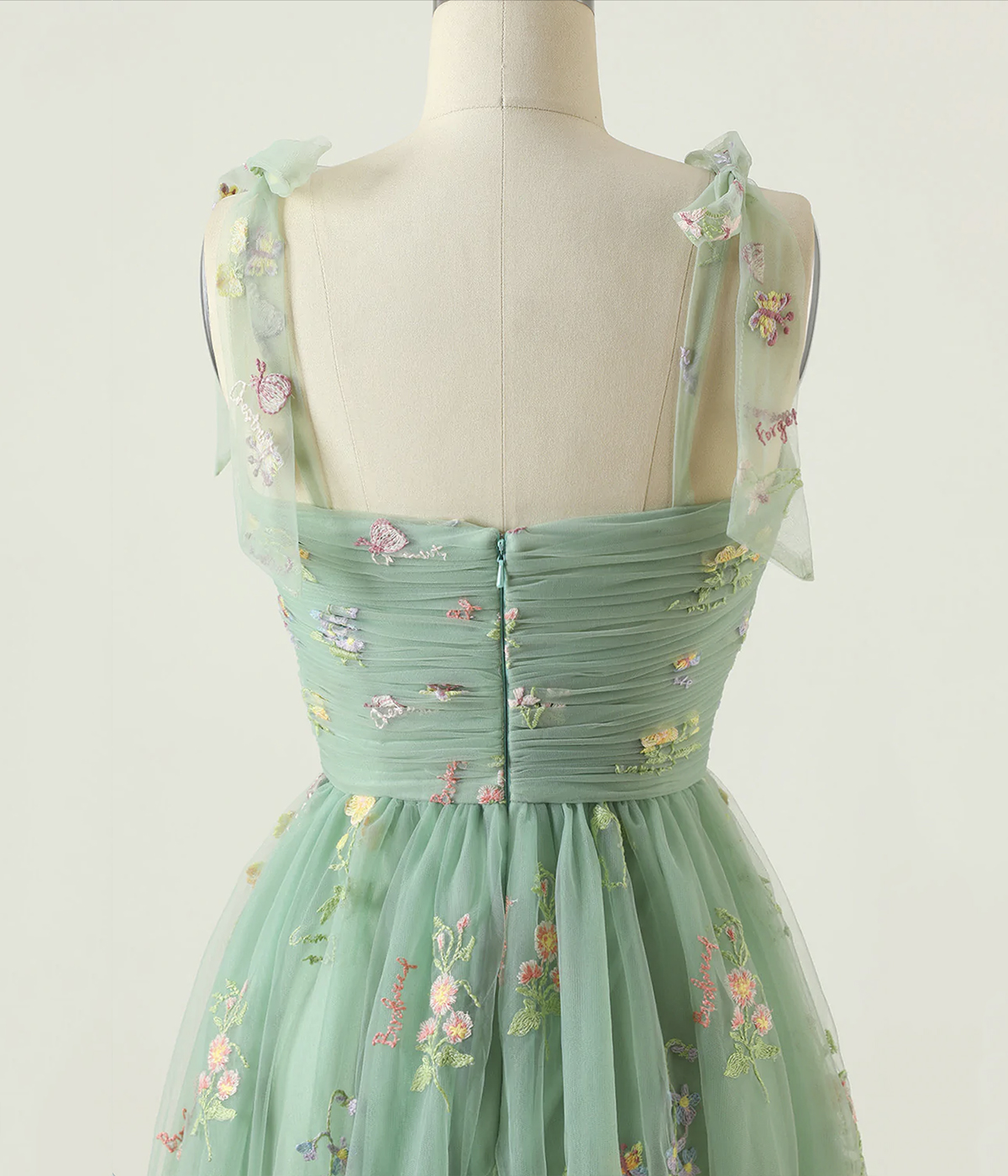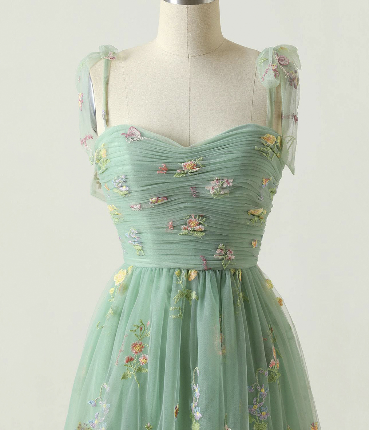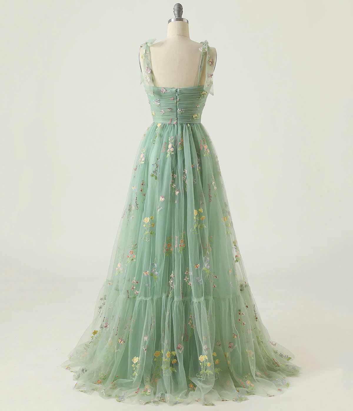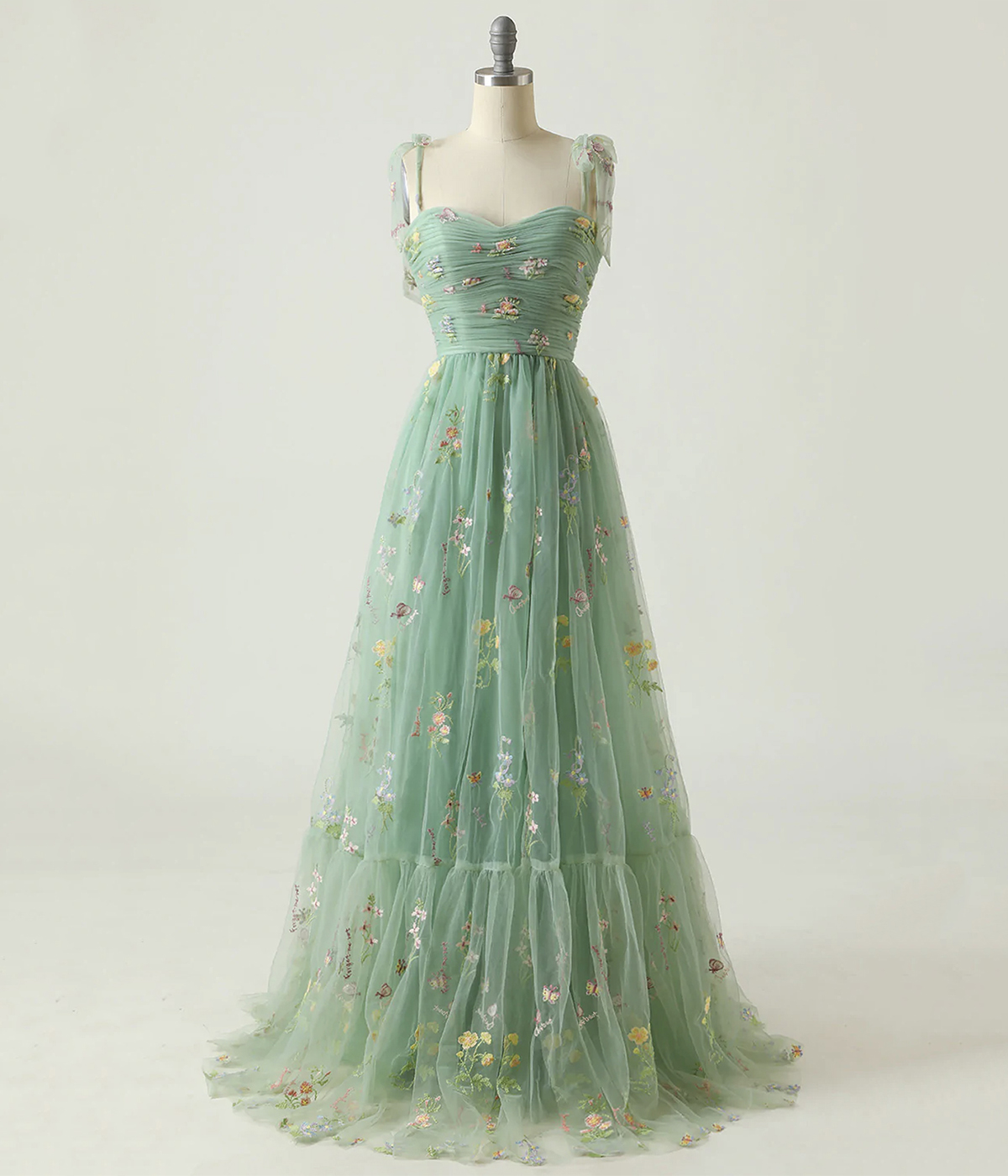 - Green Floral Tulle Long Prom Dress, Cute A-Line Evening Party Dress -