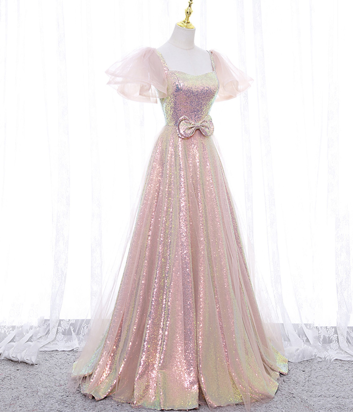 - Cute Tulle Sequins Long Prom Dress, Beautiful A-Line Formal Dress -