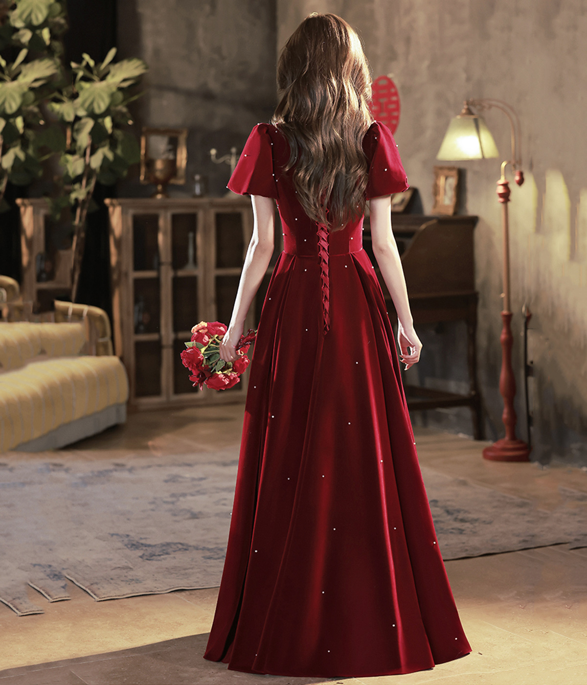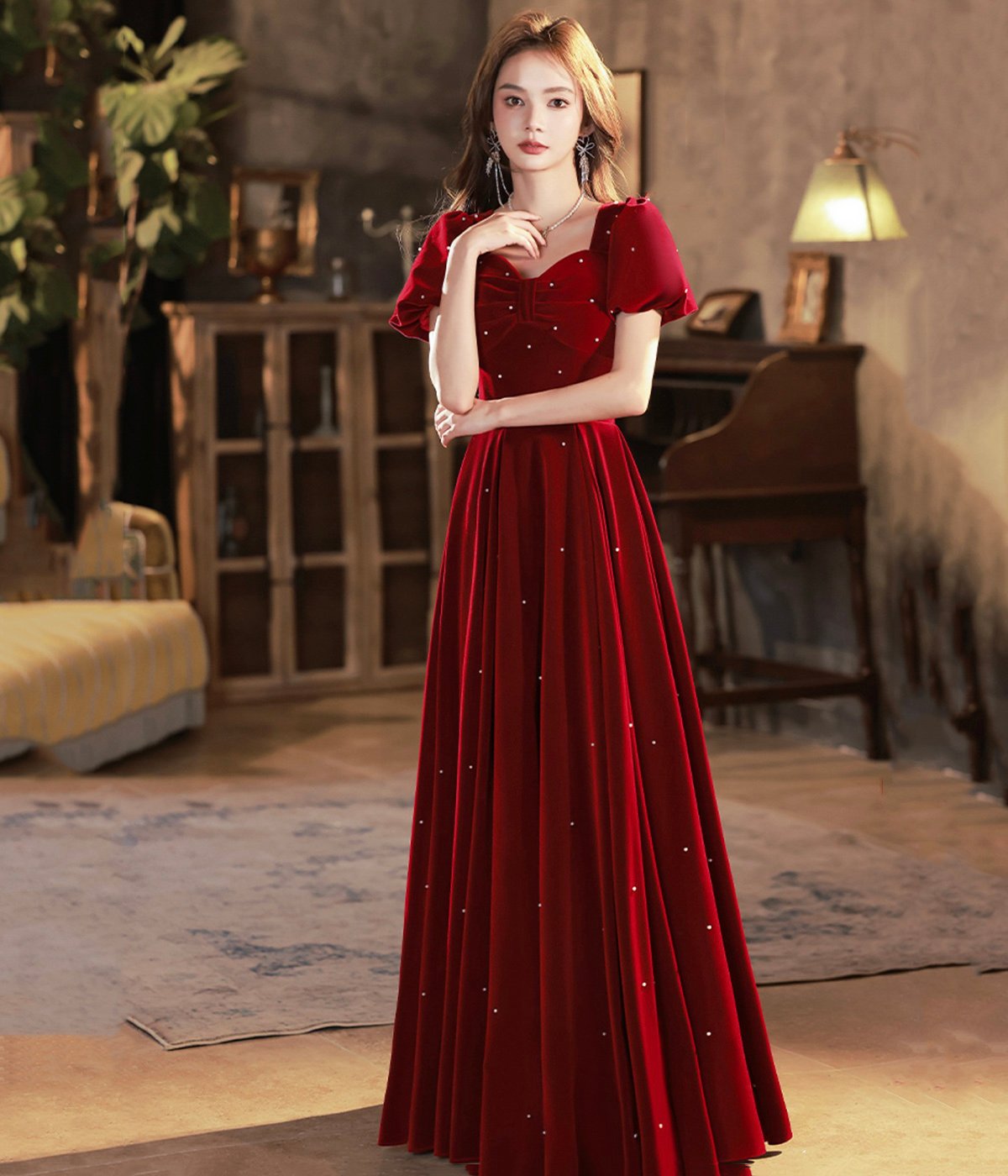 - Burgundy Velvet Long Prom Dress, Cute A-Line Evening Dress Party Dress -