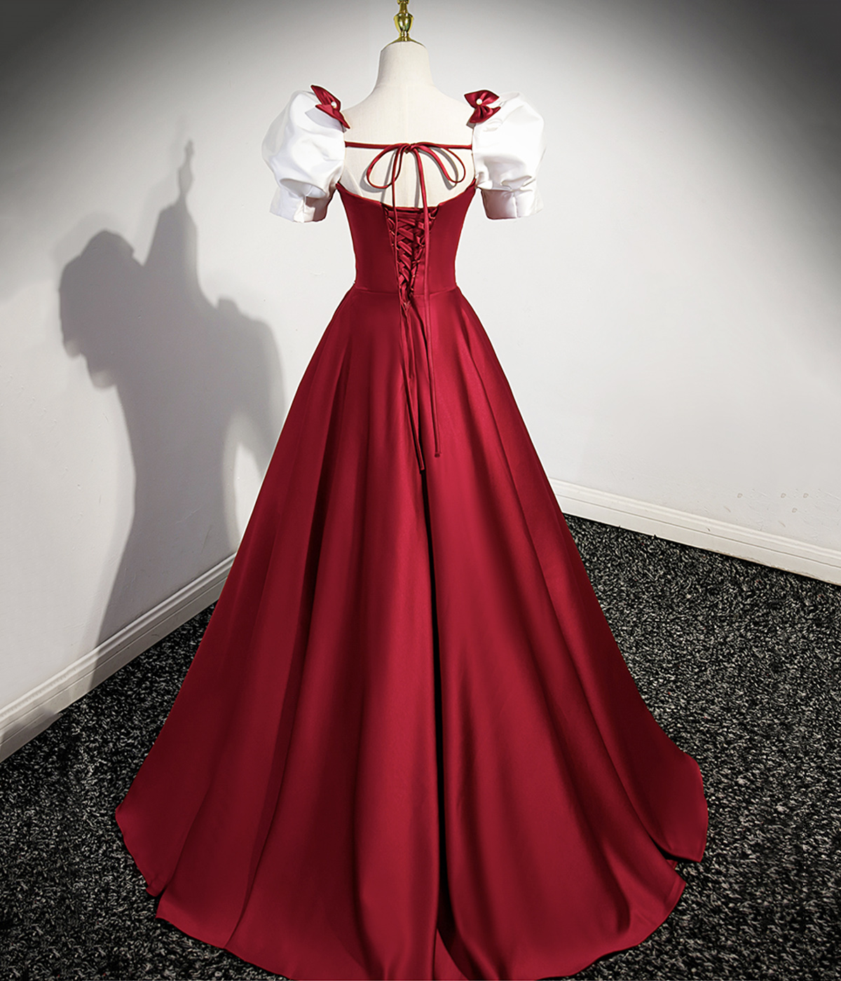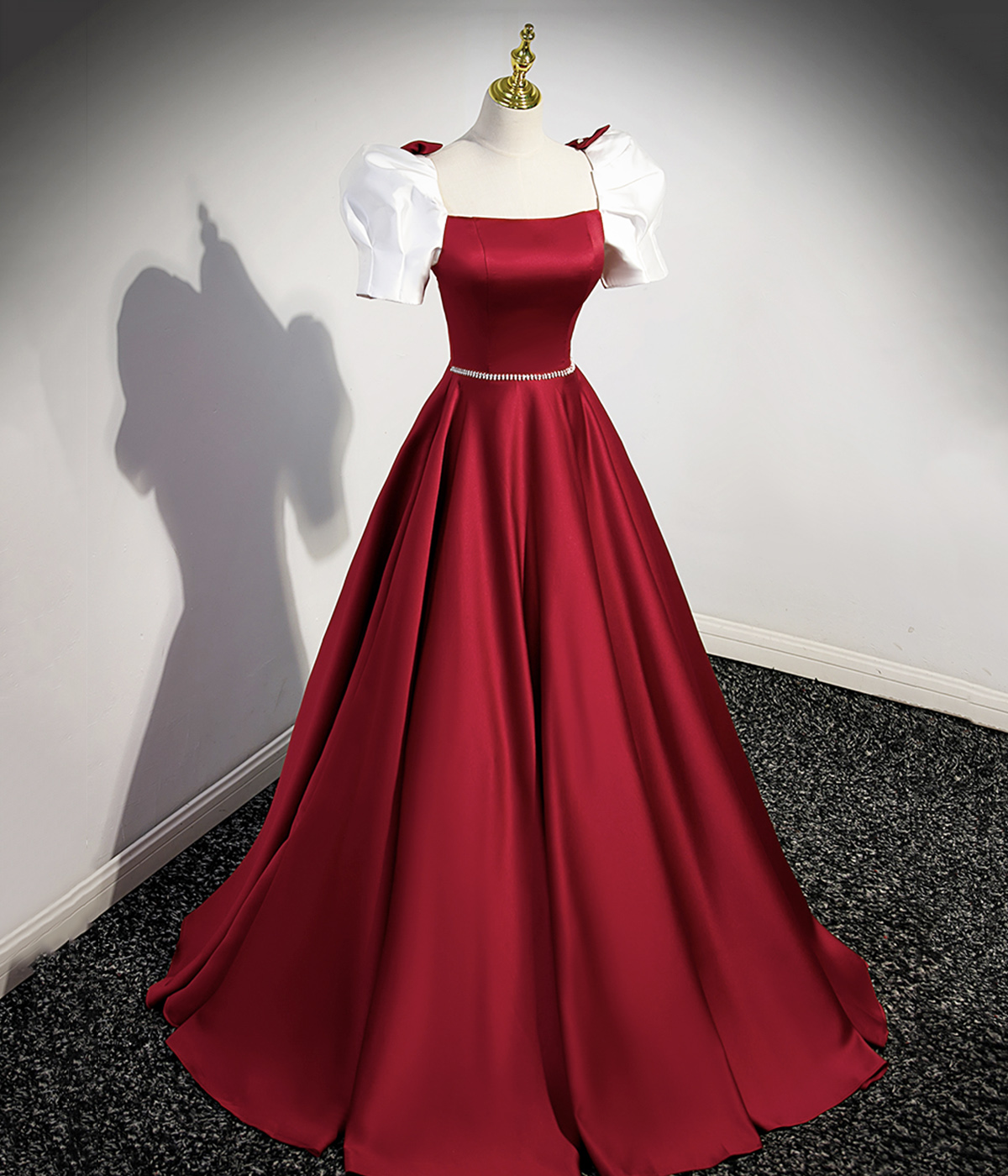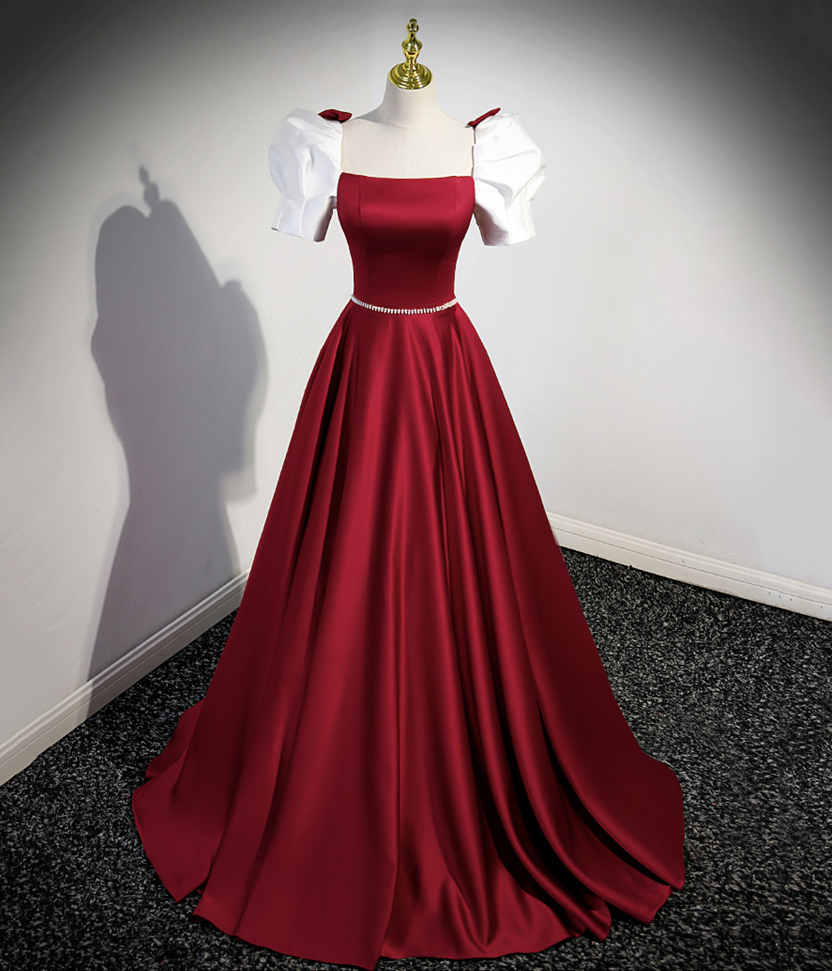 - Cute Satin Long Prom Dress, A-Line Short Sleeve Evening Dress -