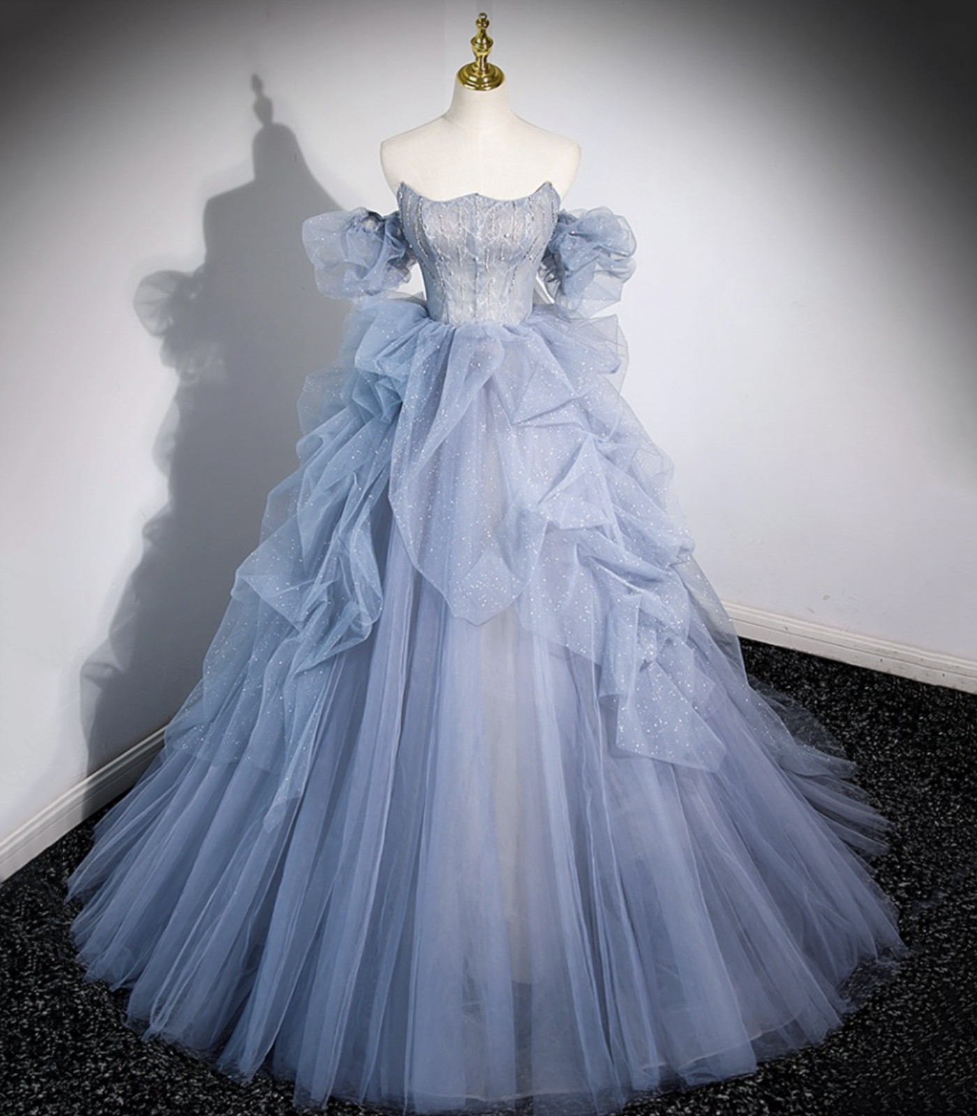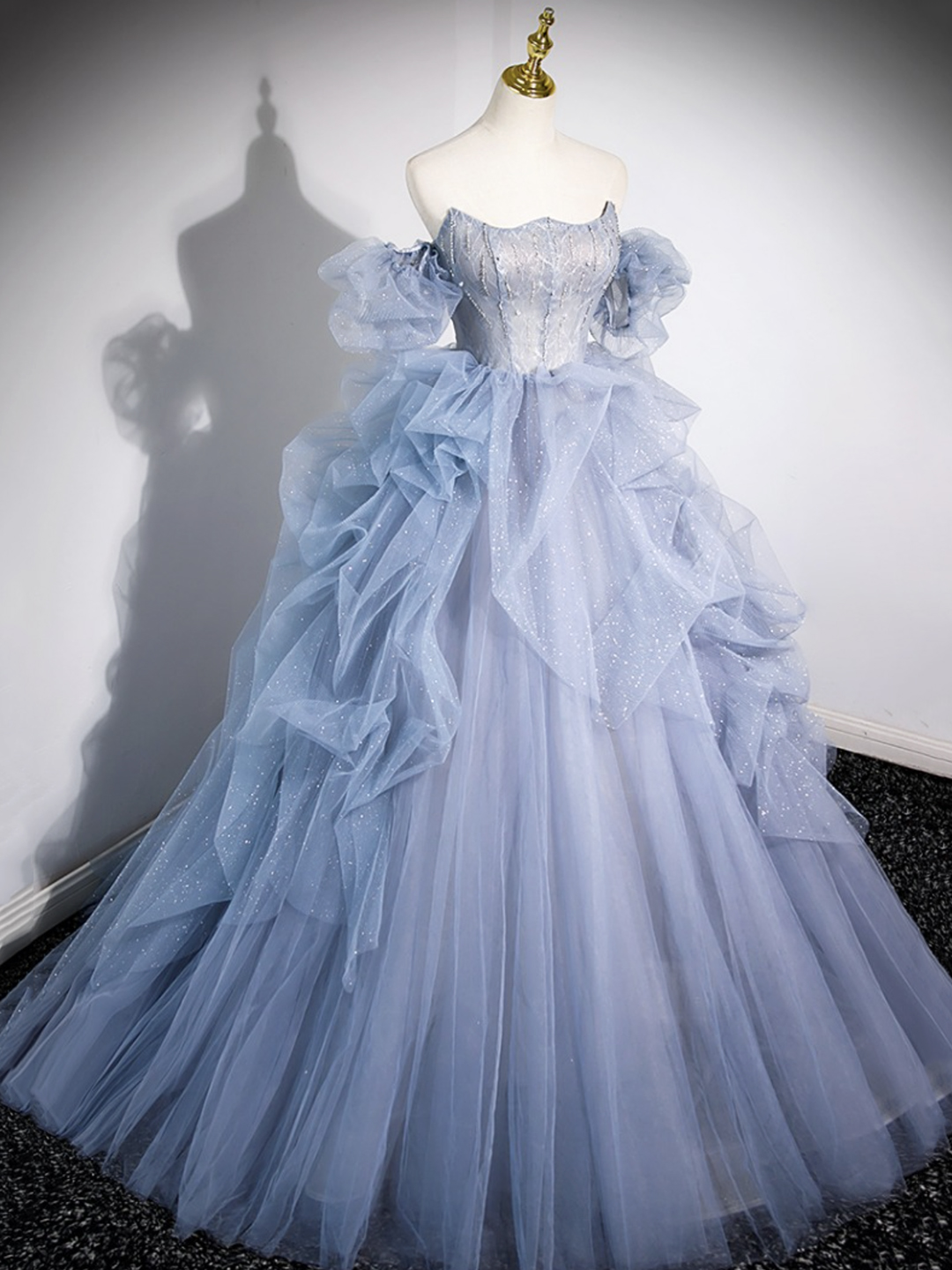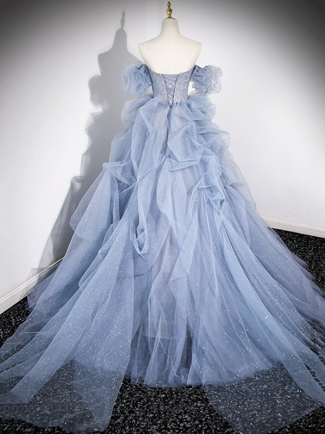 - Blue Tulle Long Prom Dress, Off Shoulder Evening Dress, Blue Party Dress -