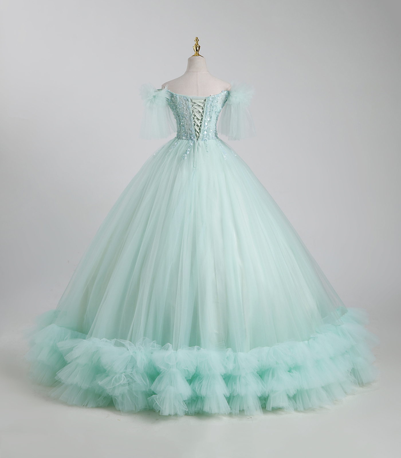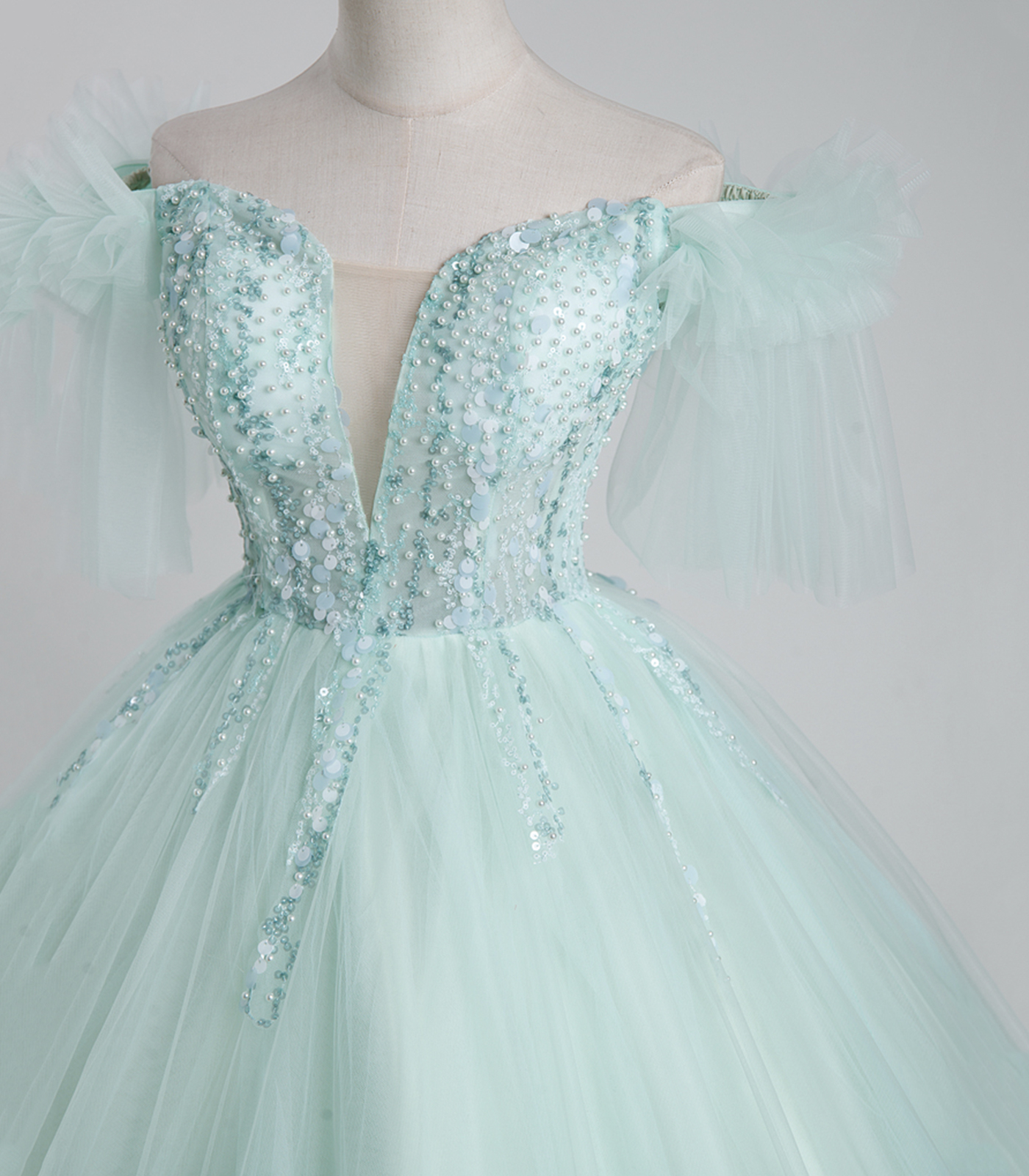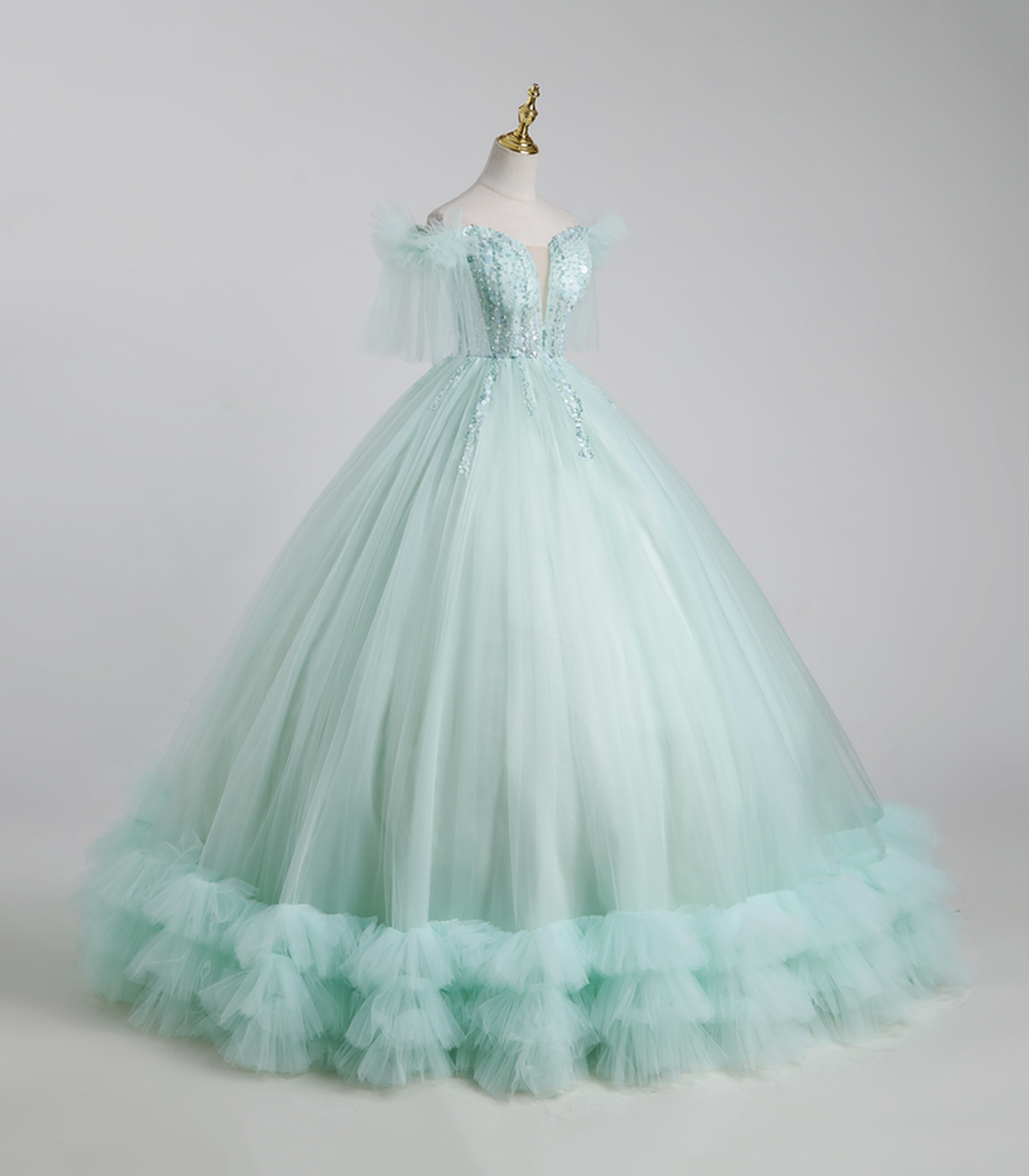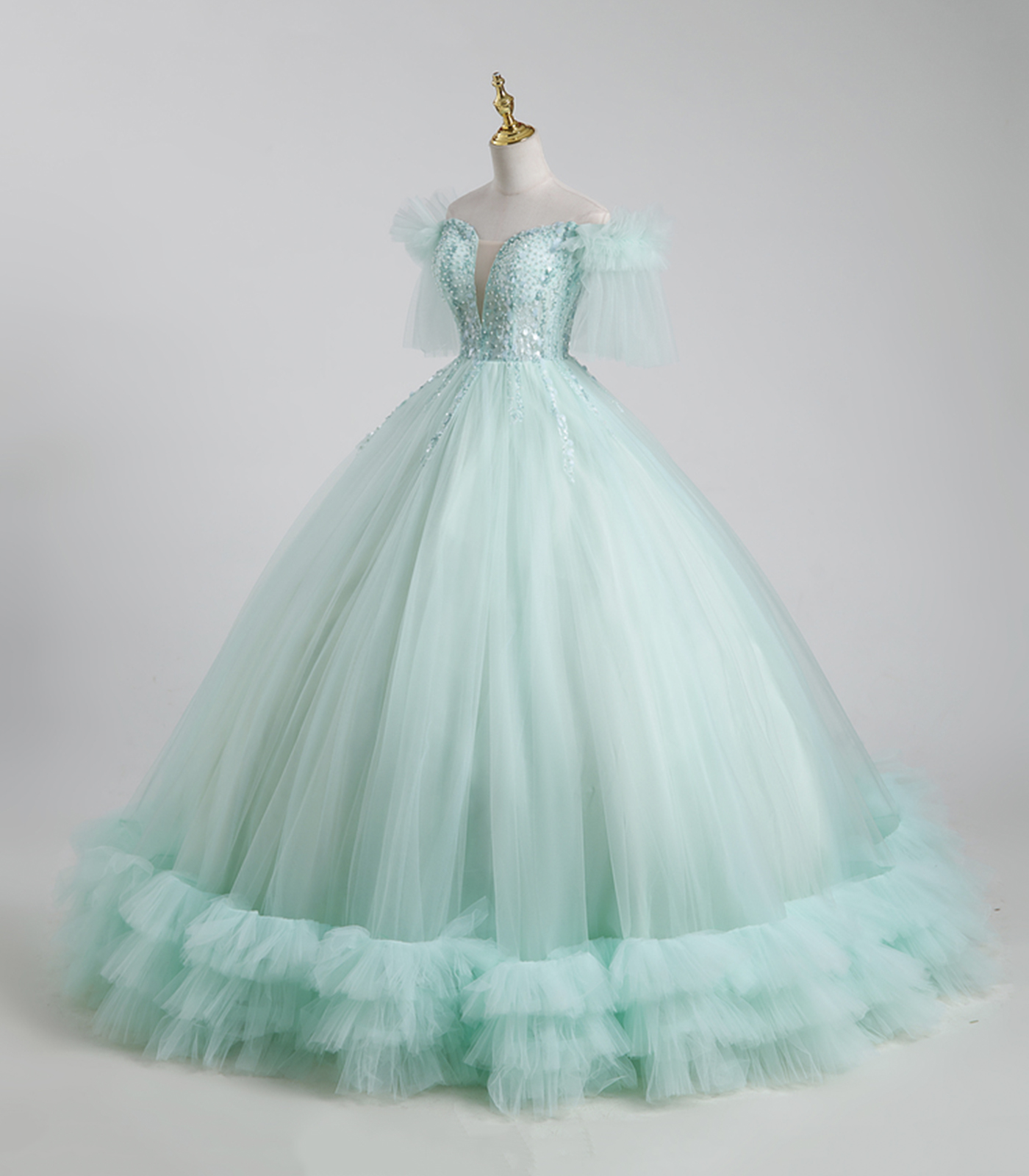 - Cute Tulle Sequins Long Ball Gown, A-Line Tulle Sweet 16 Dress -