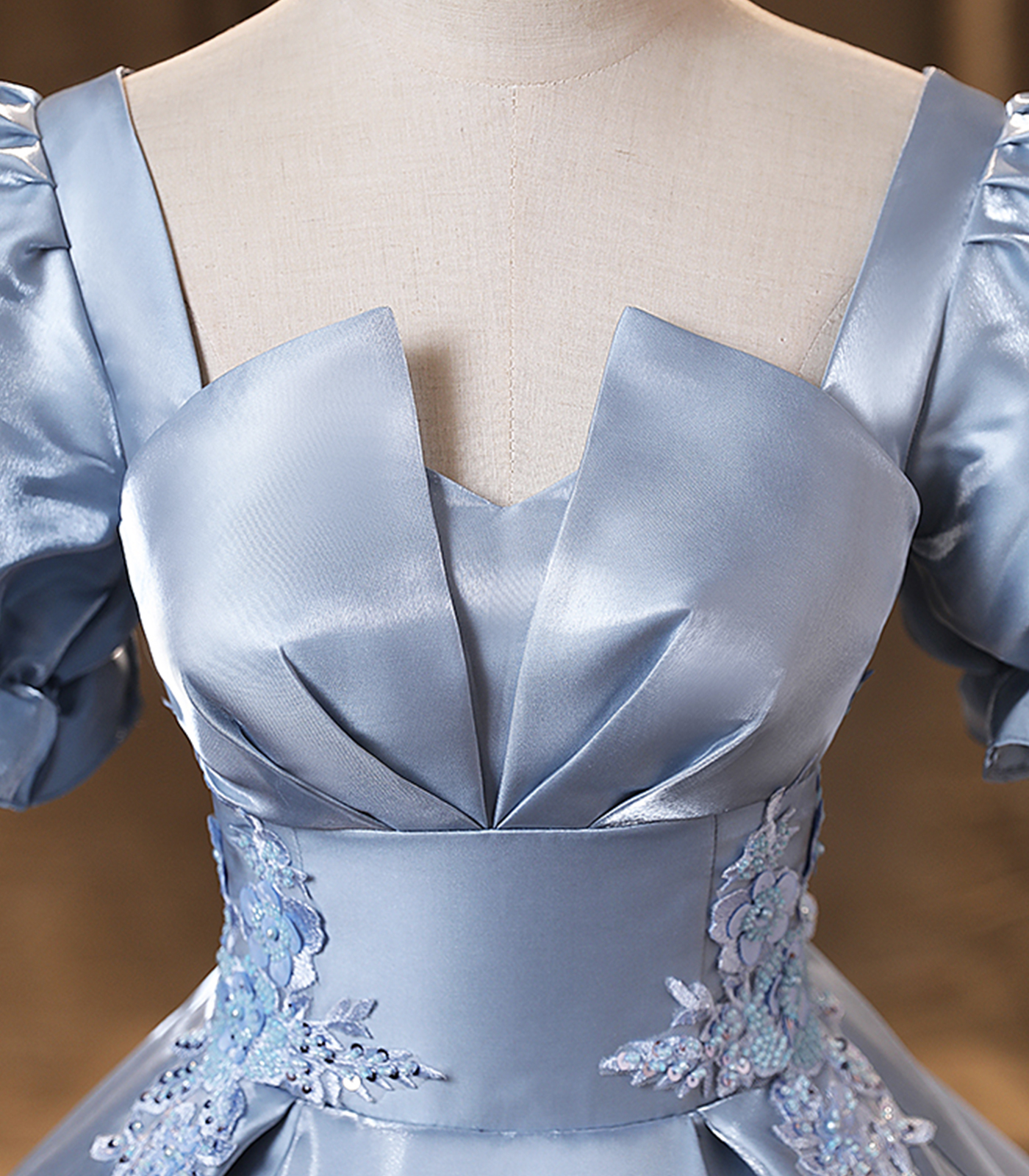 - Blue Saitn Lace Long Prom Dress, Blue Evening Dress -