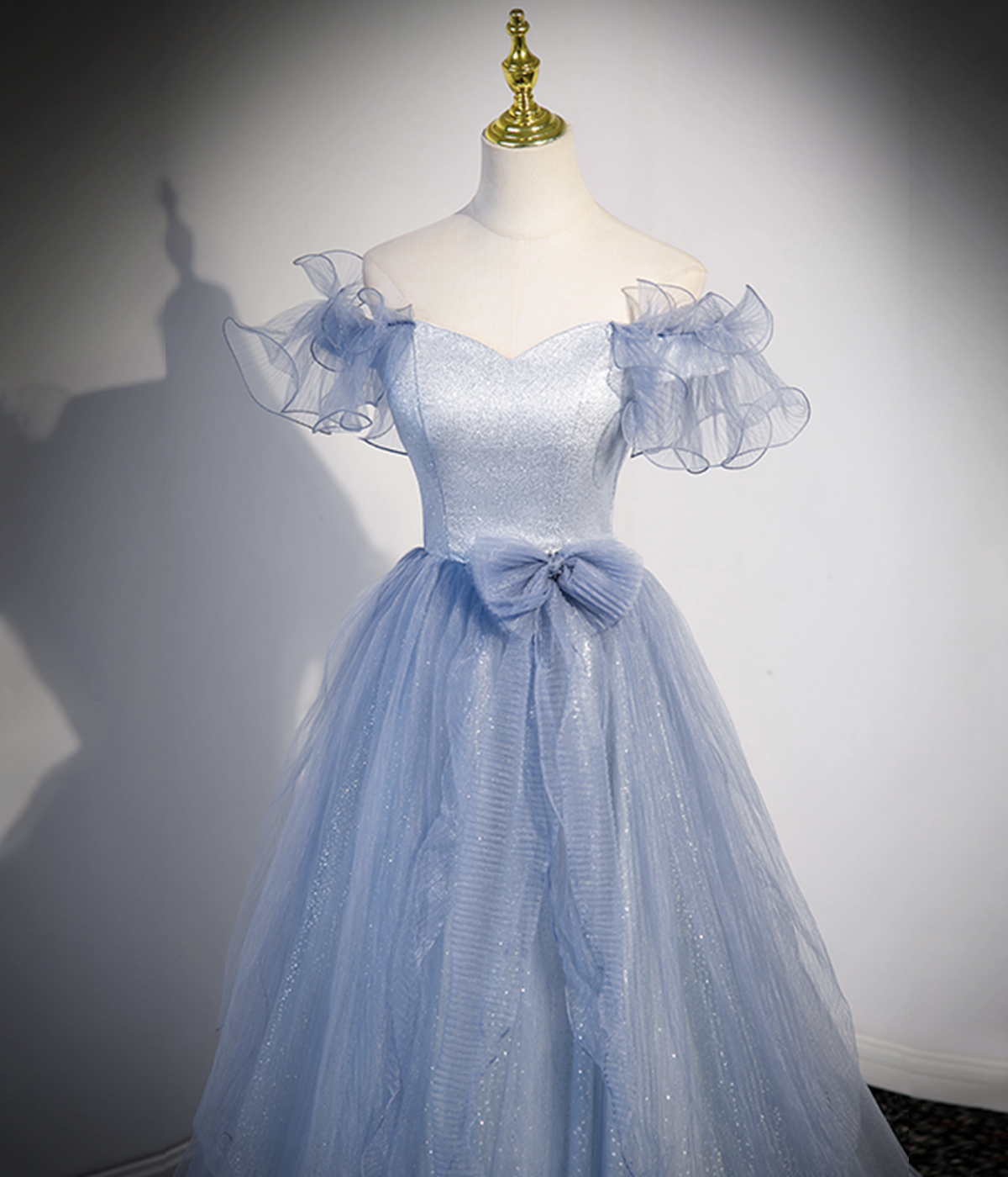 - Blue Tulle Long Prom Dresses, Cute A-Line Blue Evening Dresses -
